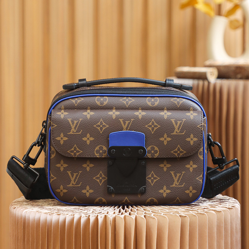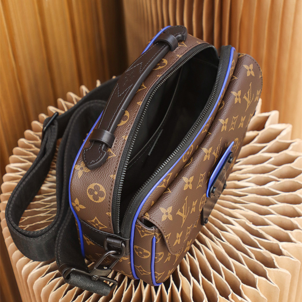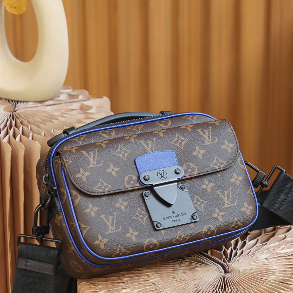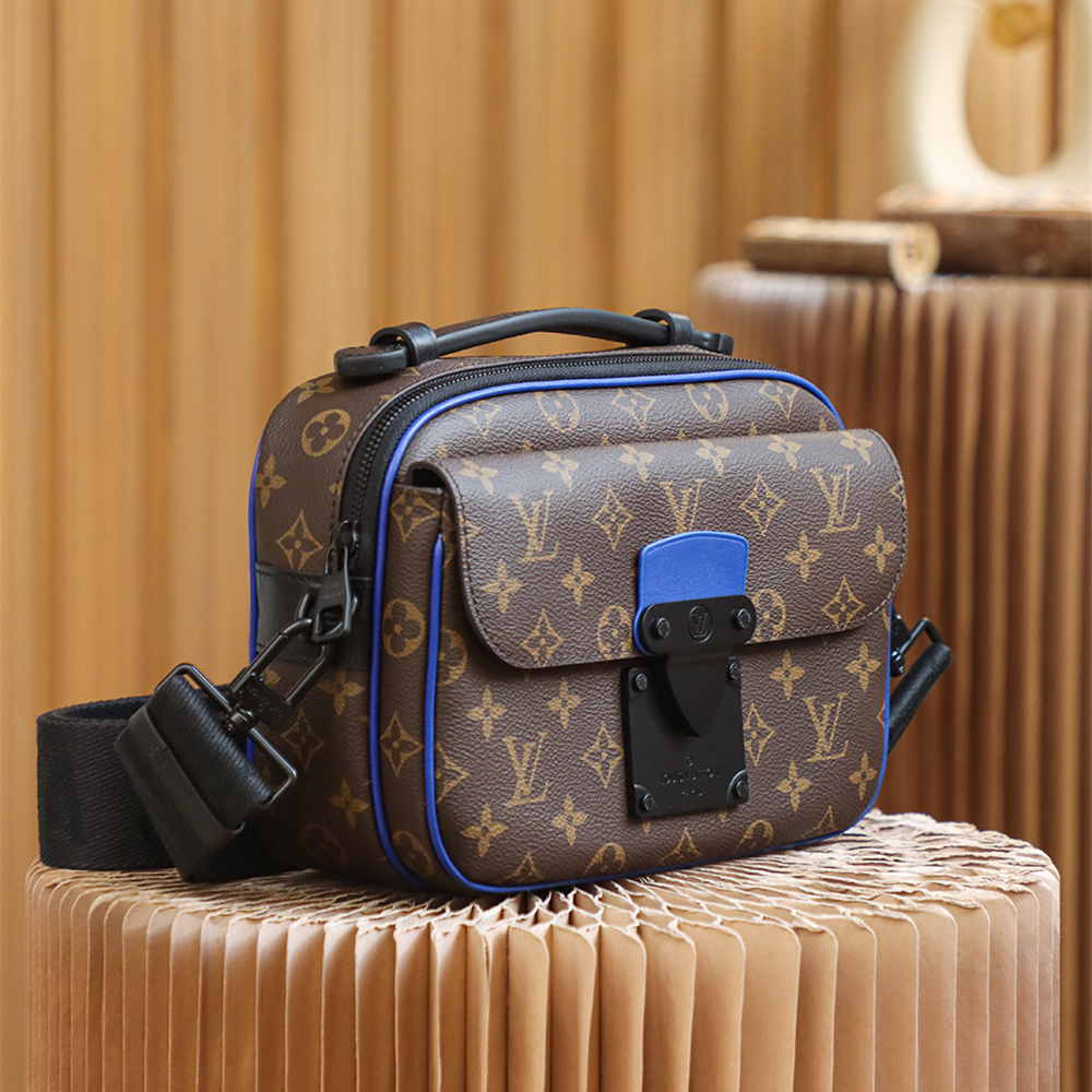 一款以經典Lock系列的郵差包通過增加了藍色皮革成為新穎的包款,改變了傳統經典老花郵差包的慣例.更加體現男士佩戴過程中能夠輕鬆駕馭.作為高仿A貨的代表之一,購入原版1:1開模復刻,高仿LV郵差包針對大小細節處理精準復刻,做到百分之99無限接近.