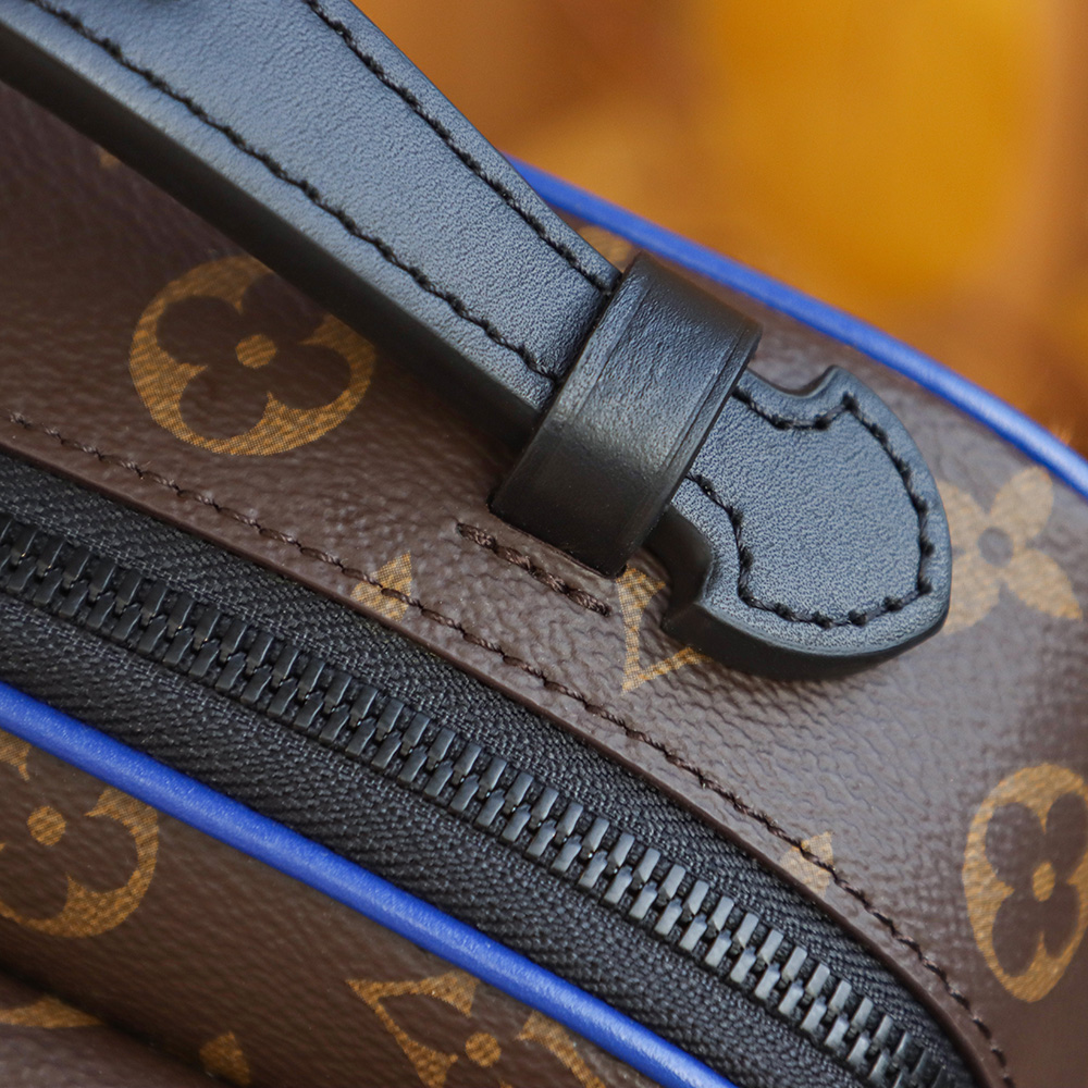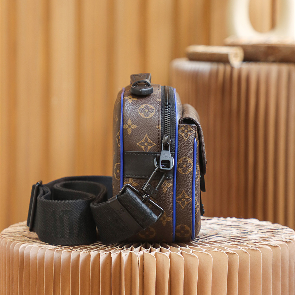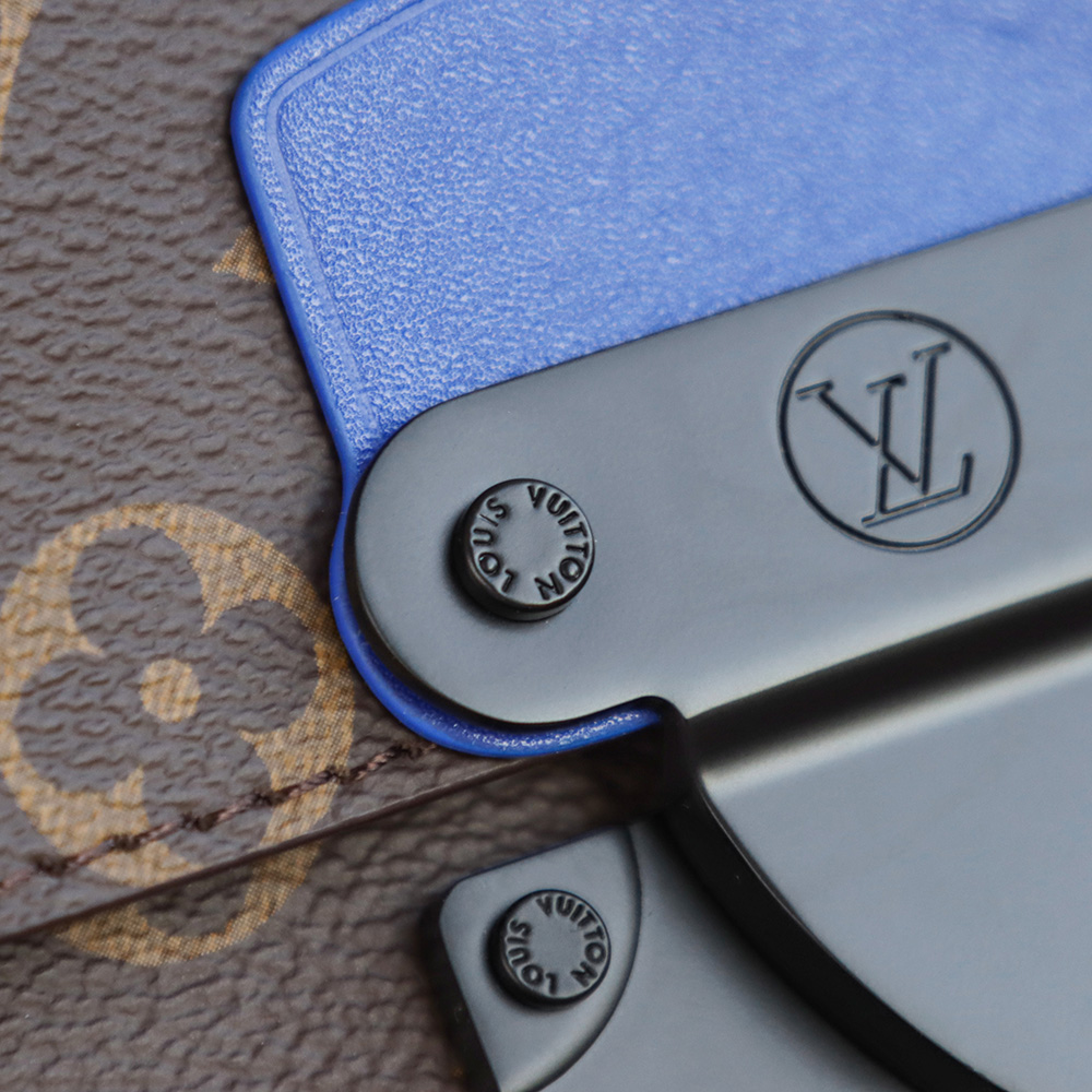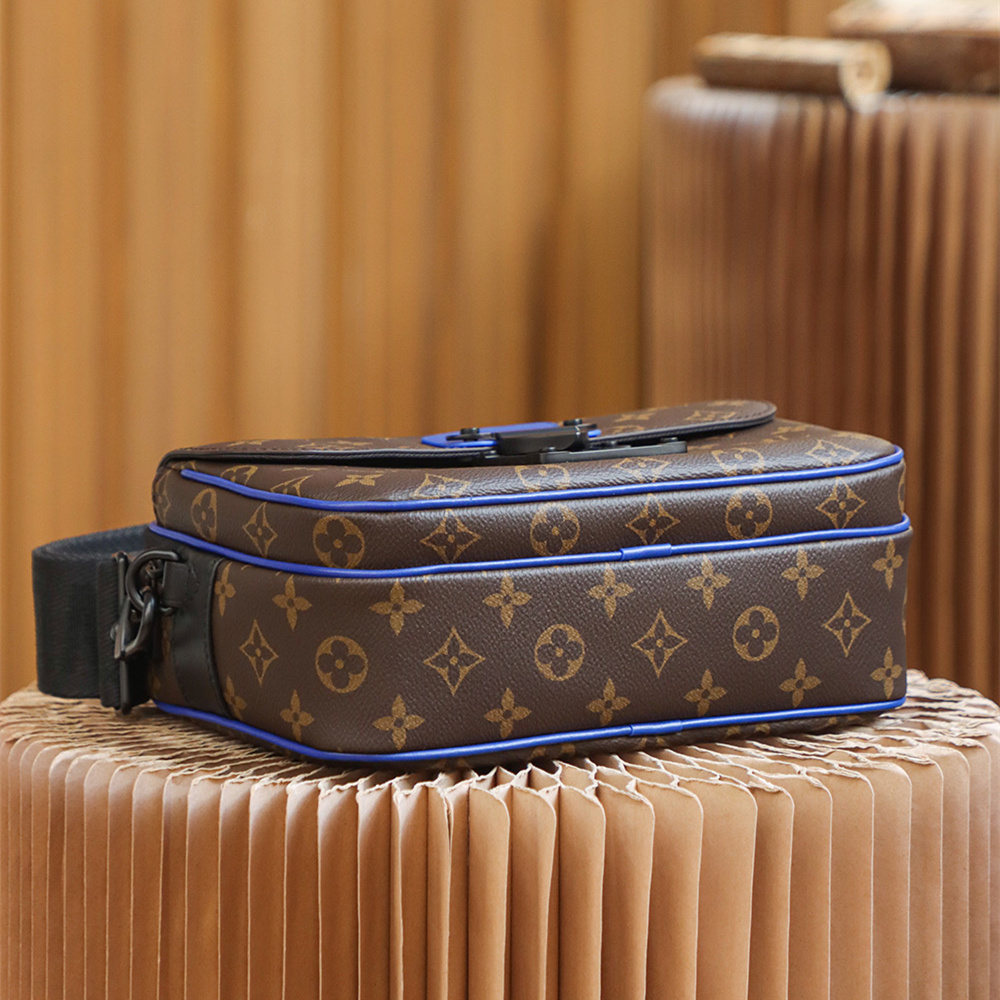 厚實的包體,分為夾層放置空間,從裁剪布料相對應的還原LOGO設計,皮料的頂部與底部半邊印花都是經過比對原版,無誤差後續通過純手法縫製而成.原單LV郵差包詮釋了精細修正後的效果.而藍色的皮革精選進口同廠源料,無色差手感與專櫃一致.
