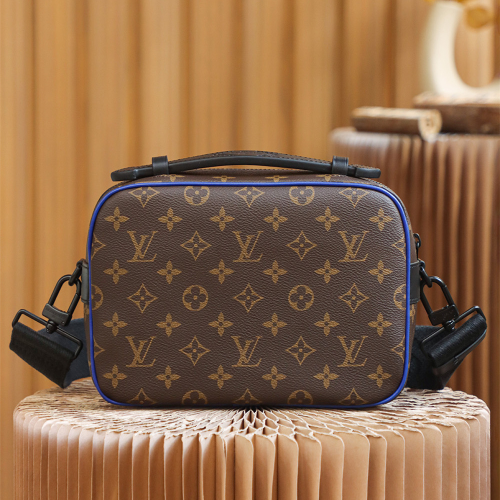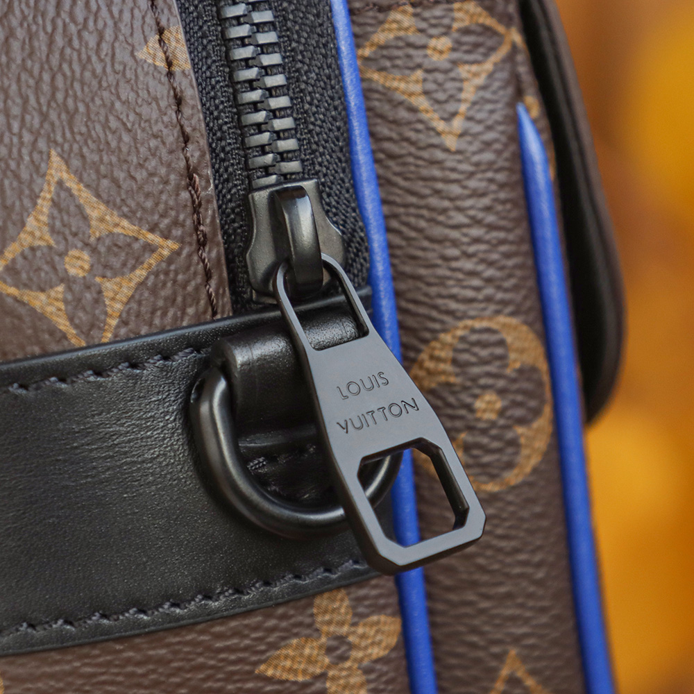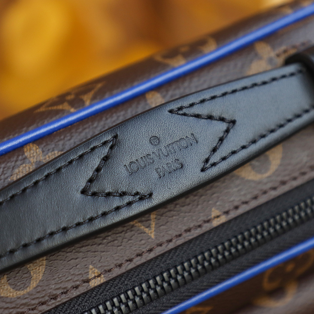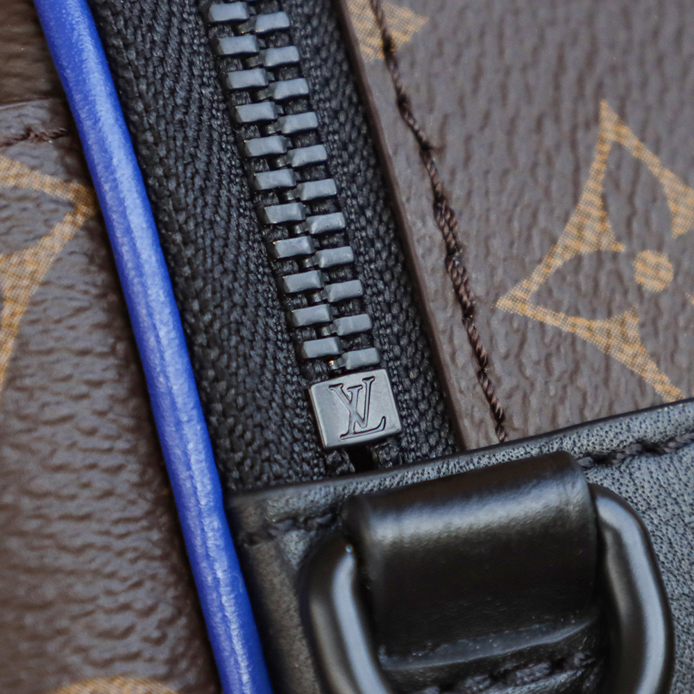 厚實的包體,分為夾層放置空間,從裁剪布料相對應的還原LOGO設計,皮料的頂部與底部半邊印花都是經過比對原版,無誤差後續通過純手法縫製而成.原單LV郵差包詮釋了精細修正後的效果.而藍色的皮革精選進口同廠源料,無色差手感與專櫃一致.