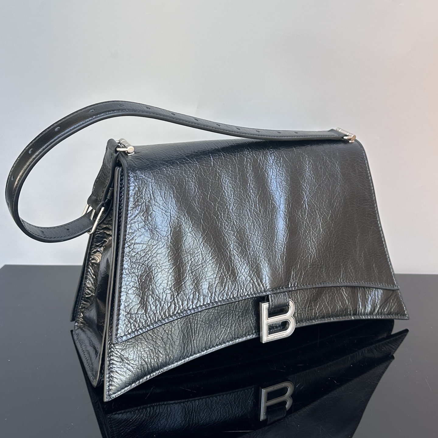 高仿Balenciaga冬季23系列秀場發佈的Crush皮肩帶款單肩腋下包,新作延續標誌性沙漏廓形和巴黎世家B字母徽飾元素,選用紙感小牛皮塑造柔軟包身,造型易於摺疊和展開,拱形包底與尖角邊緣設計,包型搭配層次分明的內部空間.