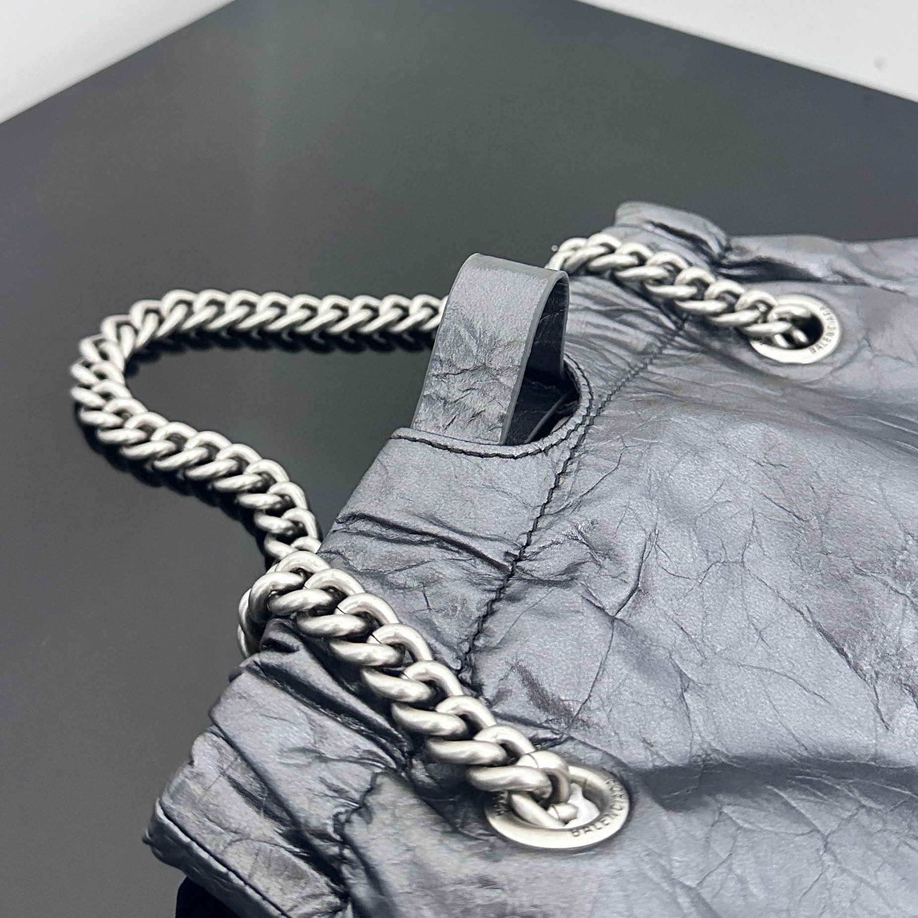 而亮面的帶有紋理紋路的小牛皮經過特殊處理後,一種塑料視覺感完全展開,同時也是作為Balenciaga最基礎的設計風格,表達了辣妹氛圍感.不僅具有購物袋統稱,部分女性也會調侃到垃圾袋,偏向個性化標準打造.配備原廠五金鏈條扣具,長久使用不掉色杜絕氧化.