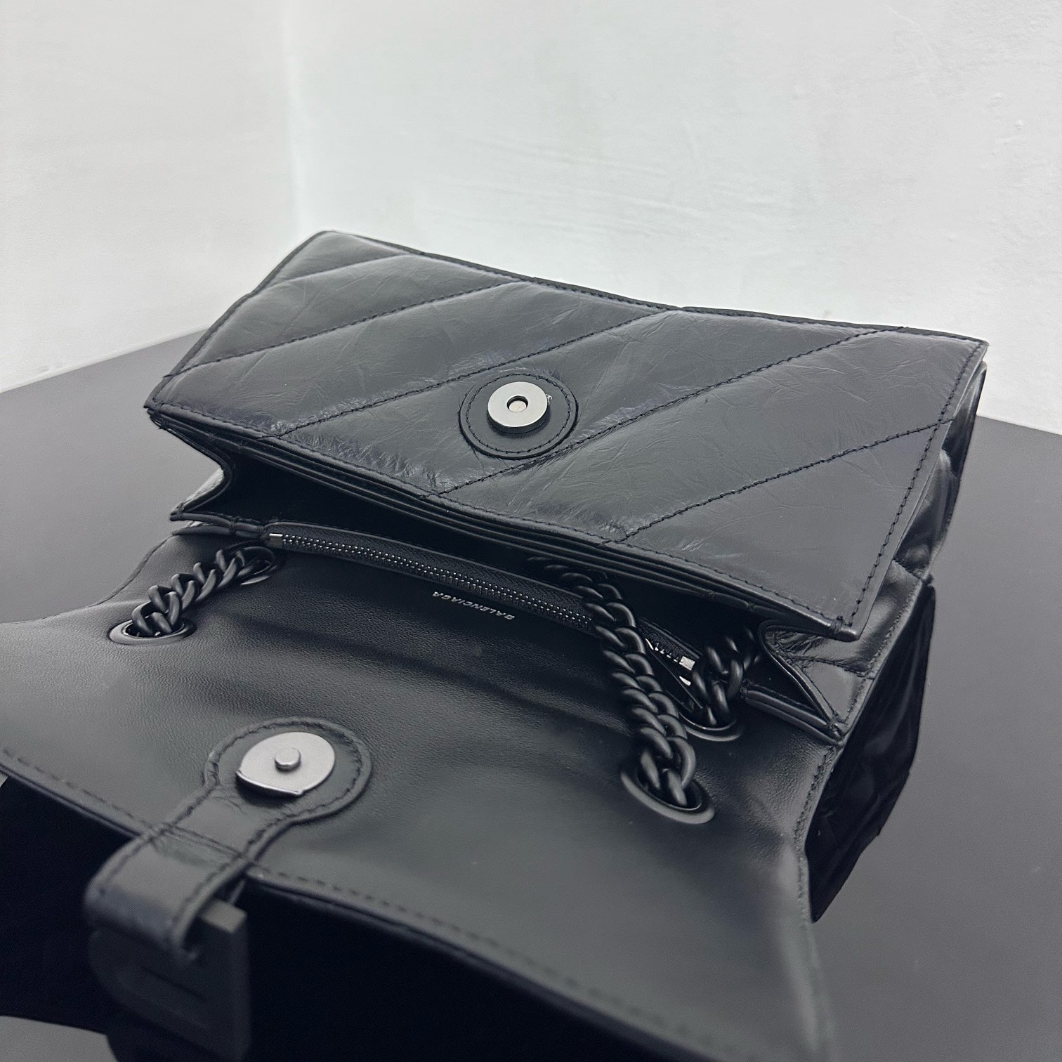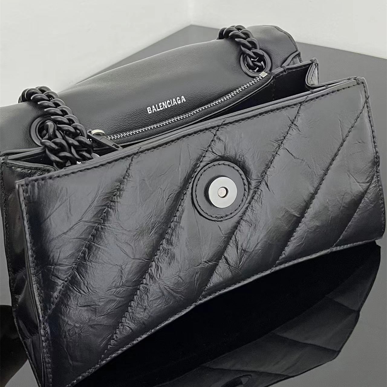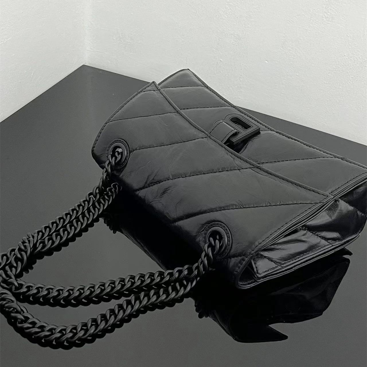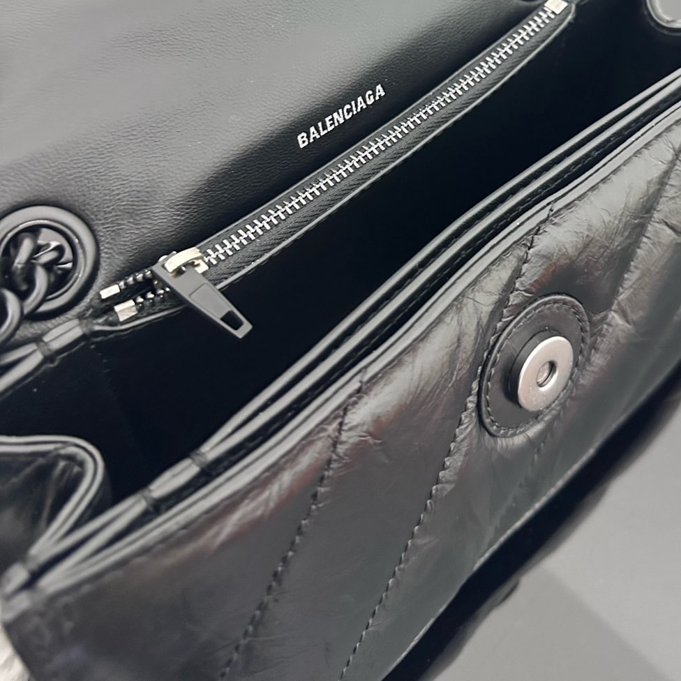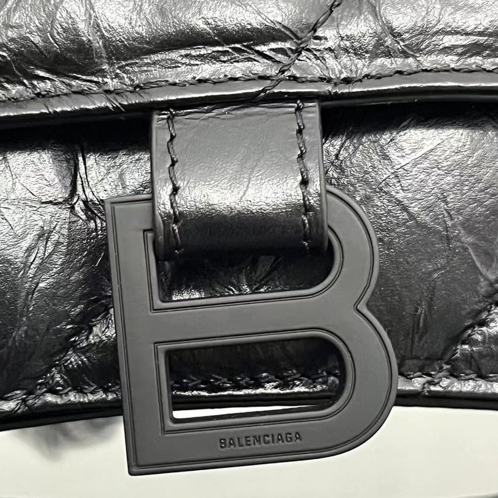 高仿Balenciaga迷你沙漏包全新來襲,作為巴黎世家官方中最為亮眼的包款之一,Crush一直都是飽受眾多女性的青睞,小型的包款結構賦予了一種輕奢風格,而黑色扣具和黑色真皮革的材質映照出高級美感.