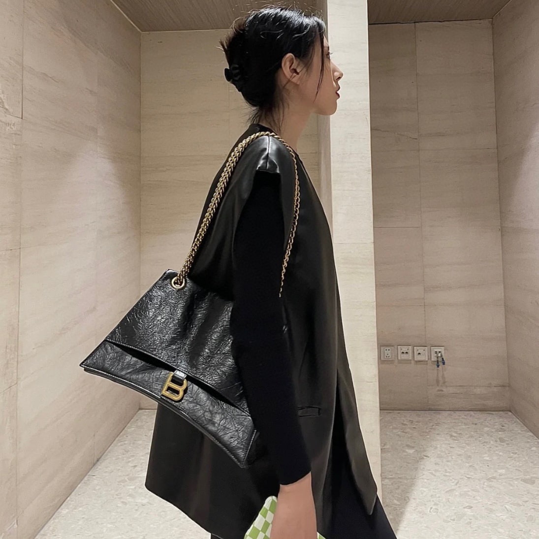 精仿Balenciaga全新推出Crush系列手袋款式,一款非常注重與女士性感路線的包款設計,配備的黑色皮革與金屬鏈條彰顯出一種高級美感,也突出了女性在最需要安全感時,巴黎世家能夠提供心理層面的舒適環境.