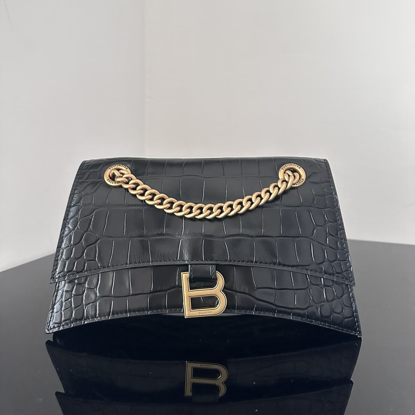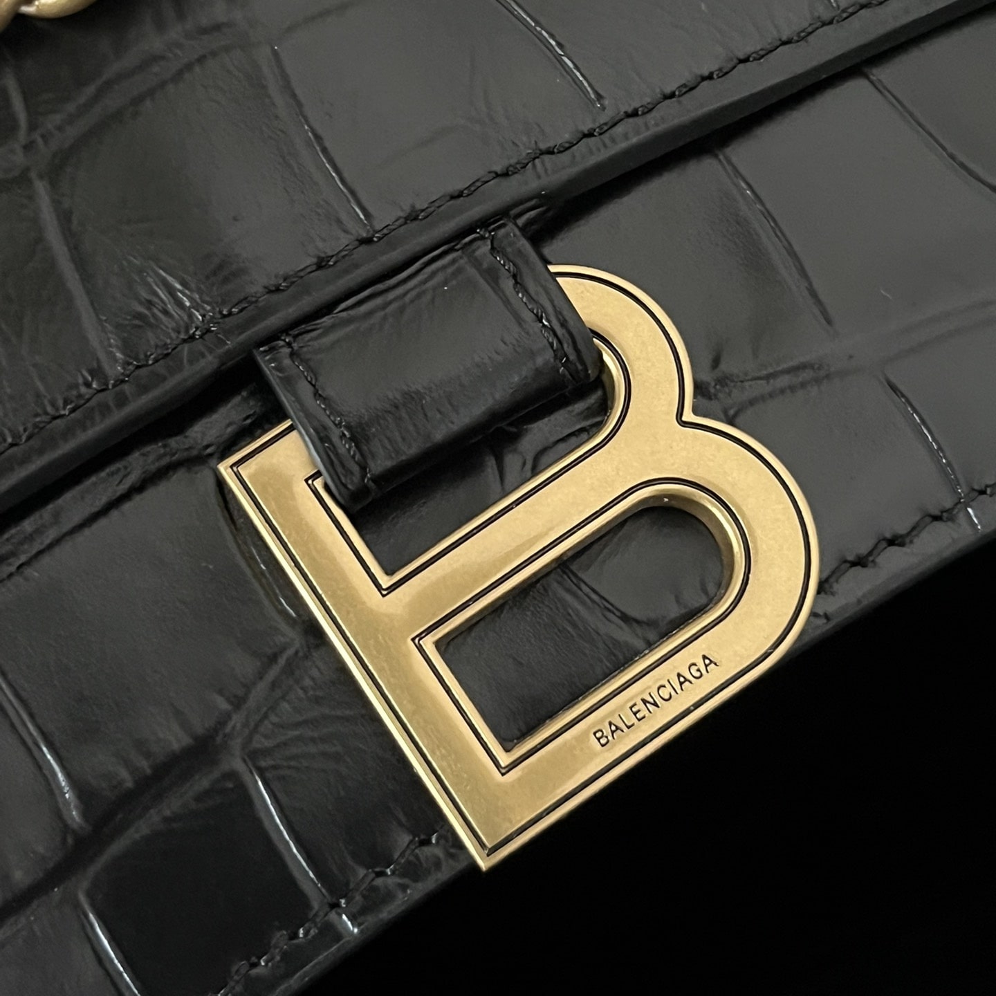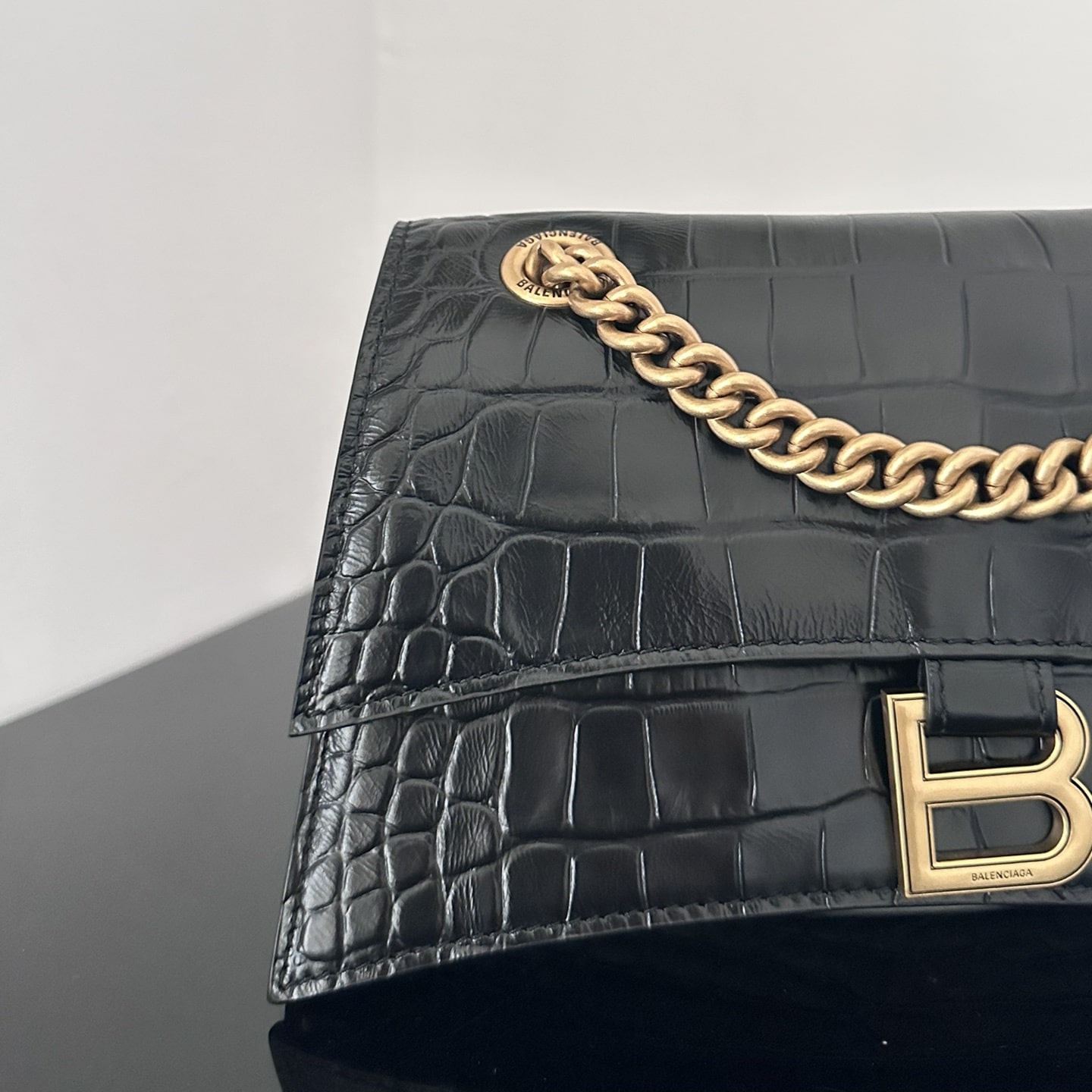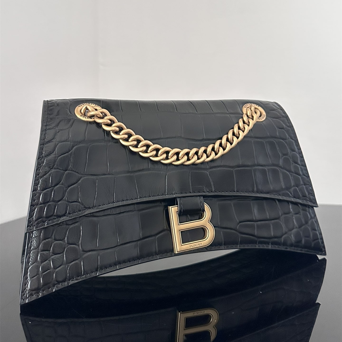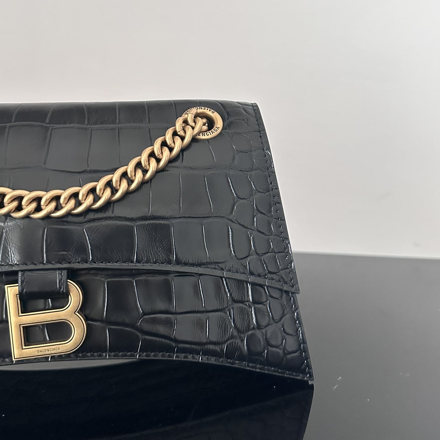 這一隻高仿Balenciaga手袋效仿了此前推出的沙漏包結構,作為Crush系列中最常見的包款,重新使用小牛壓印鱷魚皮紋路構造而成,無手柄的沙漏包依舊能夠保留經典的風格,非常適合性感女士既百搭又有高級感.