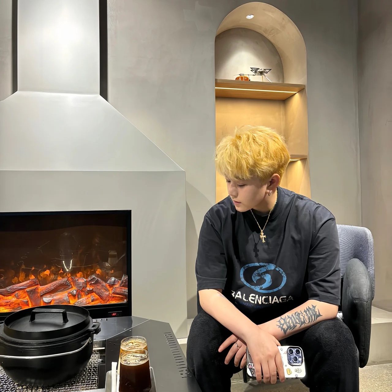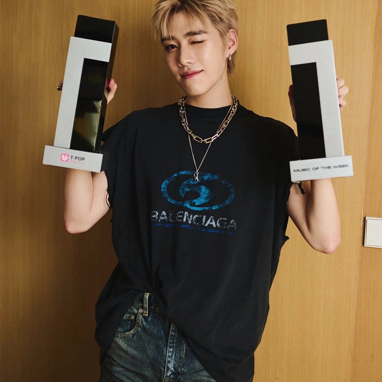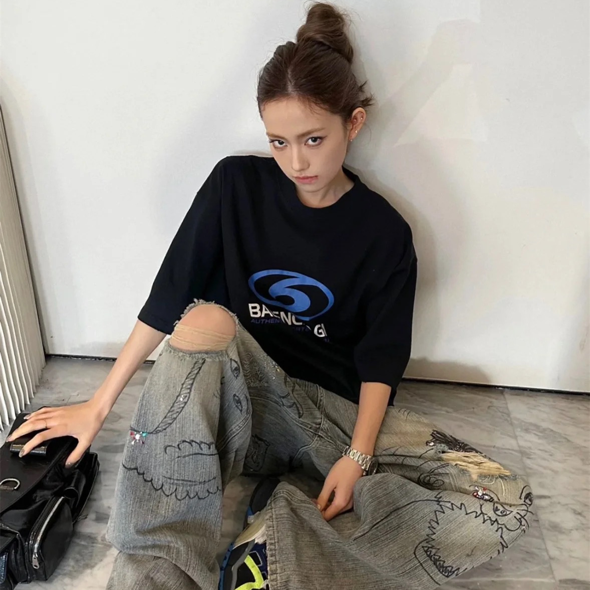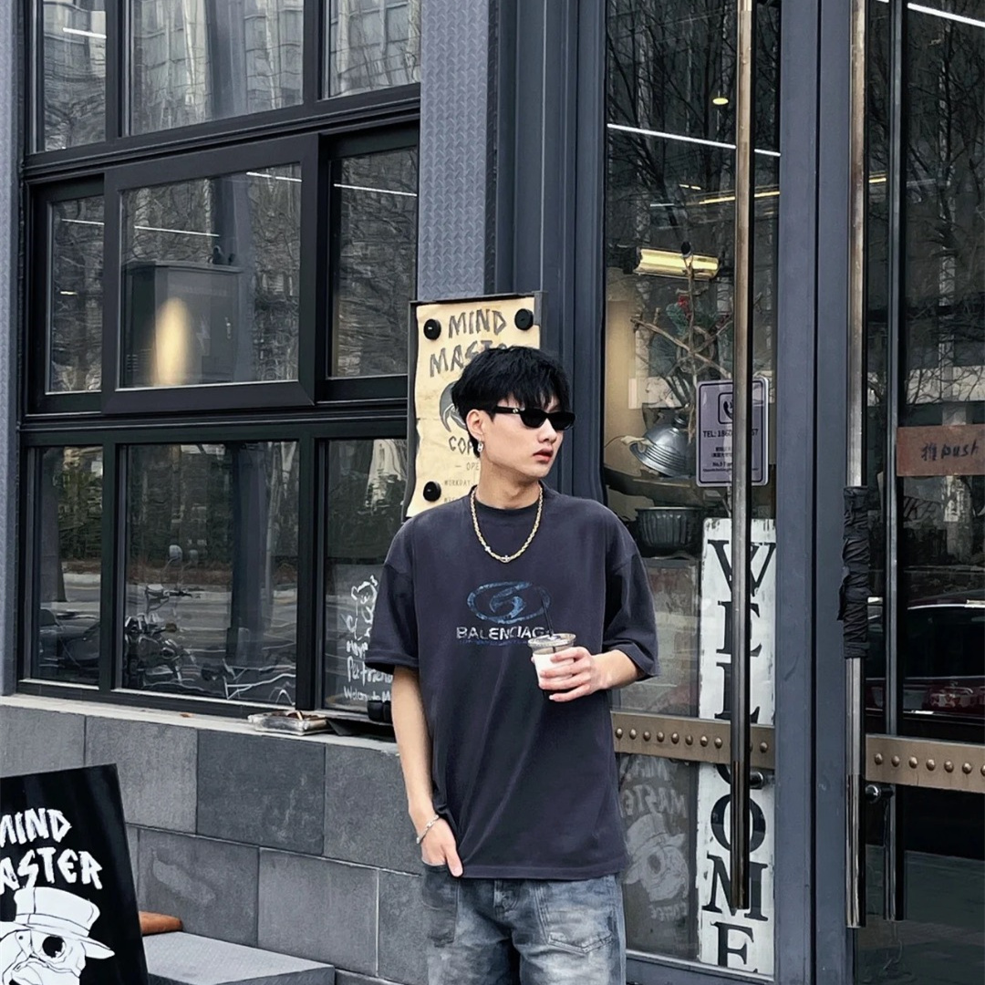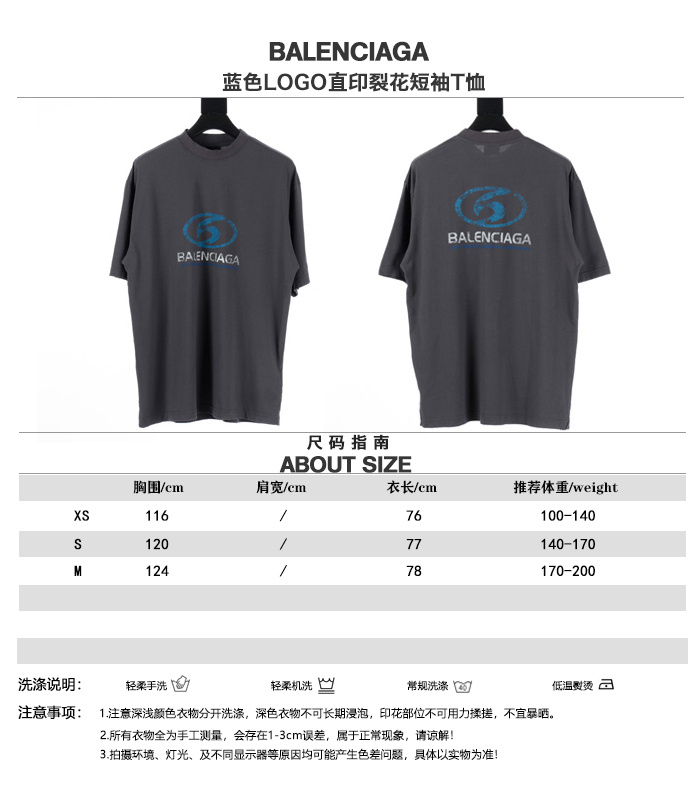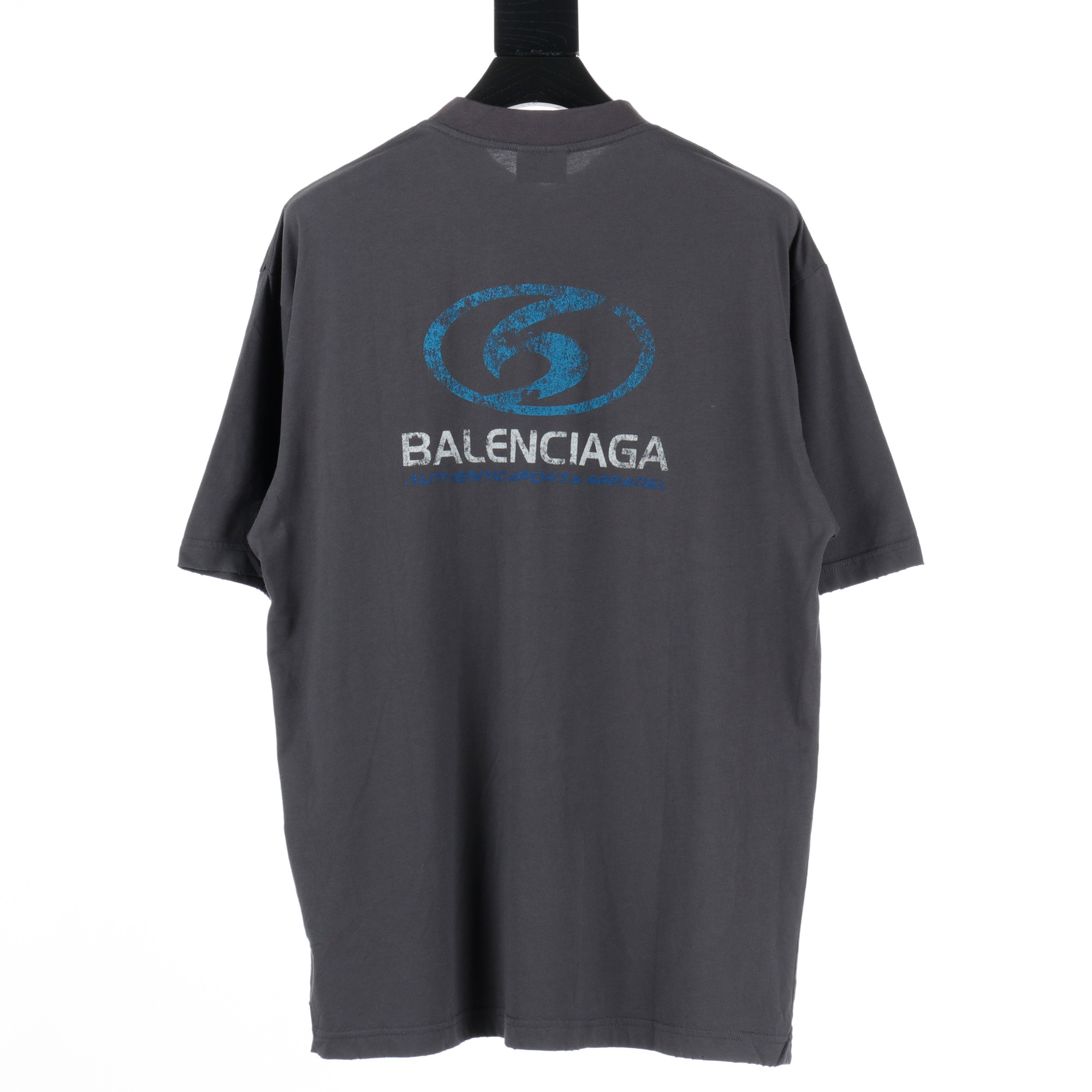 Balenciaga巴黎世家24新款藍色‬LOGO直印⁠裂‬花短袖T恤