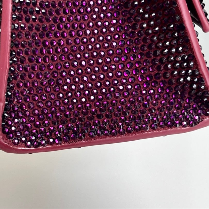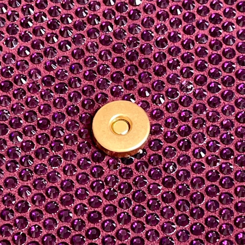 純手法貼鑽工藝展示出工匠的精益求精,硬朗的包身結構賦予了一種厚實不粗糙的手感.內置小羊皮全覆蓋細膩無瑕疵.紫色的鑽石材質非常妖艷,不過這款包袋比較適合高端場所和私人晚宴佩戴.非常頂級的佳作.
