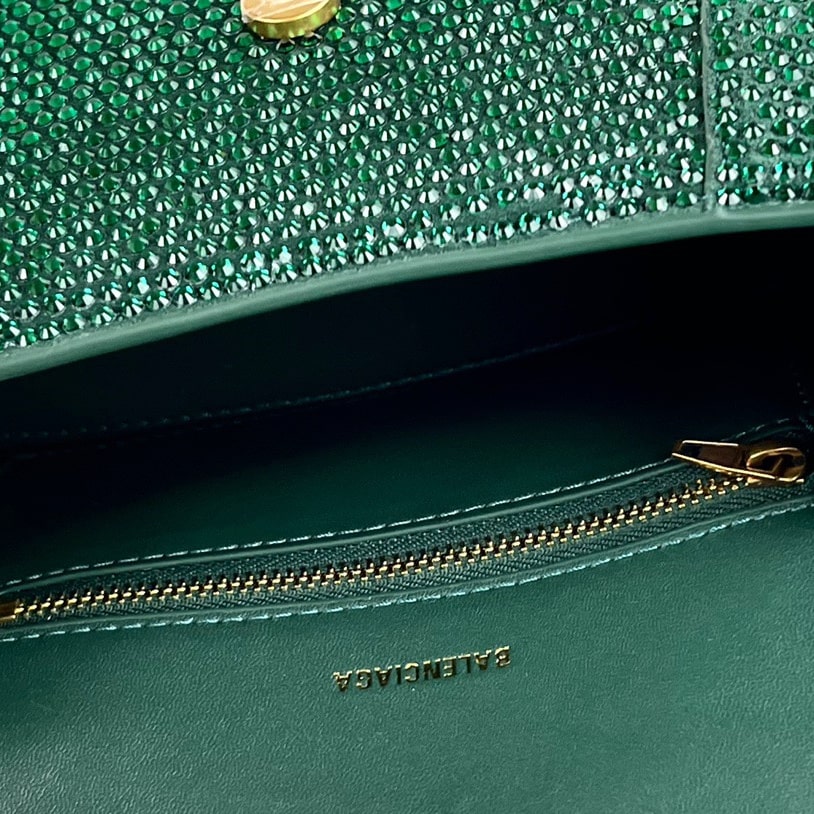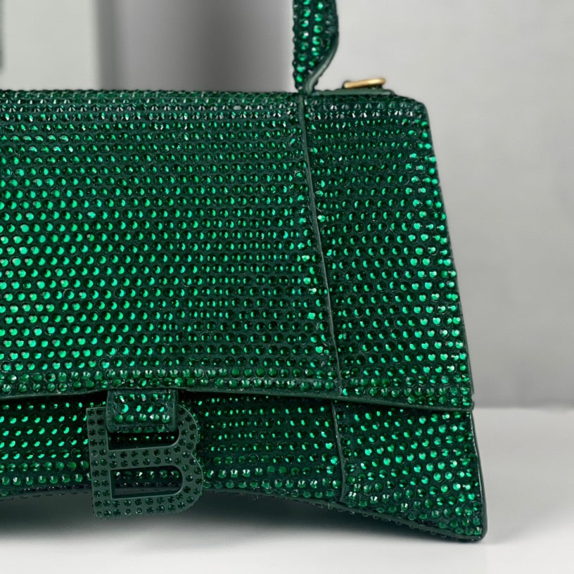 高仿Balenciaga全新推出Hourglass系列沙漏包限定款,詮釋了高端美感的由來.外觀部分同步正品使用源材質碎鑽進行手工貼鑽工藝,內置小羊皮材質手感極度舒適,作為真皮手袋,隱藏包內舒適精益求精.