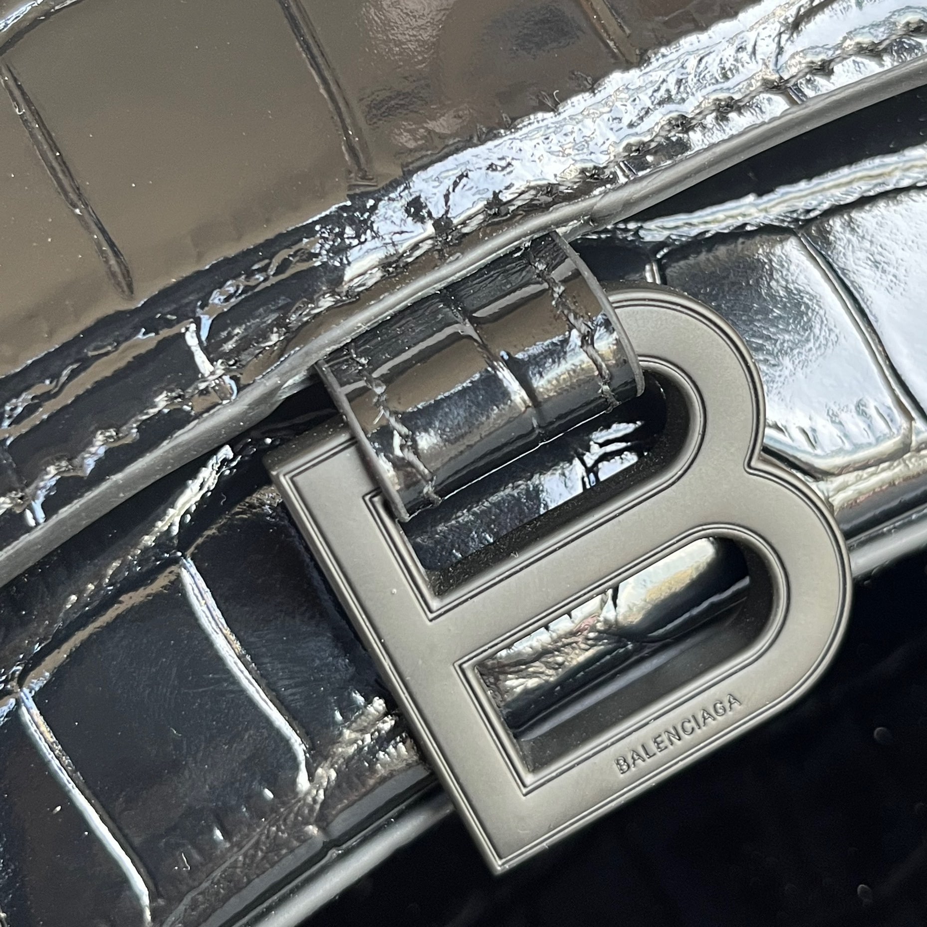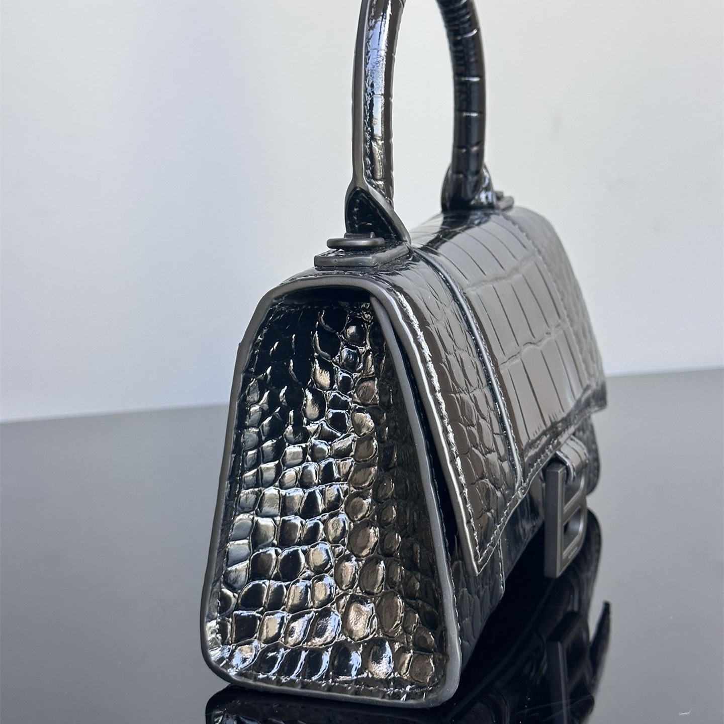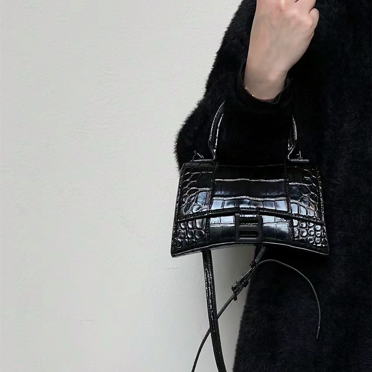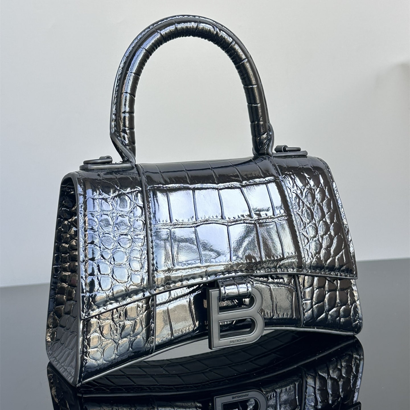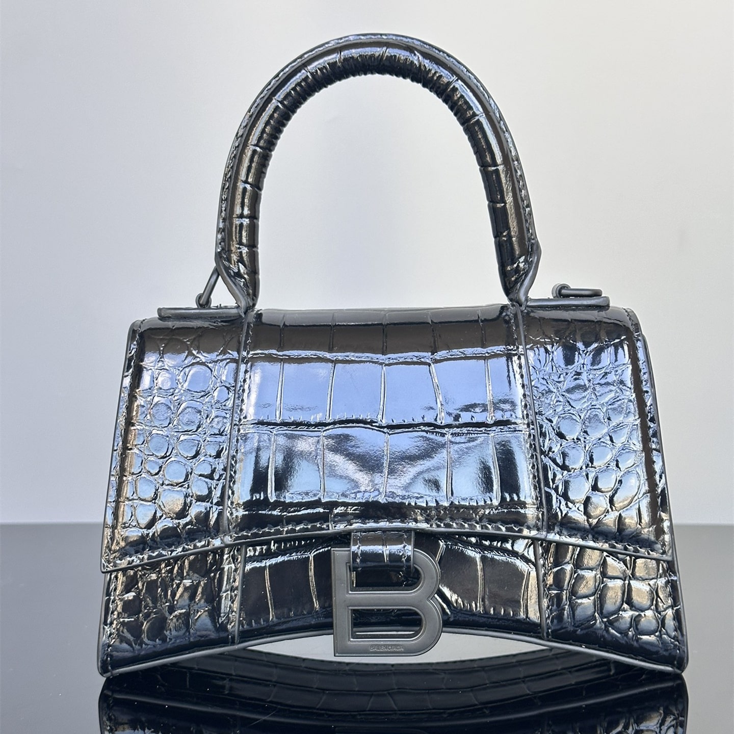高仿巴黎世家鱷魚皮手袋全新面世,俗稱沙漏包是其包款上窄下寬的造型如同半個沙漏因此得名.也是當前奢侈品Balenciaga中辨識度最高的包款之一,而底部結構超大弧度設計,鏤空造型,一下就與市面上各種潮流品牌形成獨特的魅力,尤其突顯審美.