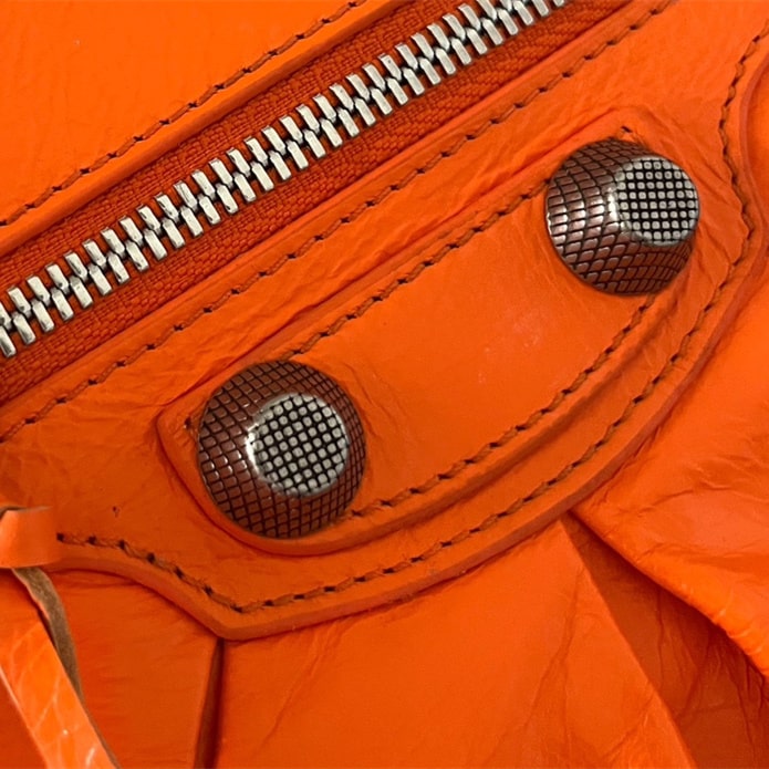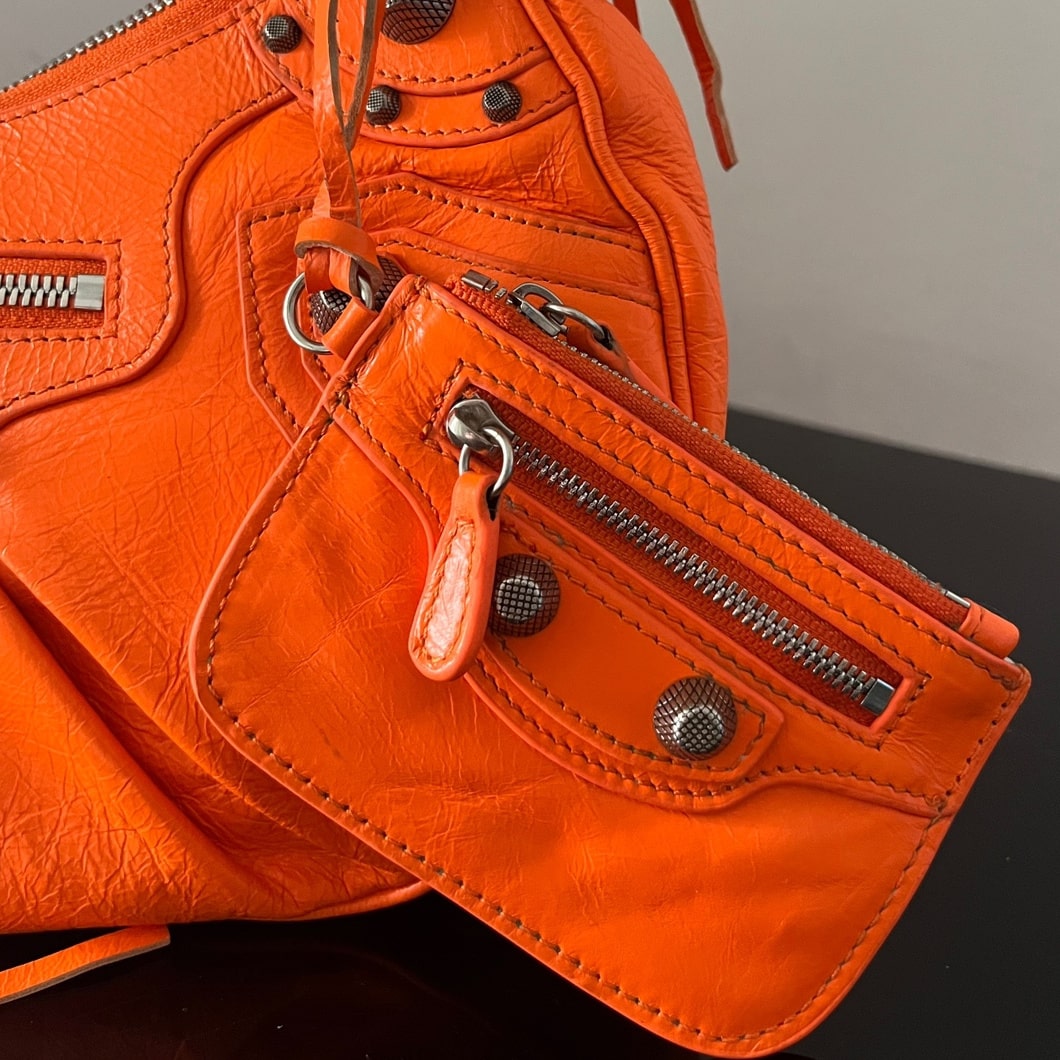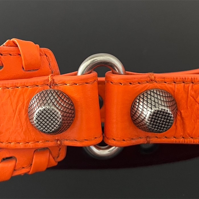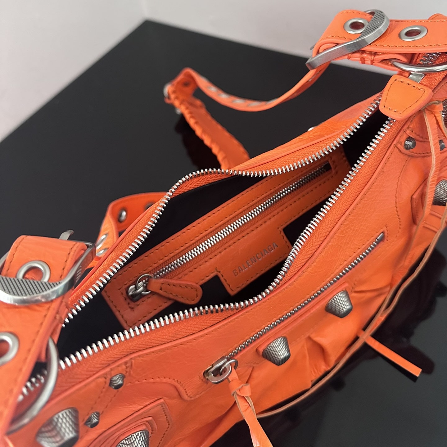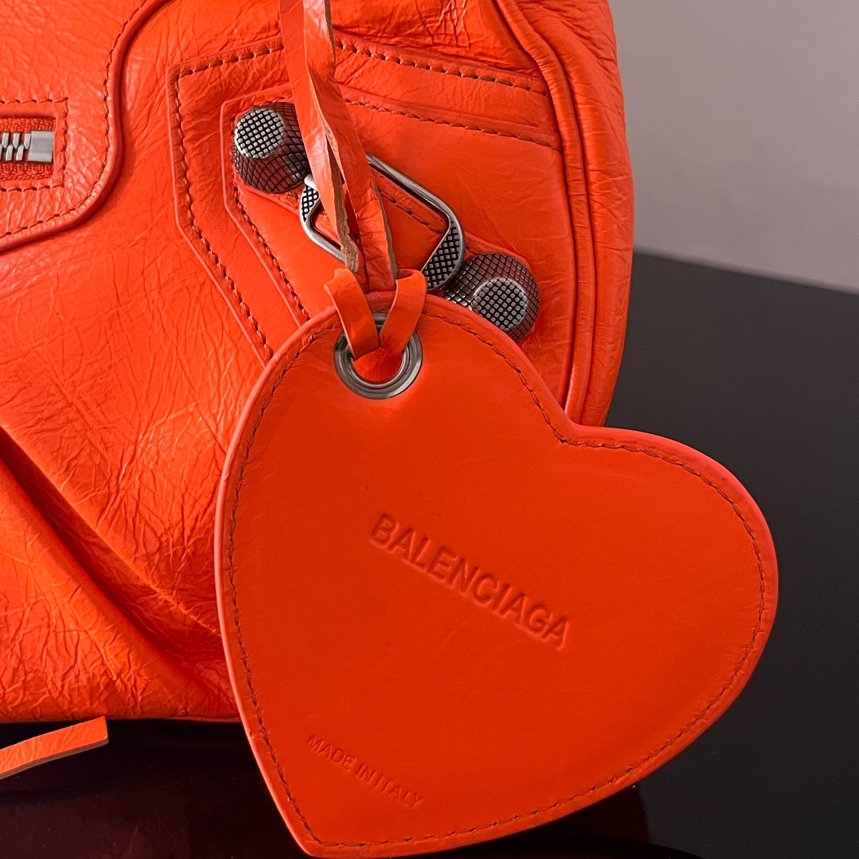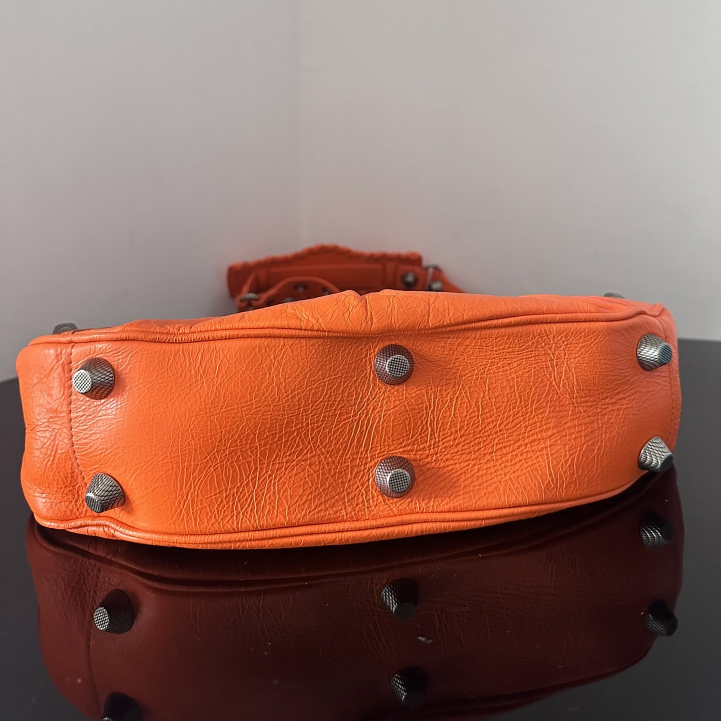 高仿奢侈品A貨包包Balenciaga全新推出LeCagole系列手袋包款,橙色的皮質具有一種非常亮眼的視覺感,但並非符合每一位女士的審美,風格類型偏向機車風格,作為甜辣妹風格的首選一直都屬於熱門包款.