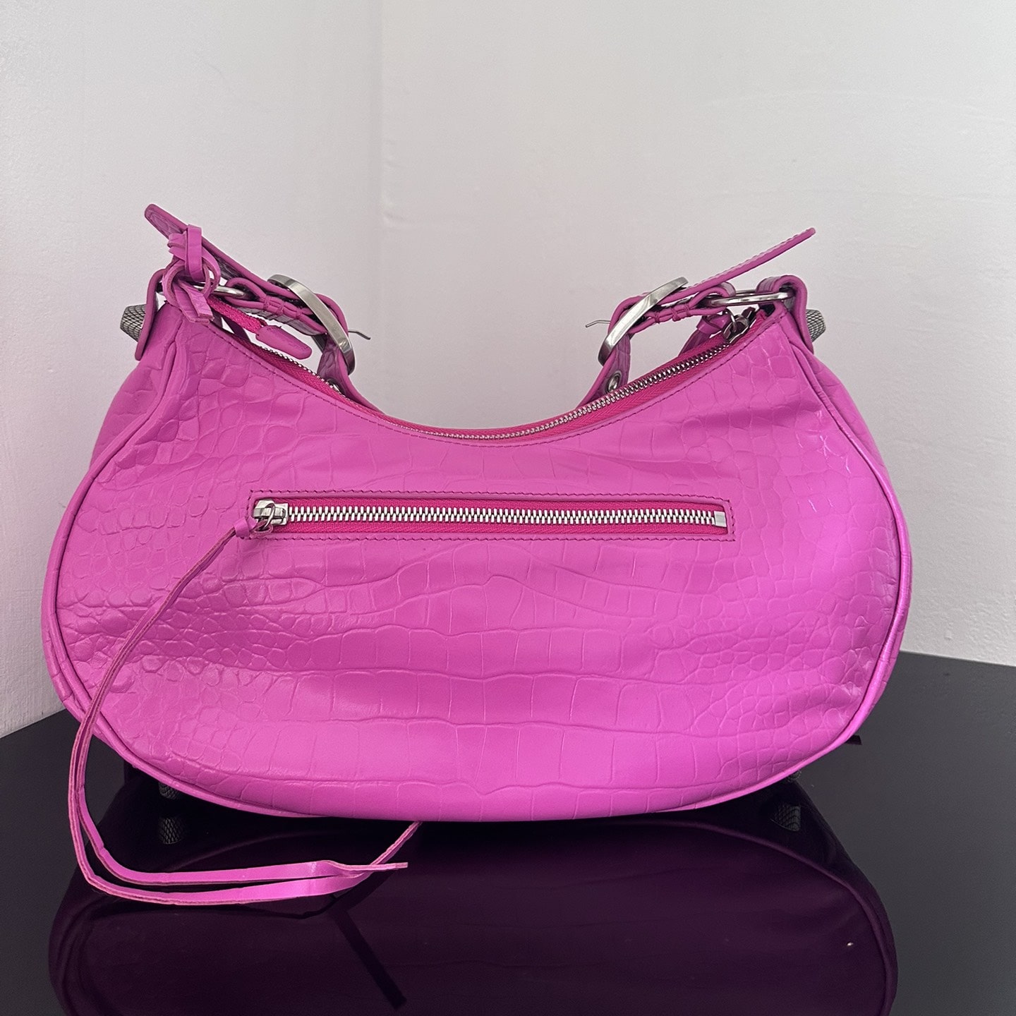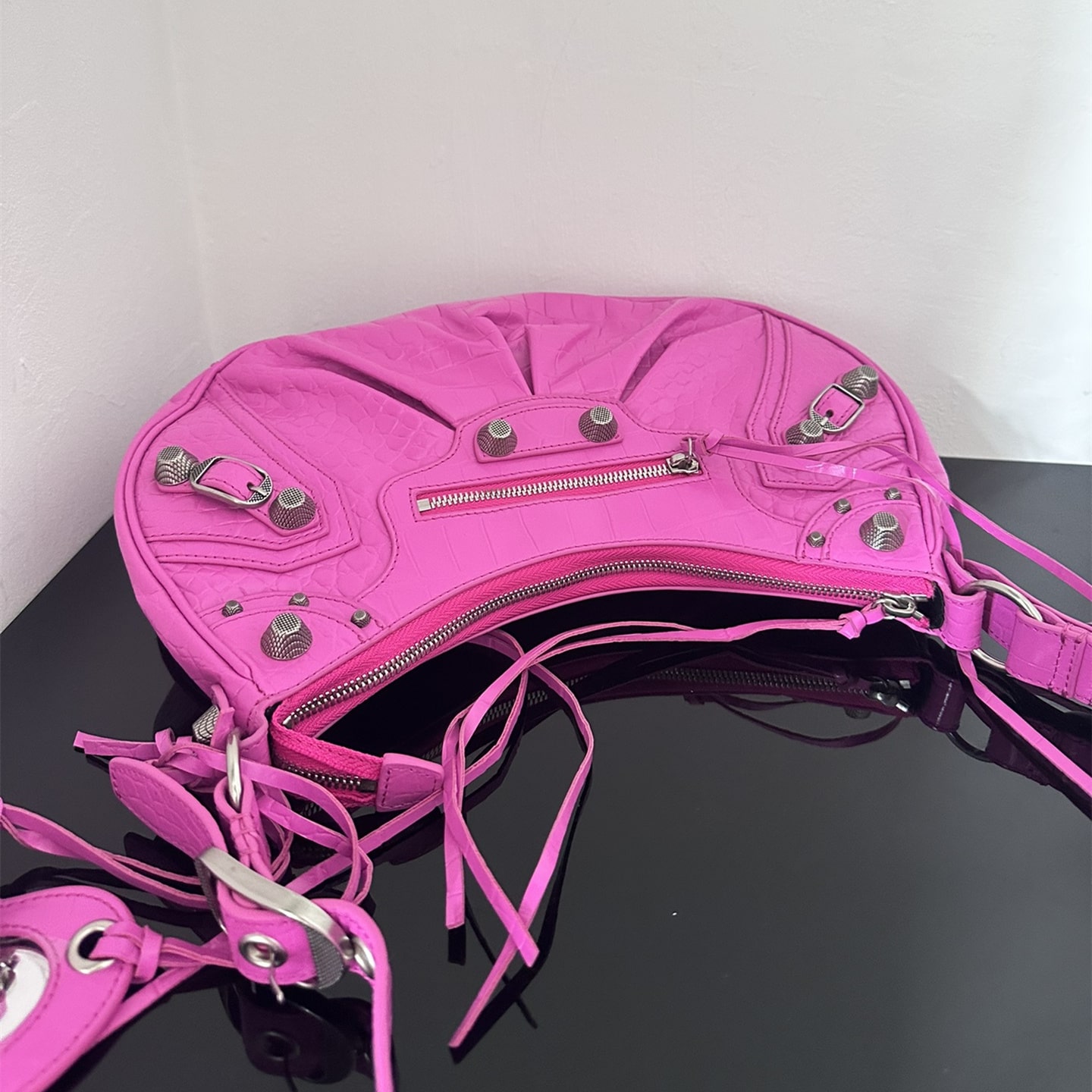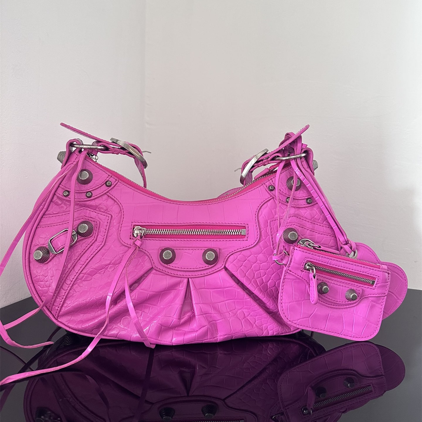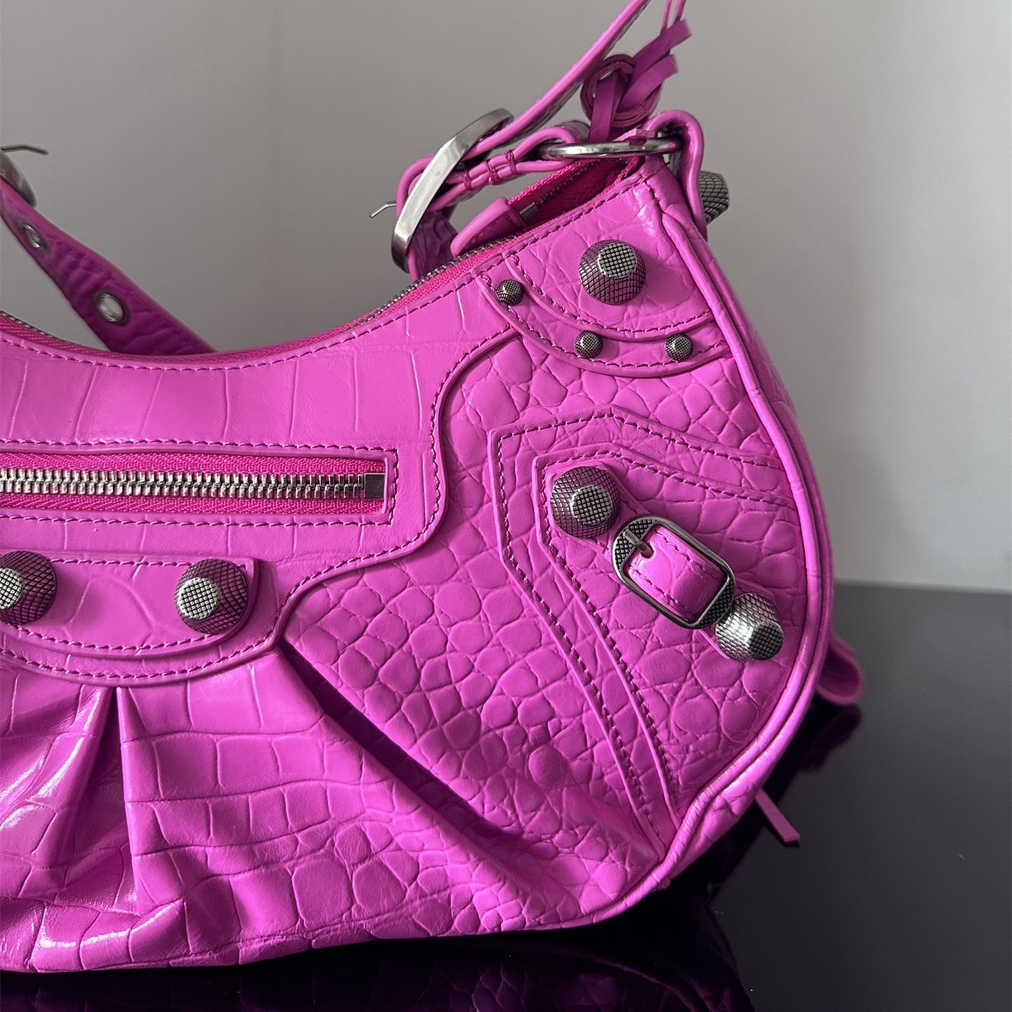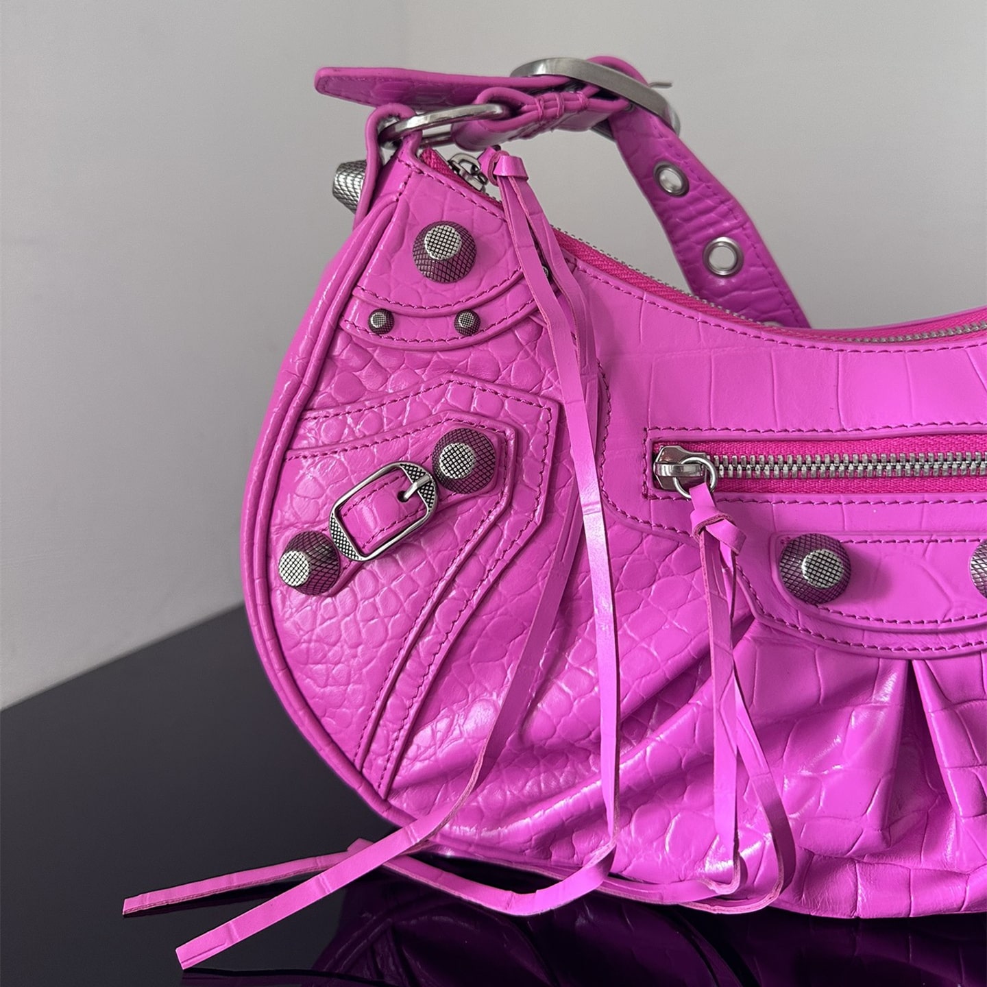 超A級別高仿包包巴黎世家很好詮釋了包款復刻的工藝是精益求精的表現,這一隻LeCagole系列餃子包匹配了玫紅色色系,相當於配色是比較妖艷的視覺感,一般不是喜歡獨特風格的女性基本上不會選擇.