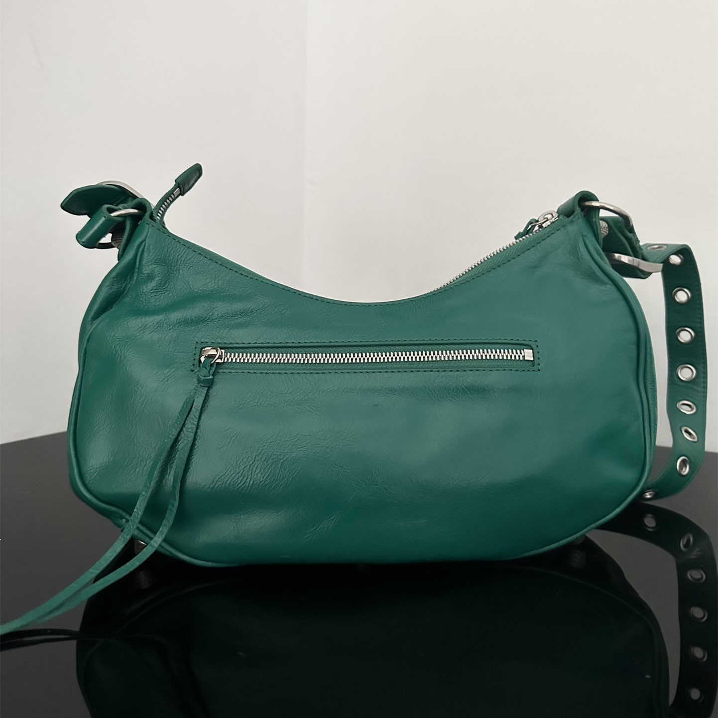 高仿巴黎世家包包LeCagole系列全新推出祖母綠餃子包款,一款具有前衛風格設計的包袋,非常符合腋下包的基礎設計,加上祖母綠的配色更加奠定了女性的年輕風格,即可單肩也可以通過調節肩帶作為手拎包使用.