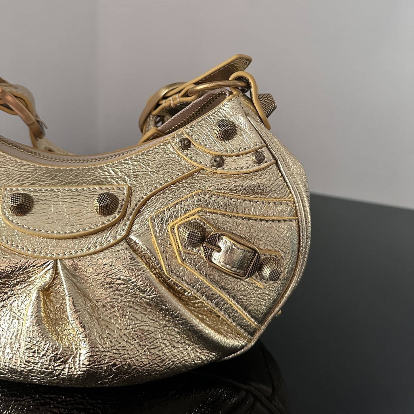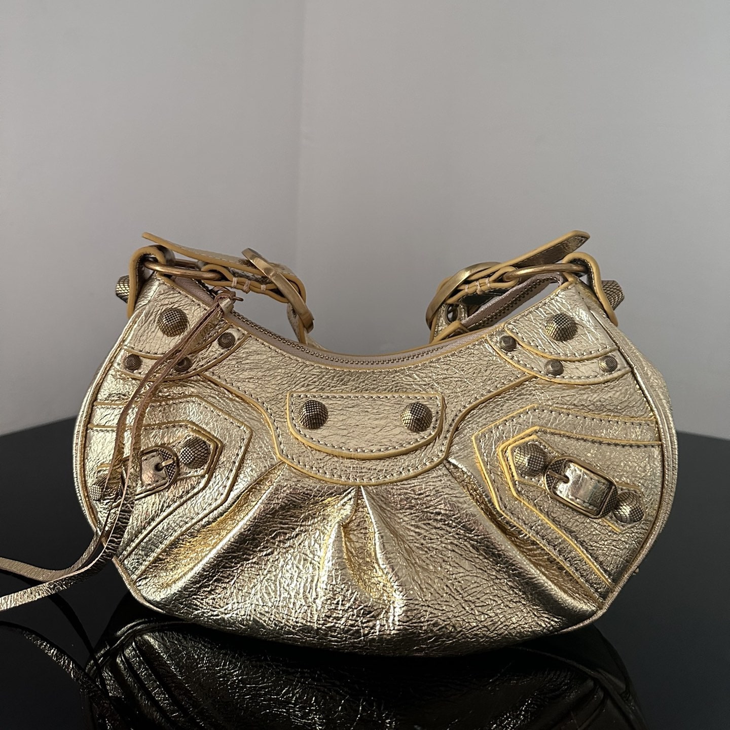 高仿Balenciaga*LeCagole系列餃子包金色XS