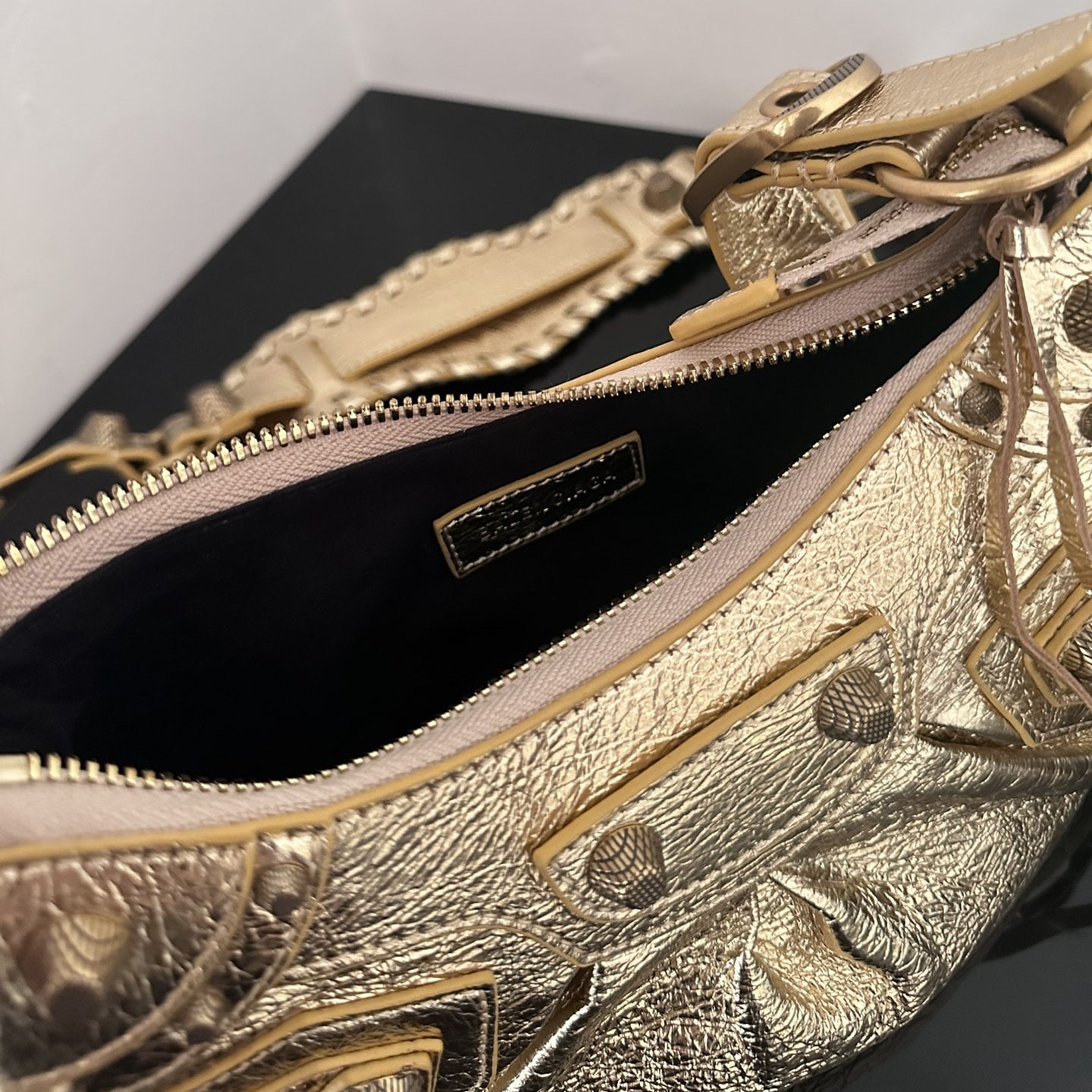高仿BalenciagaLeCagole系列一直都是偏向機車風格和朋克風格,眾多年輕女士日常穿搭比較匹配的首選.特別是對於喜歡機車女孩選擇這一隻巴黎世家餃子包不僅呈現出一種金屬視覺感同時也能夠增加辣妹的味道.