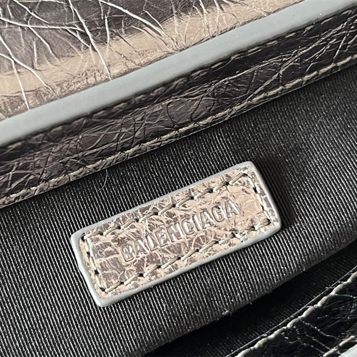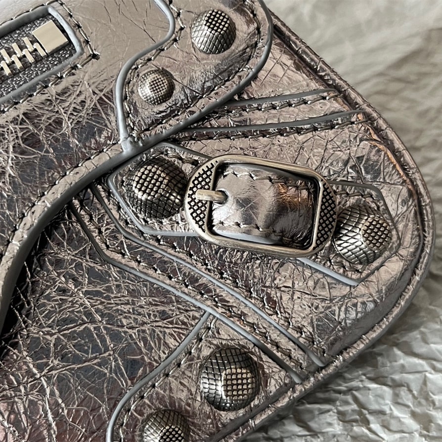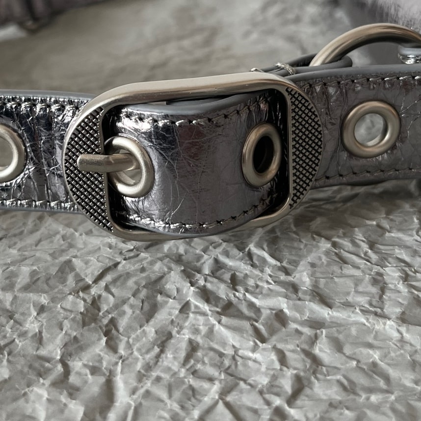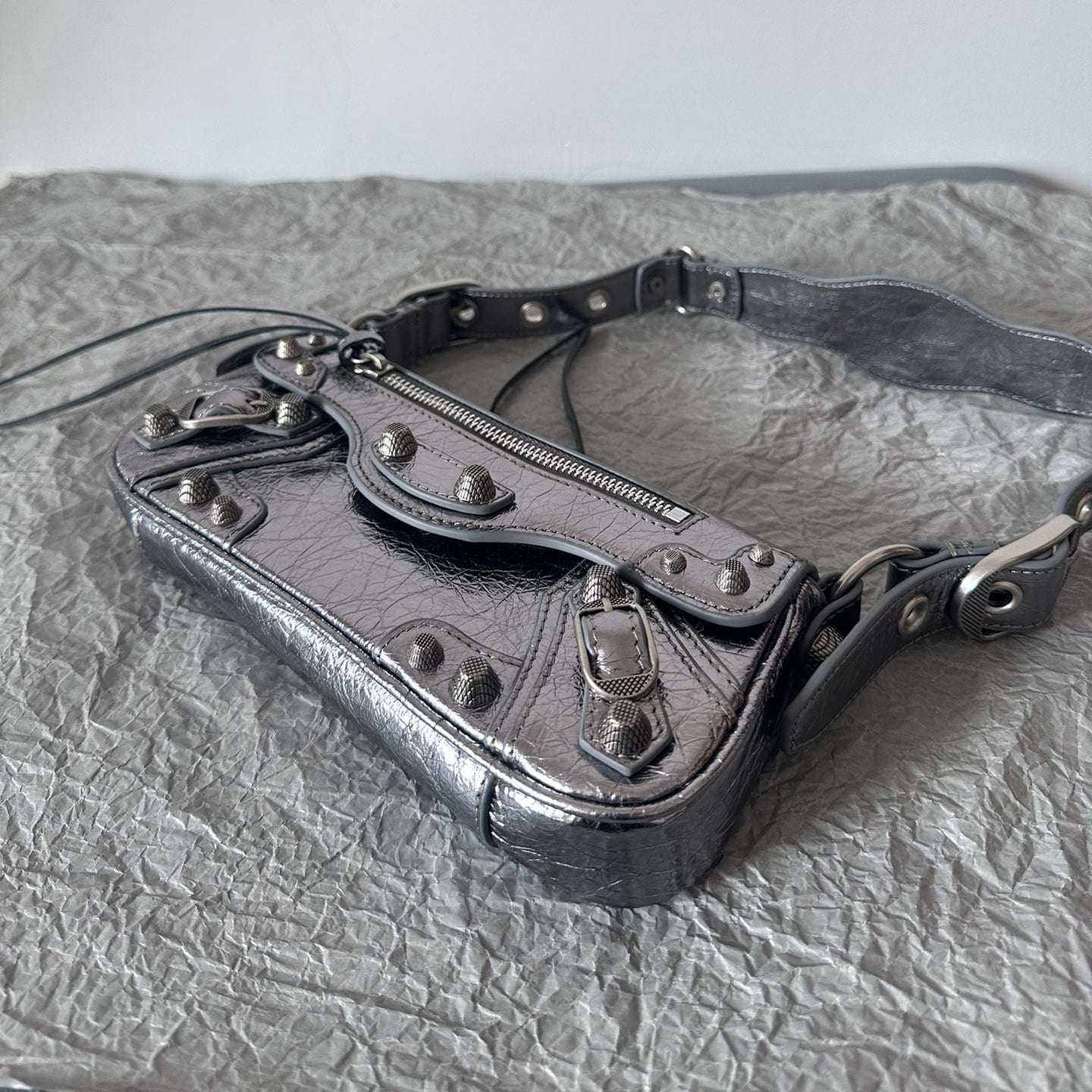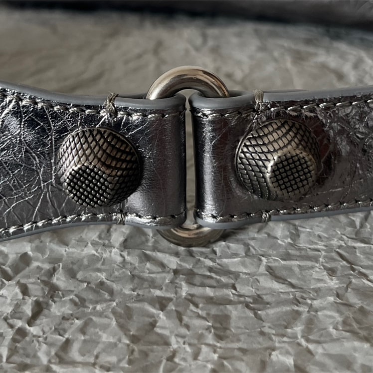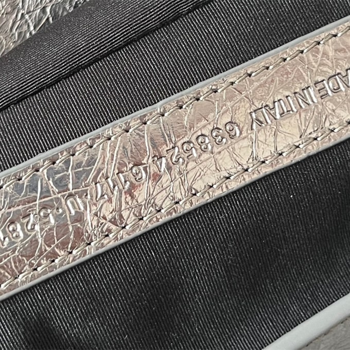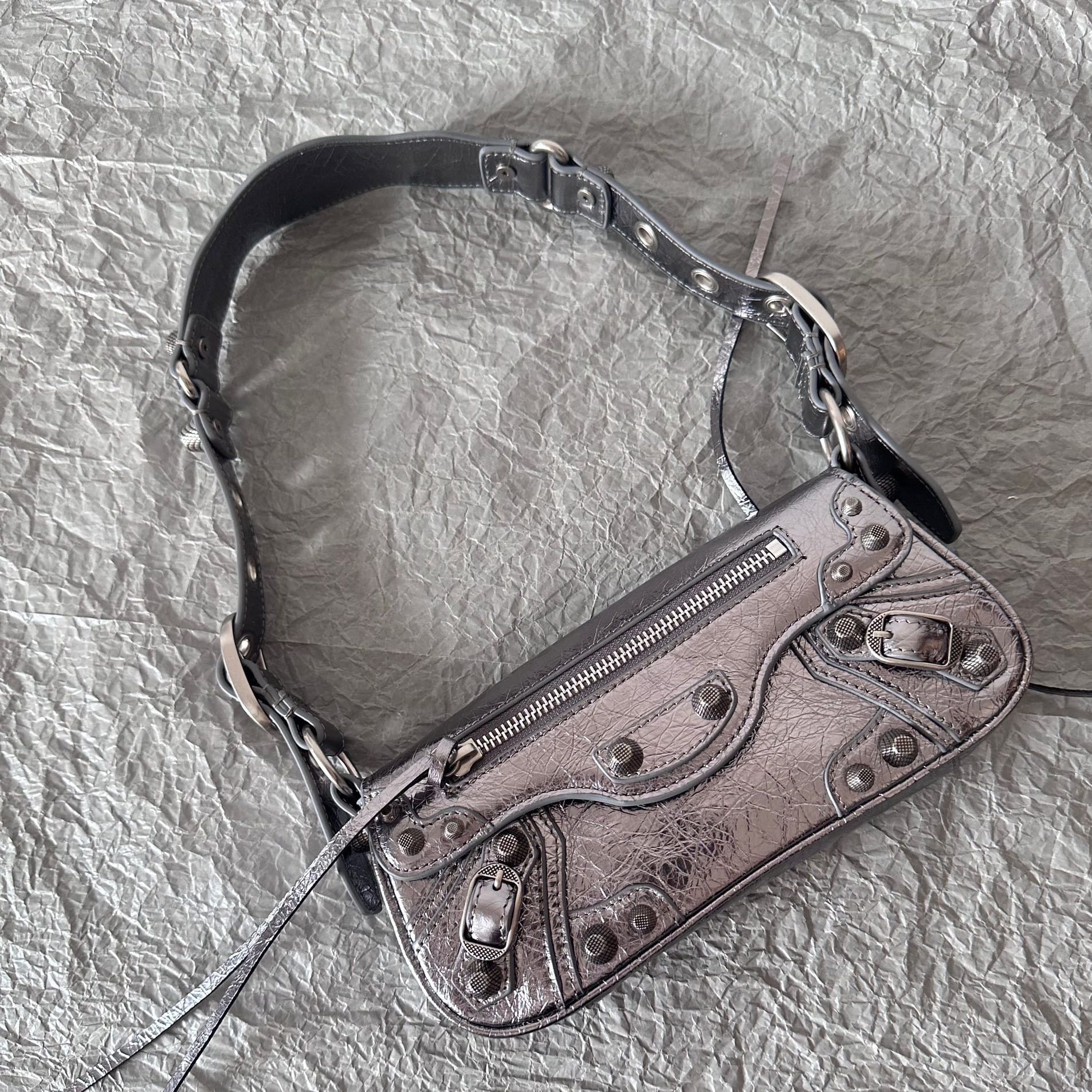 高仿Balenciaga*LeCagole系列在2024年全新推出春夏季度款,一款法式單肩法棍包的誕生,源於巴黎世家最擅長的設計理念.銀色皮革奠定了一種金屬氣息,非常適合喜歡朋克機車風的女士佩戴,即可單肩和手拎手提使用.