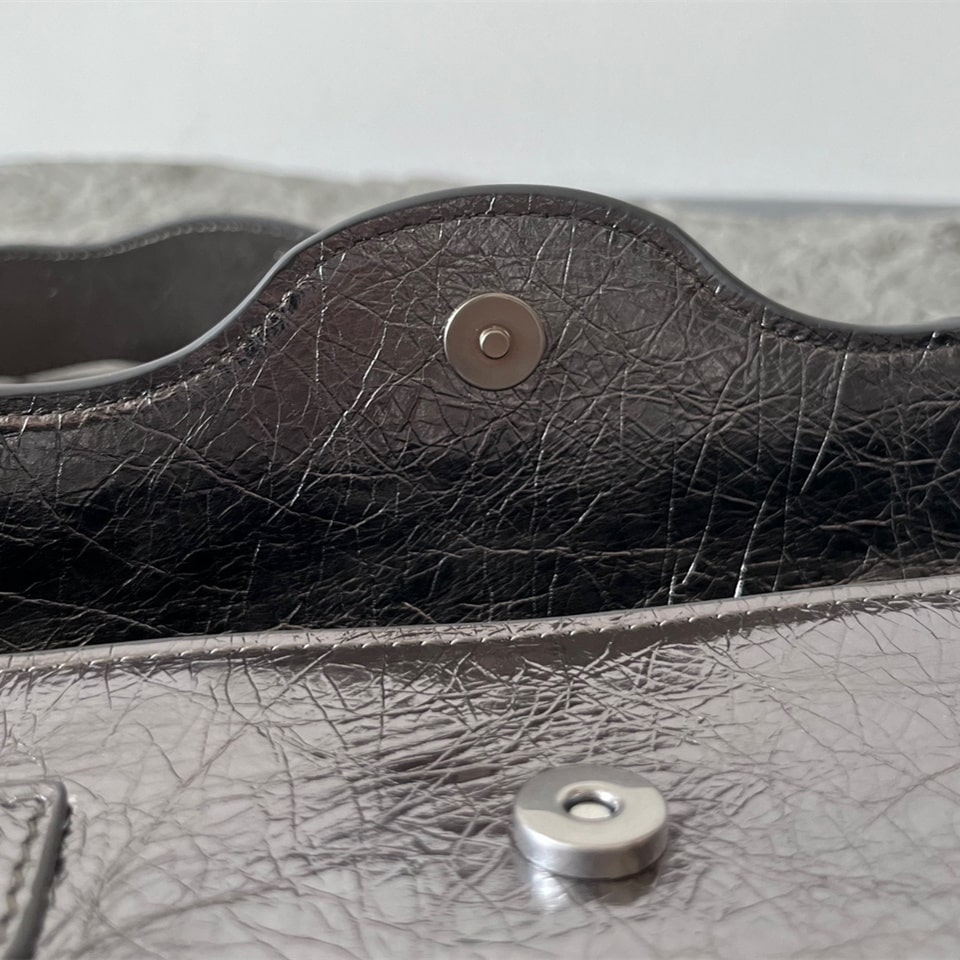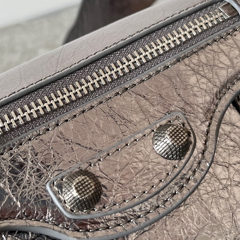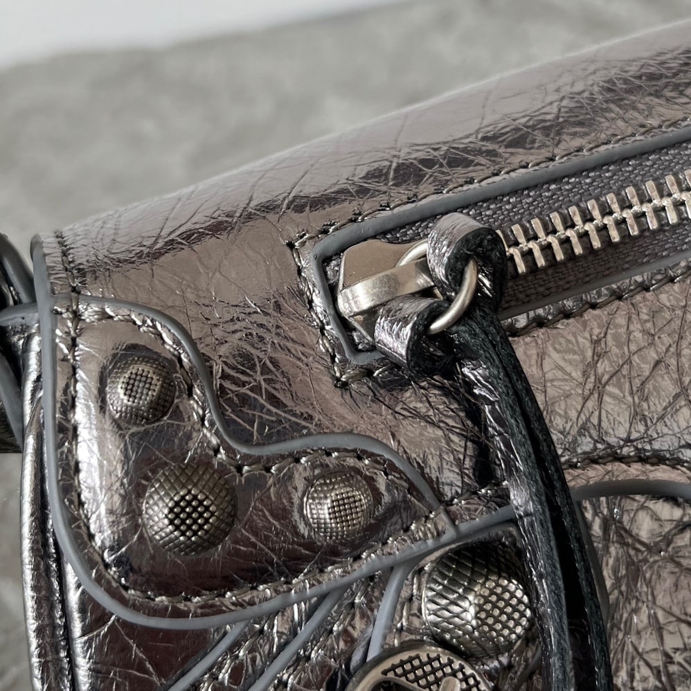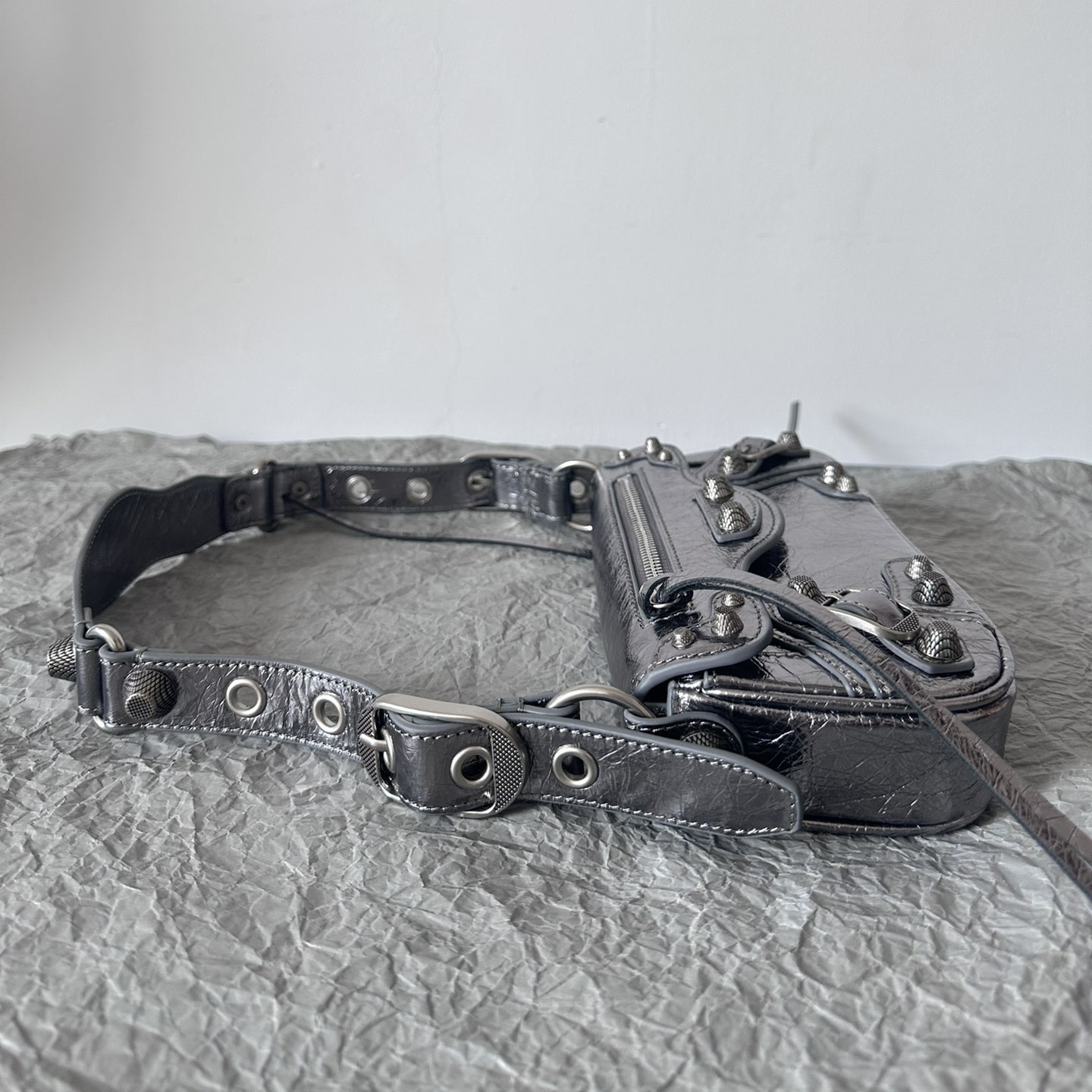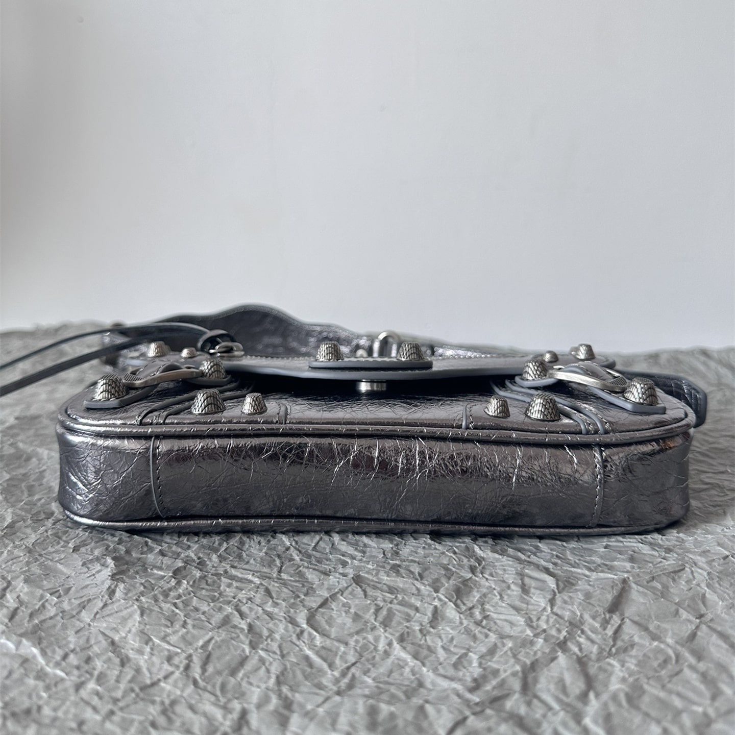 高仿Balenciaga*LeCagole系列在2024年全新推出春夏季度款,一款法式單肩法棍包的誕生,源於巴黎世家最擅長的設計理念.銀色皮革奠定了一種金屬氣息,非常適合喜歡朋克機車風的女士佩戴,即可單肩和手拎手提使用.