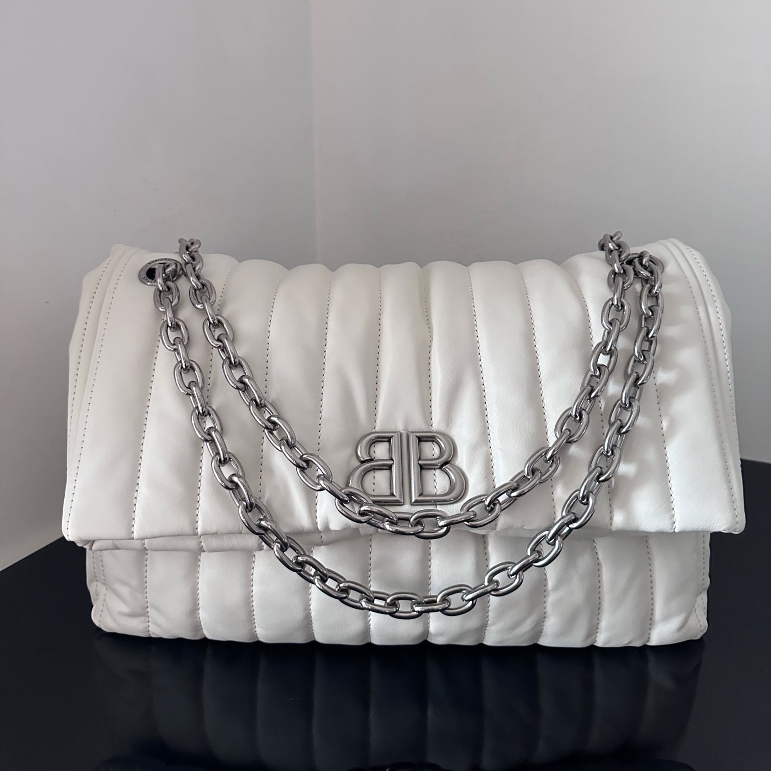 高仿Balenciaga*Monaco系列新款首次亮相於冬季23細節發佈秀以大輪廓而聞名,包身柔韌有質感.採用超柔軟爆裂小牛皮,手感軟軟的百搭不同風格輕鬆駕馭狠有型的一只,可以裝下整個世界.
