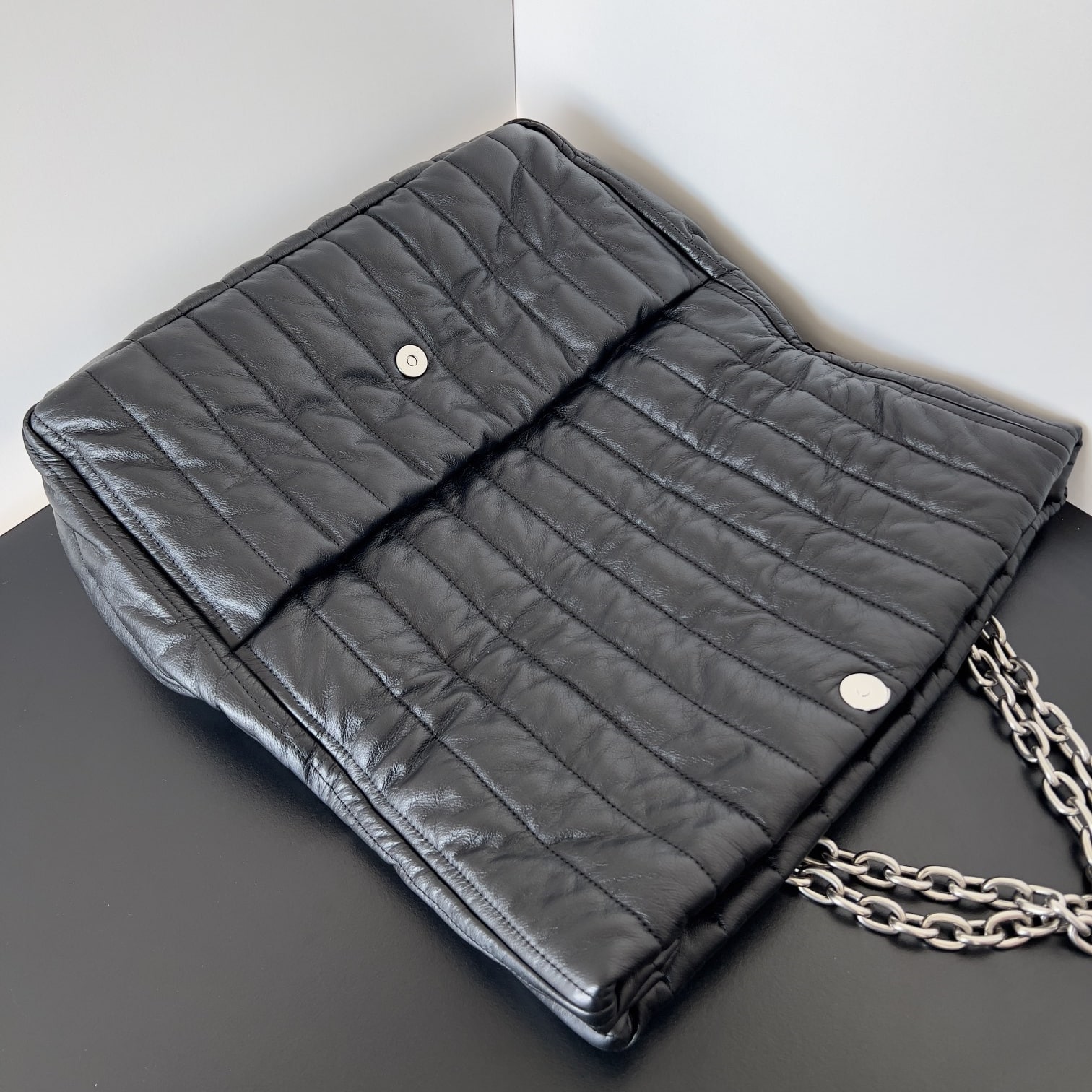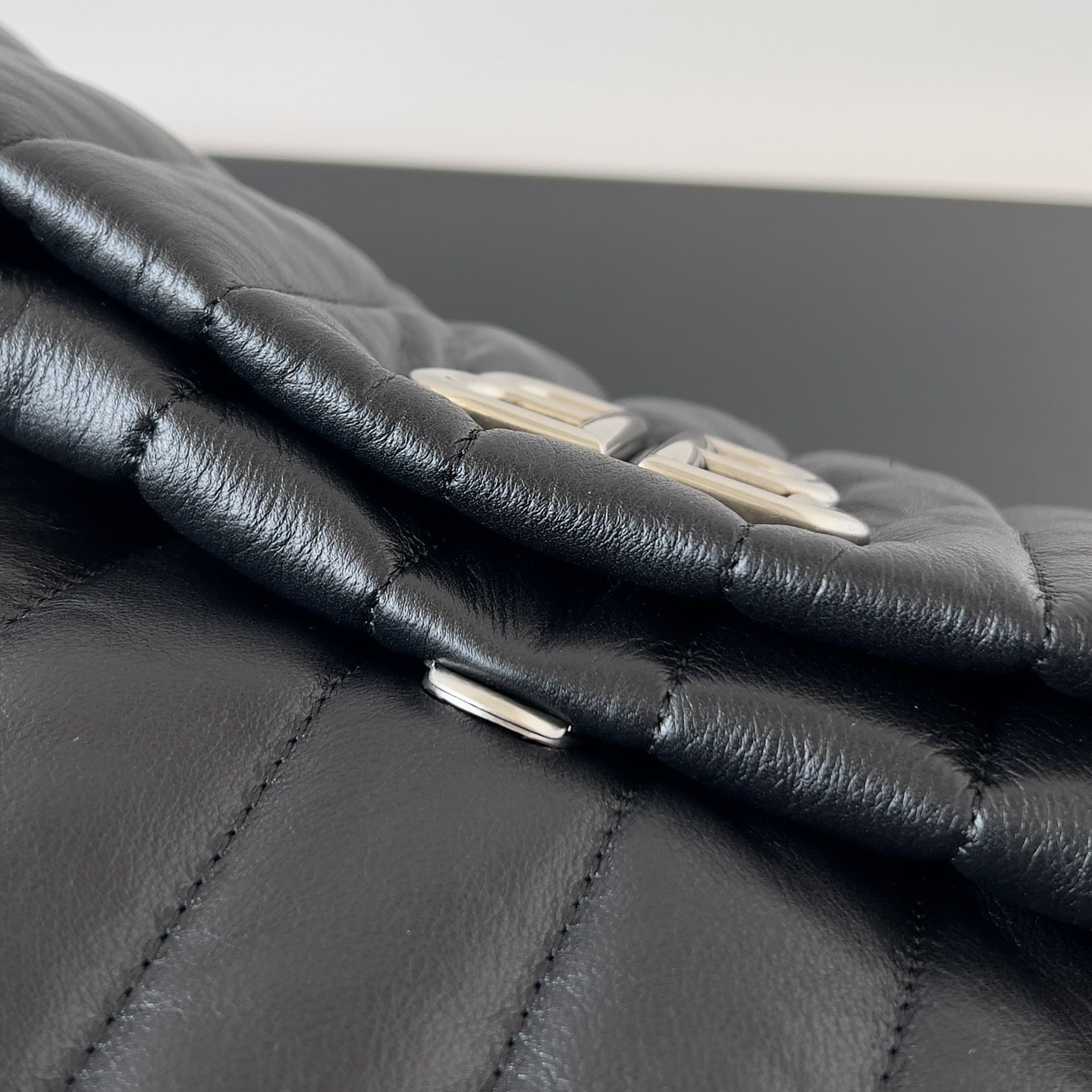 內置進口托料填充,柔和按壓幾乎不會感覺到劣質的塌陷.頂級原單版本配備厚鍍工藝銀色金屬扣具與鏈條.正面部分沿用到雙B字母,打磨拋光色澤圓潤.內置帆布材質,外縫線與內縫線兼修製作,燙印LOGO字母弧度無誤差.