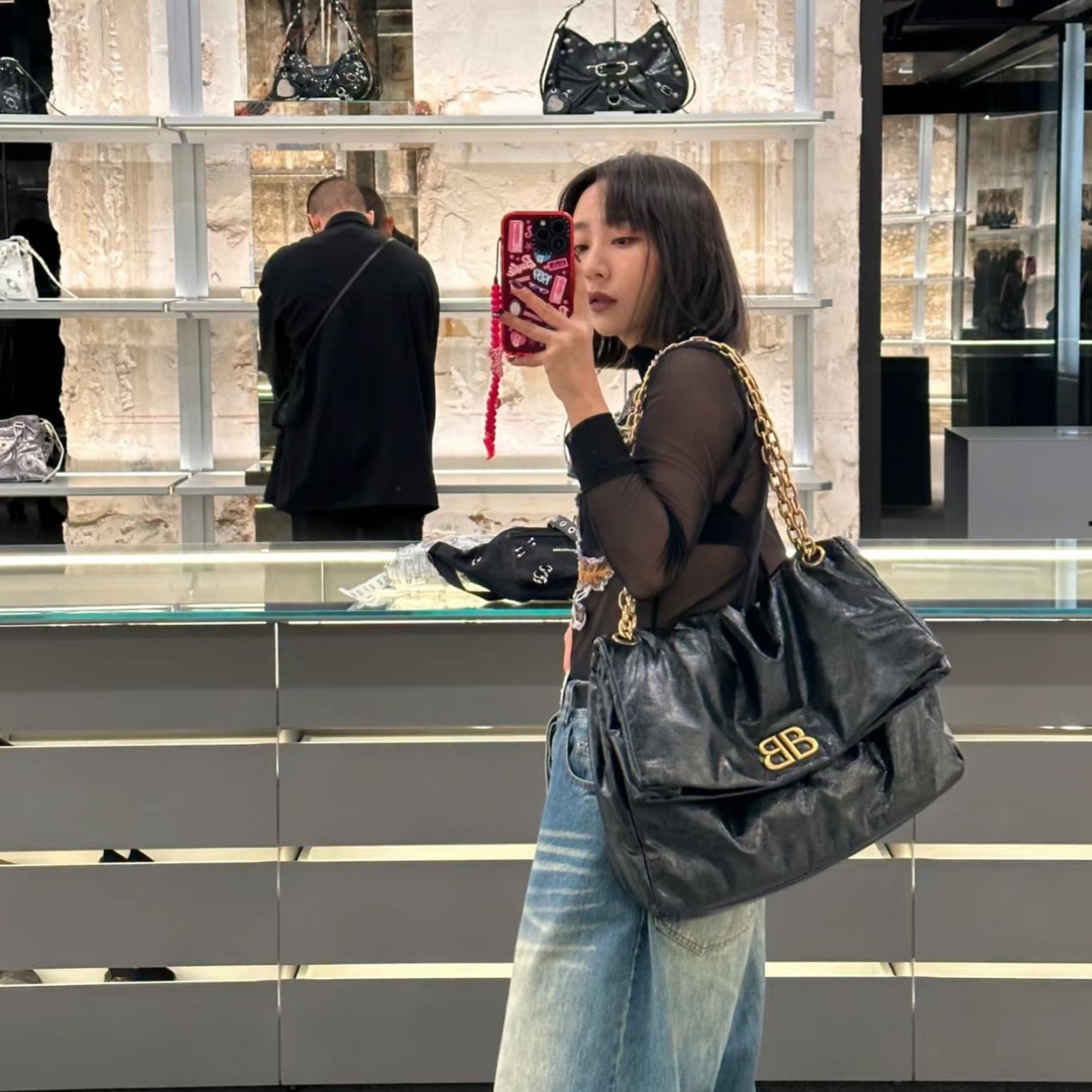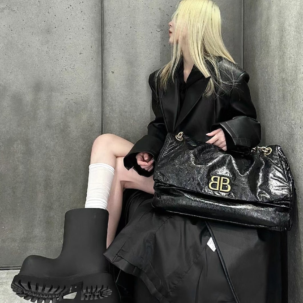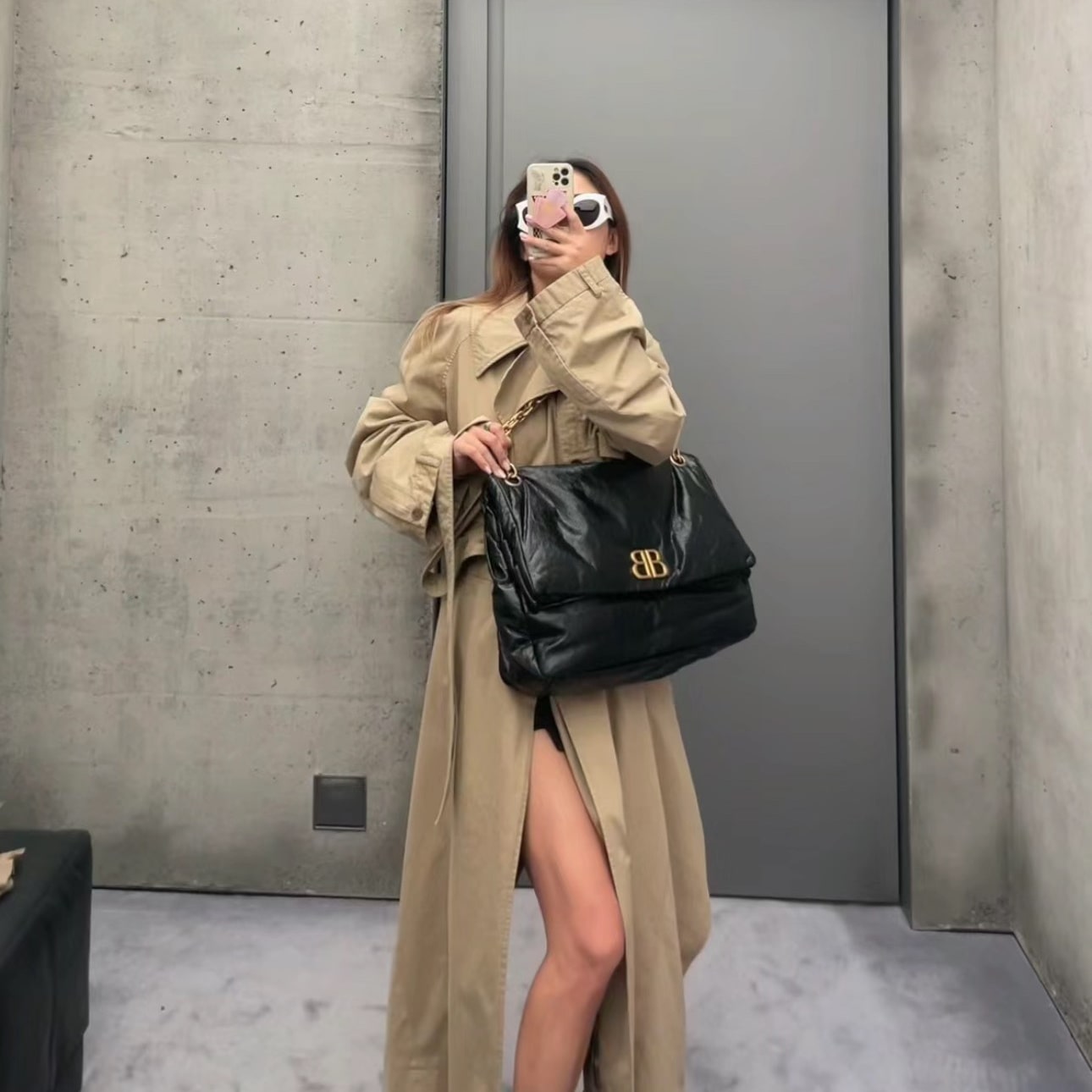 BalenciagaMonaco系列23款新款首次亮相於冬季23細節發佈秀以大輪廓而聞名,包身柔韌有質感.才用超柔軟爆裂小牛皮,以柔軟的皮革打造豐富的層次,飾以經典圓邊BBlogo.