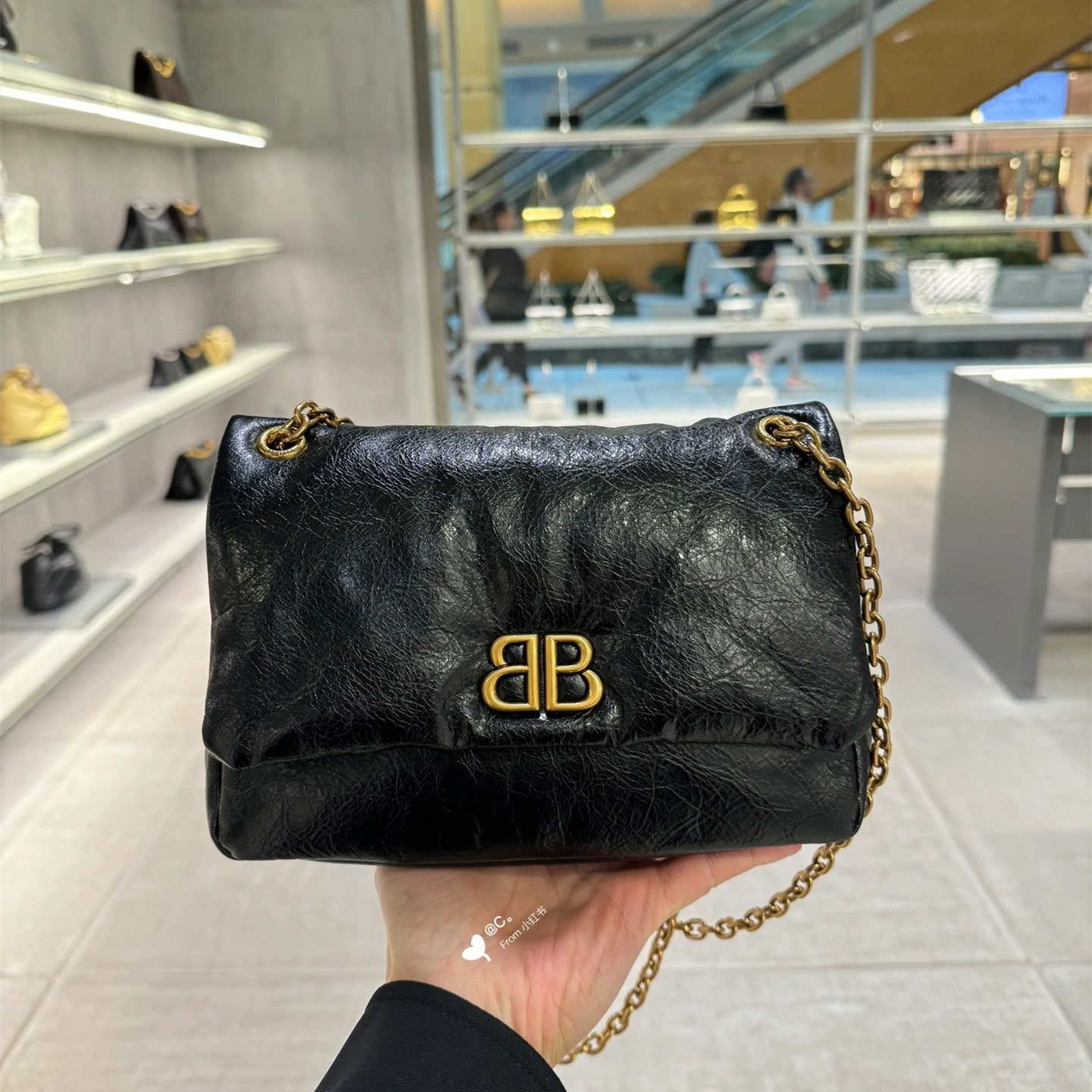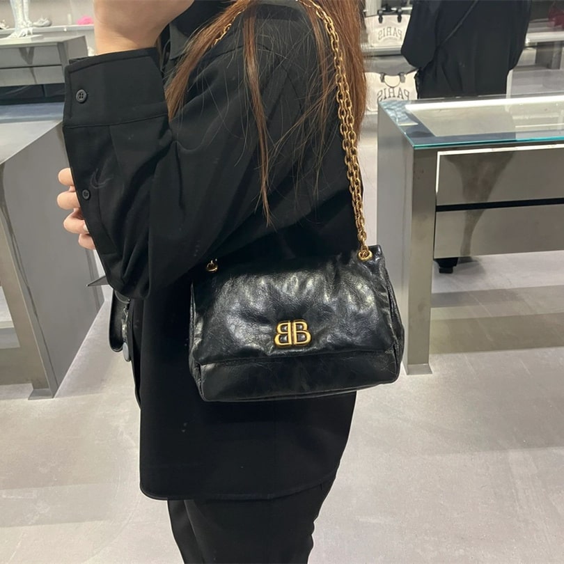 高仿BalenciagaMonaco系列23年秋冬季度新款單肩包Mini款,小巧的包身結構匹配金屬鏈條與雙B字母扣具,一款具有黑金包袋的款式完美呈現.不僅表達出巴黎世家品牌辨識度更具有新穎的設計理念.
