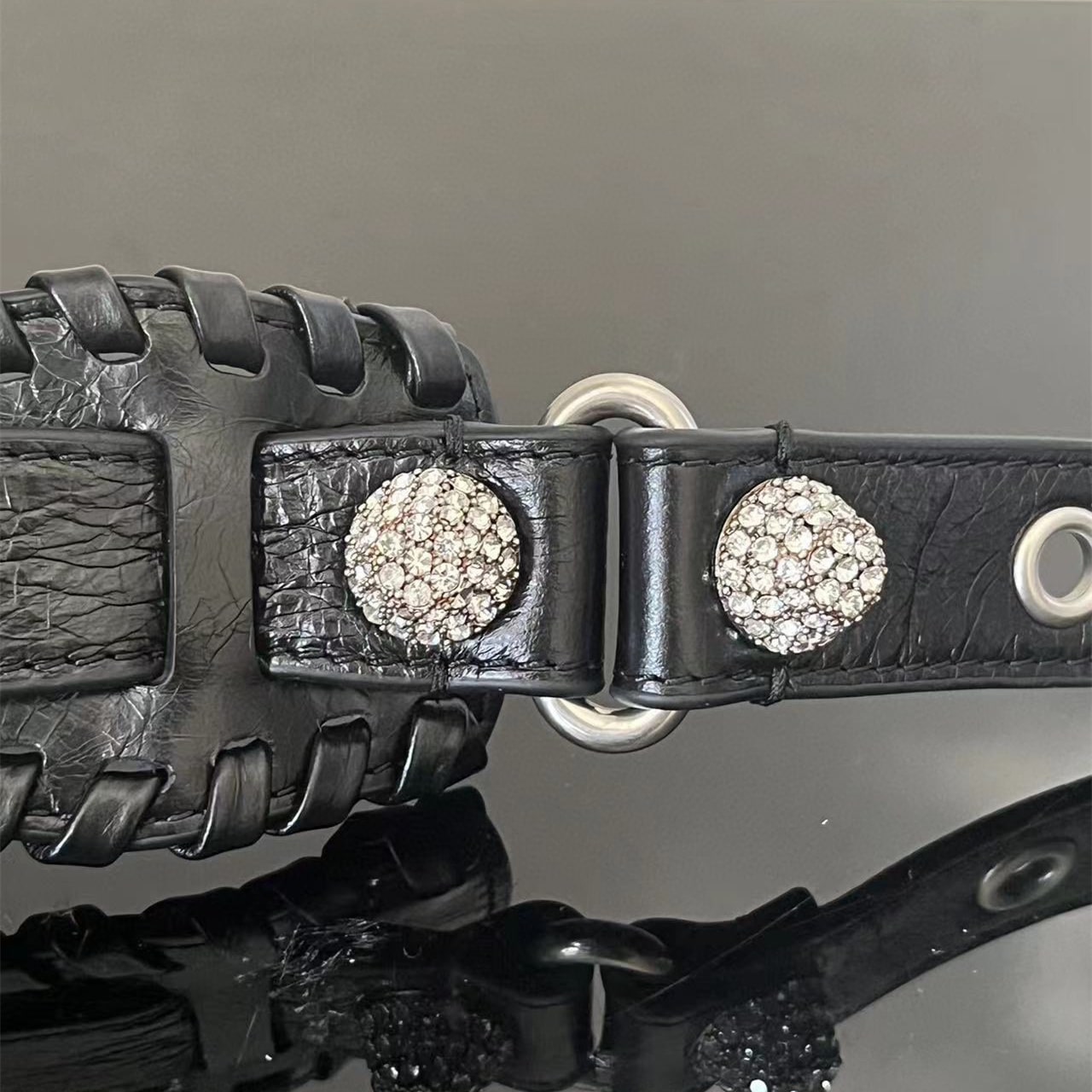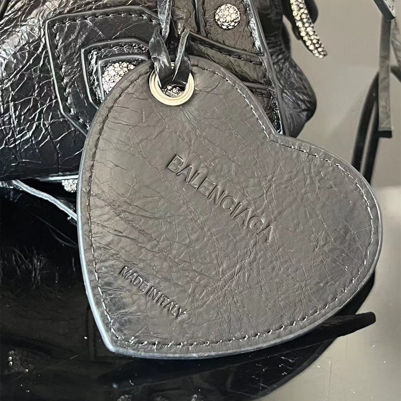 配備了爆裂紋小牛皮材質構造整個複雜的包身結構,機械元素整體效果拉滿,鉚釘與鑽石同時鑲嵌,鋒利感十足.配備了其餘一些愛心小鏡子和小型收納包包.純手工製作而成,堅決打造市面上獨家高端版本.