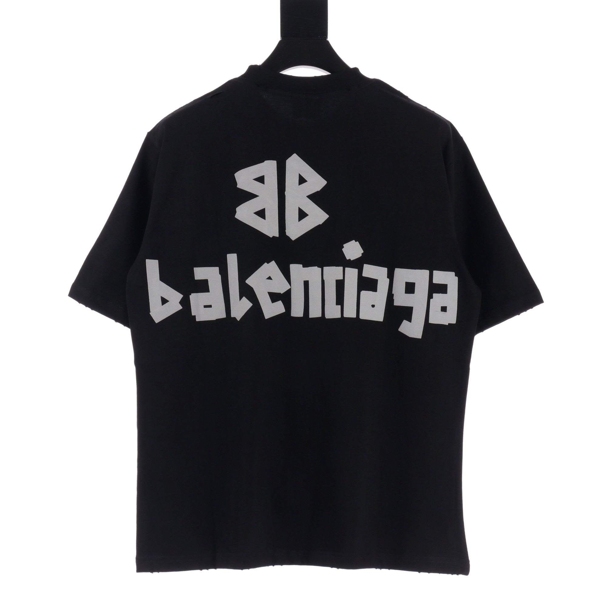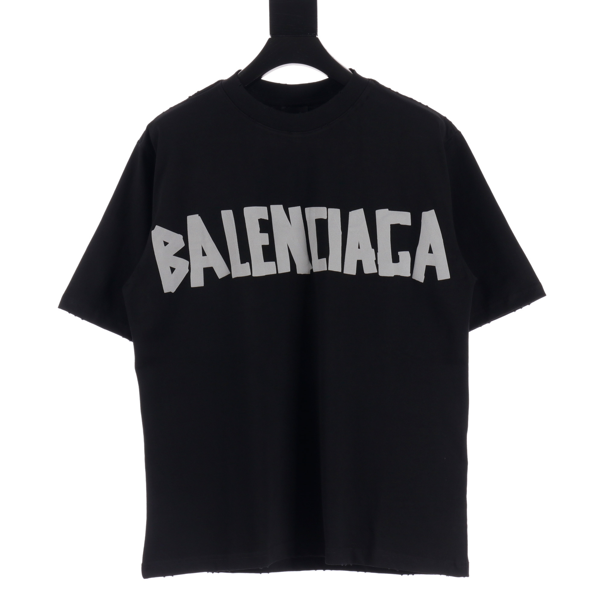 BALENCIAGA/巴黎世家24年春夏款灰膠帶字母發泡印花短袖T恤
