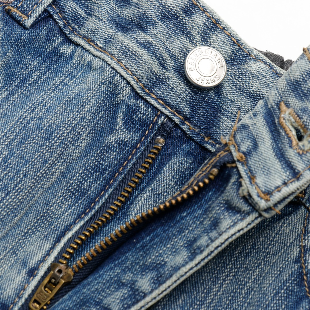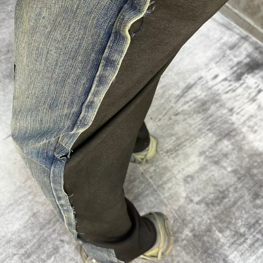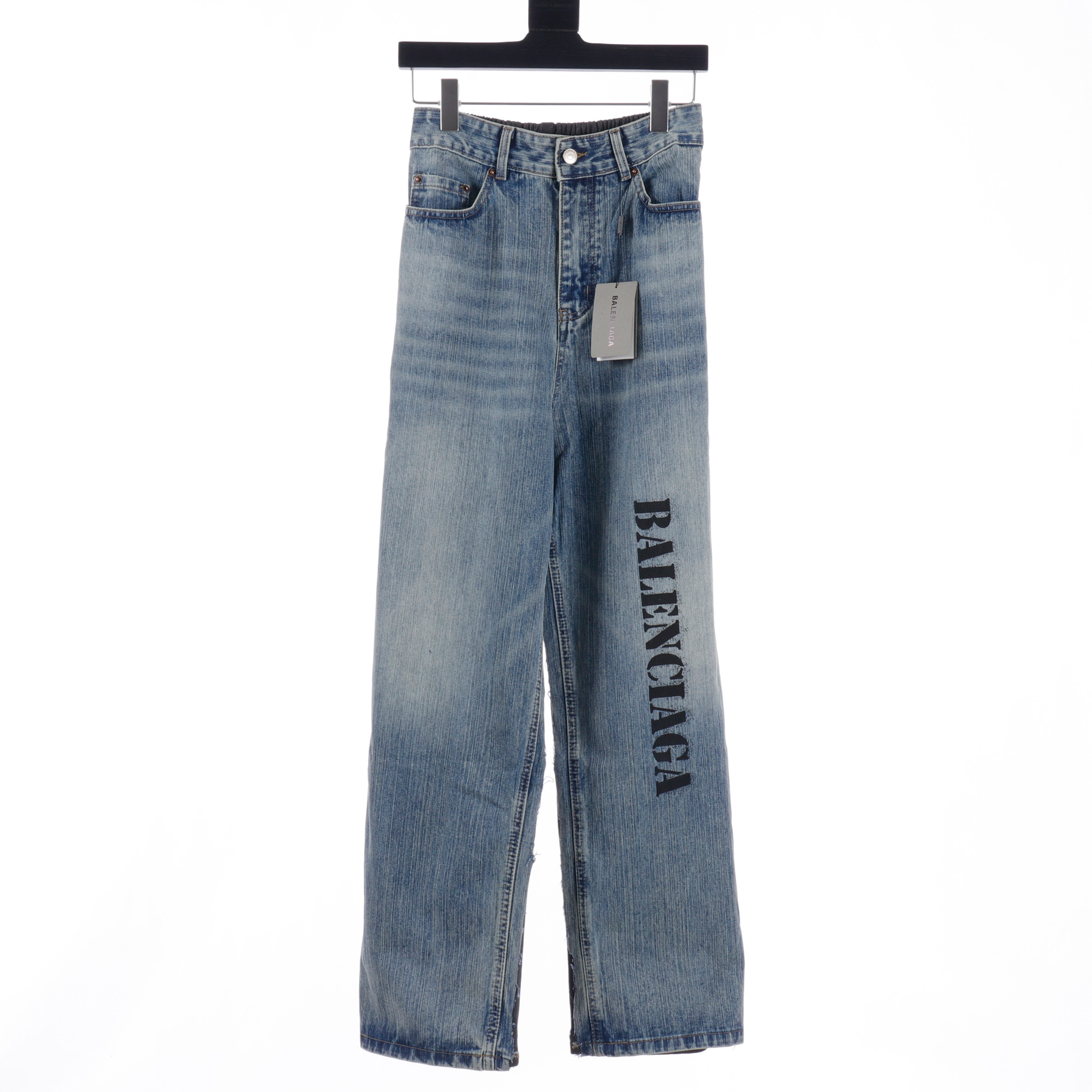 Balenciaga巴黎世家BLCG 拼接黑花灰色牛仔長褲