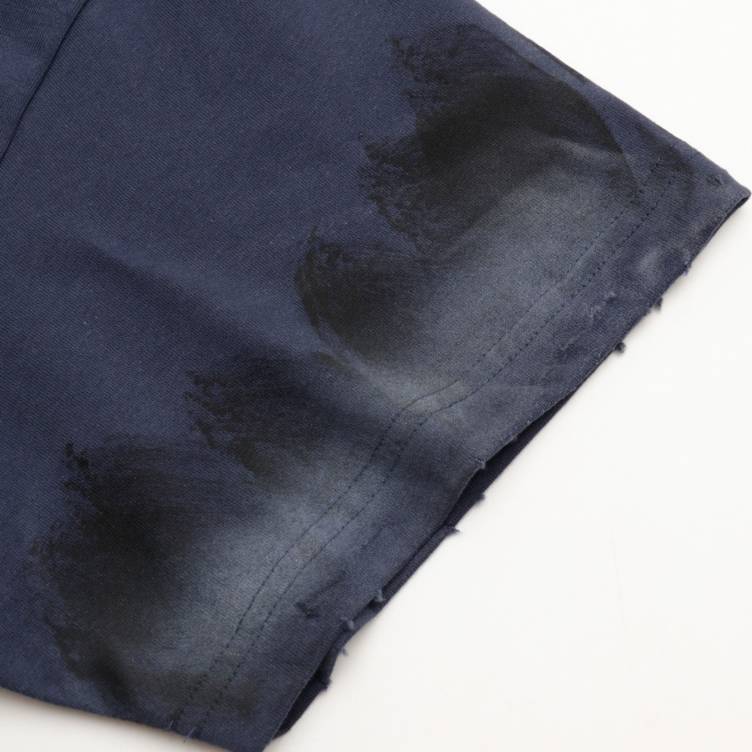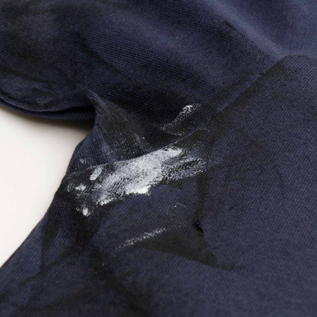 定織定染240g長絨棉,絲網菲林印花,成衣水洗破壞後再由工人手工噴色塗鴉做舊,外貿大廠代加工,做工走線完美