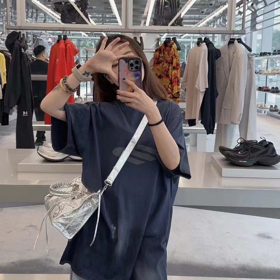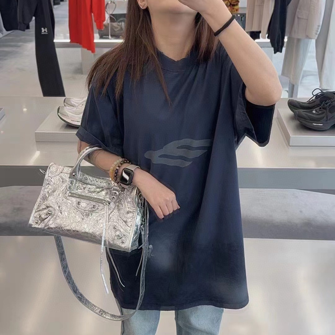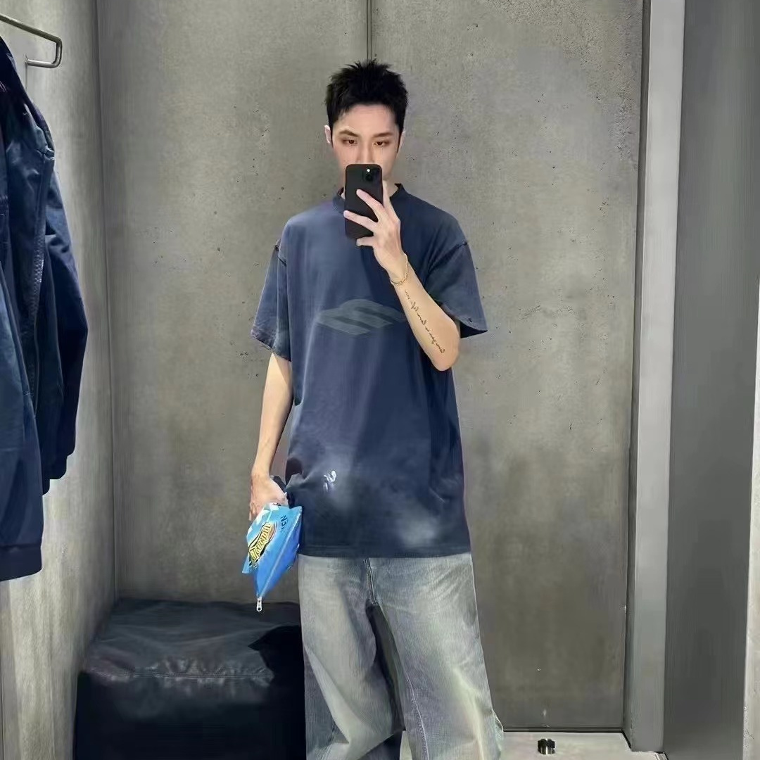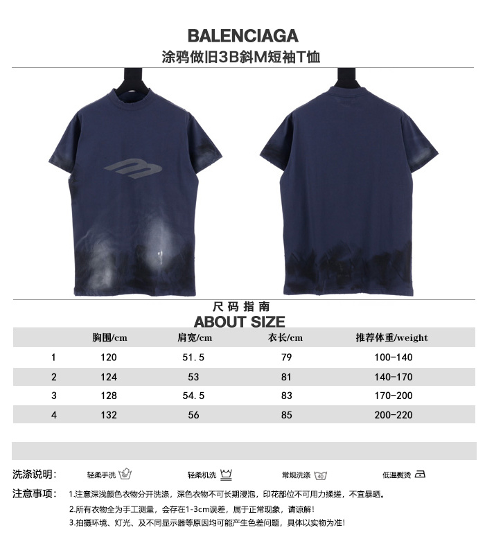 Balenciaga巴黎世家24新款 塗鴉做舊3B斜M短袖T恤