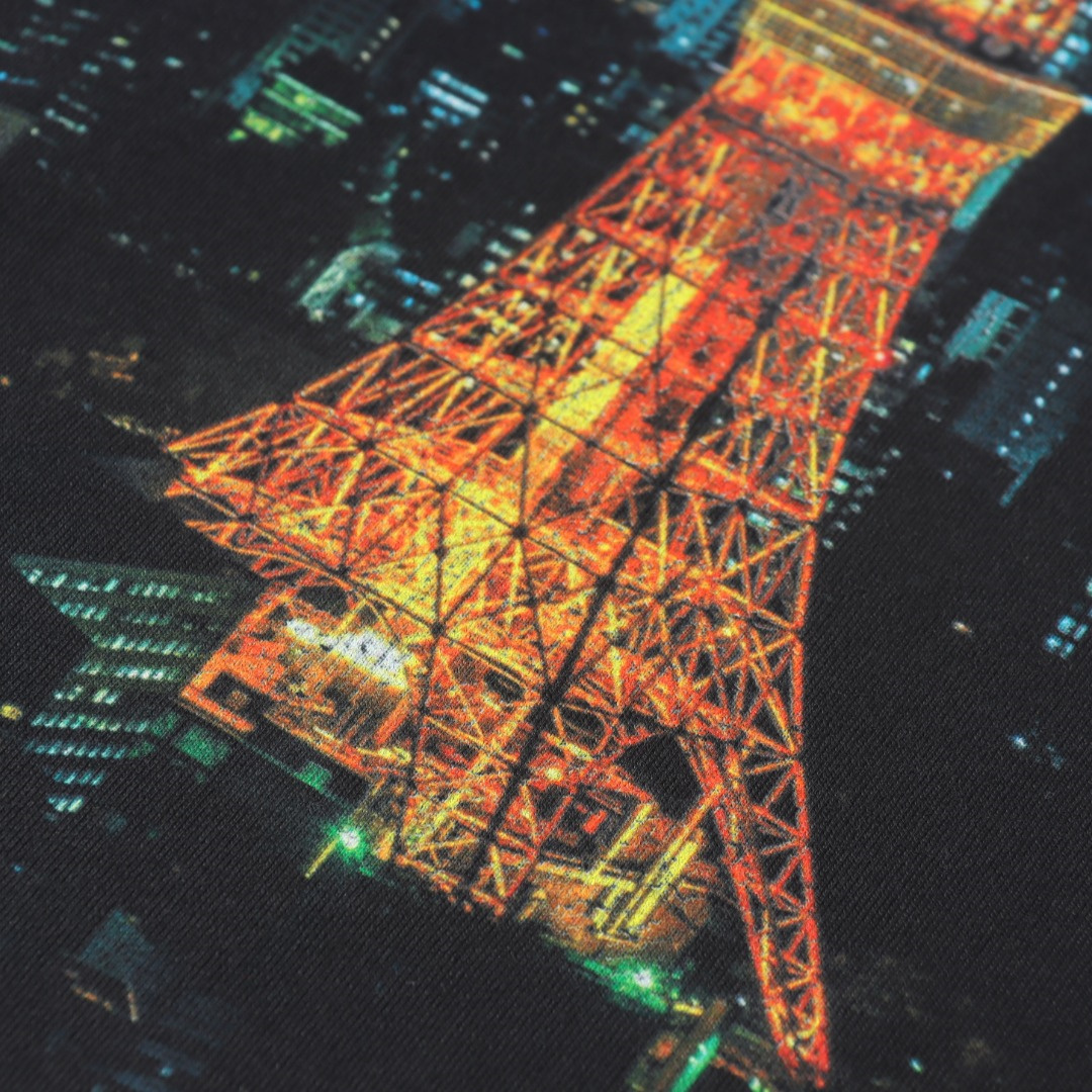 定織定染240g新疆長絨棉,以色列進口7色康麗印花機直噴,由於是夜景所以修圖非常繁雜,外貿大廠代加工,做工走線完美無瑕