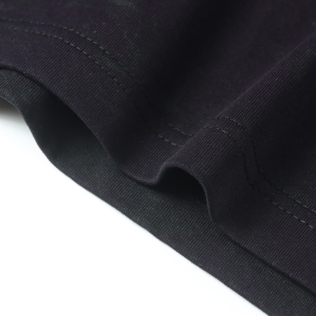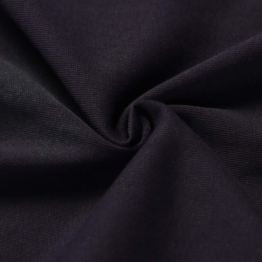定織定染240g長絨棉,黑色的面料經過特殊定染,正面呈現黑紫色反面呈現黑色,絲網菲林印花,手工潑墨,外貿大廠代加工,做工走線完美無瑕