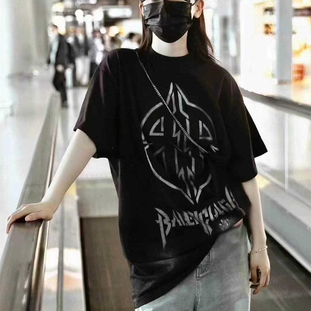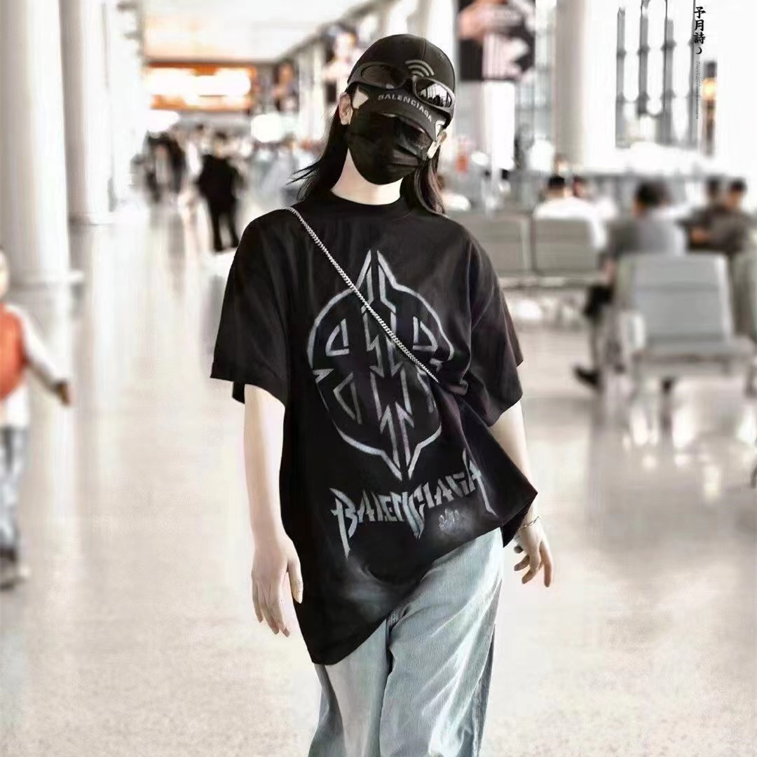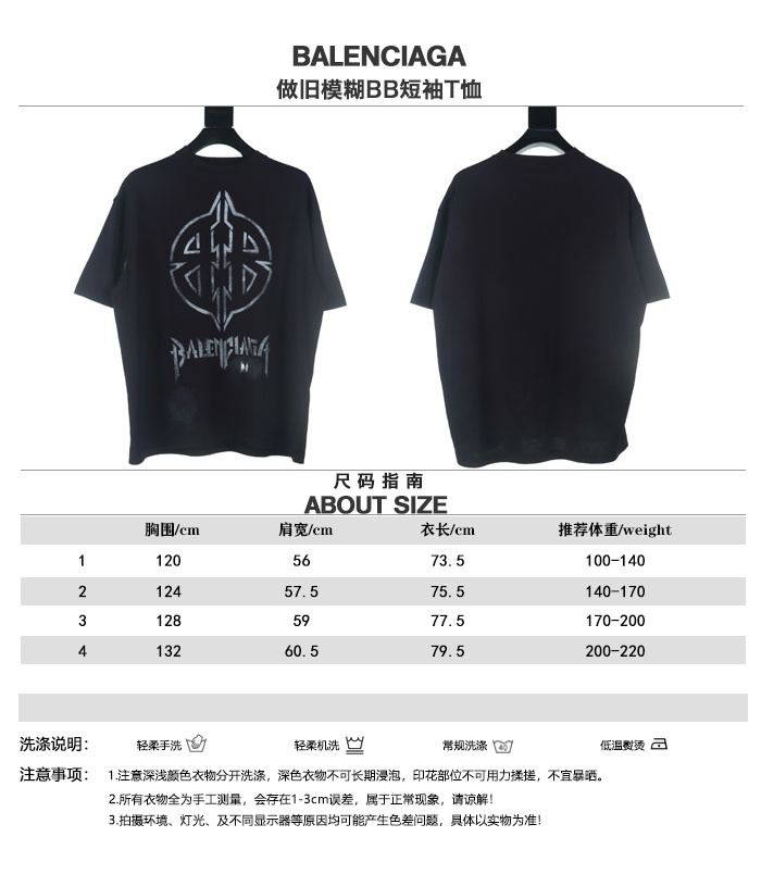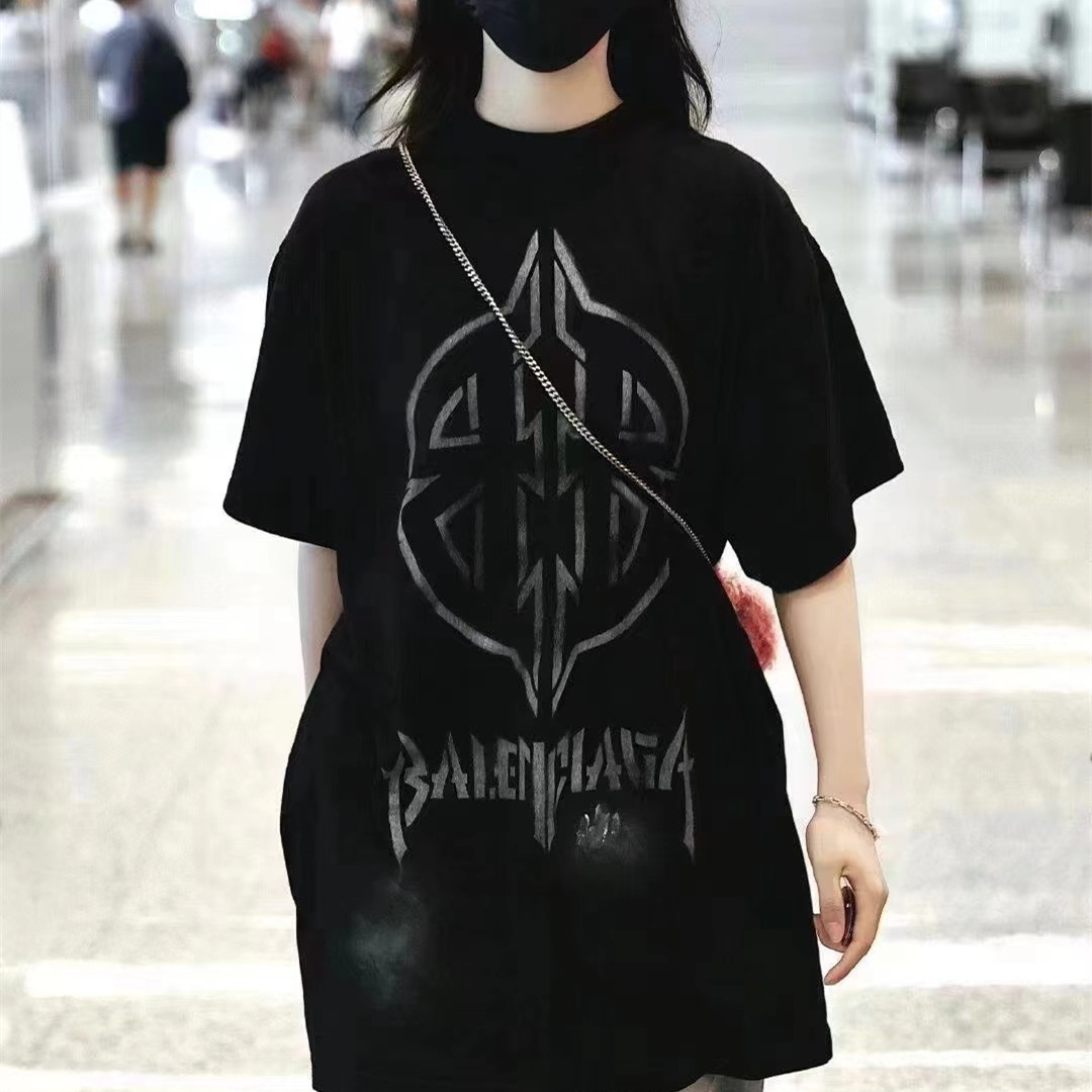 Balenciaga巴黎世家24新款做舊模糊BB短袖T恤