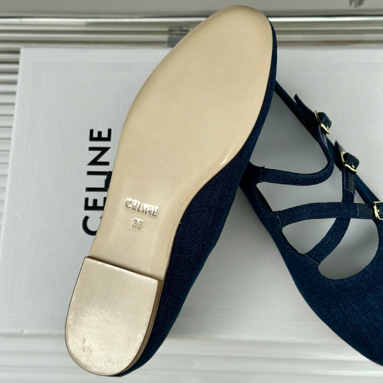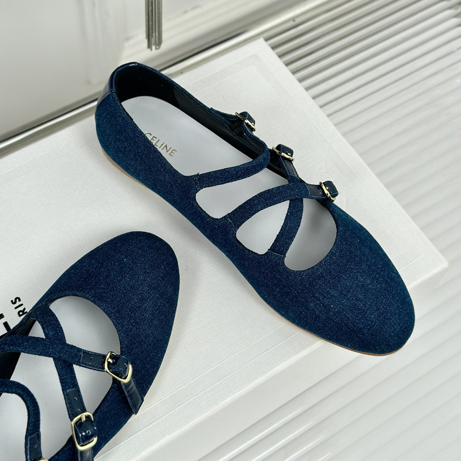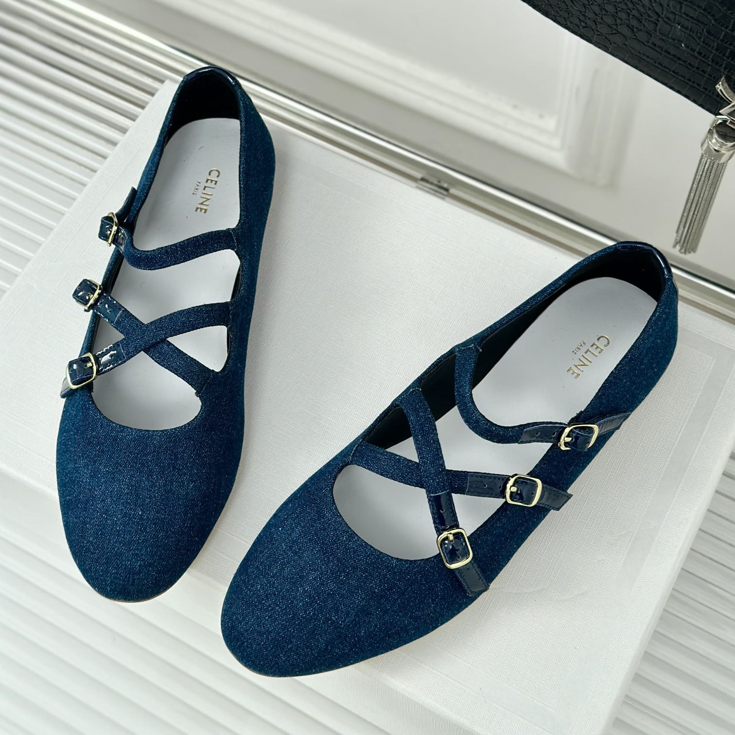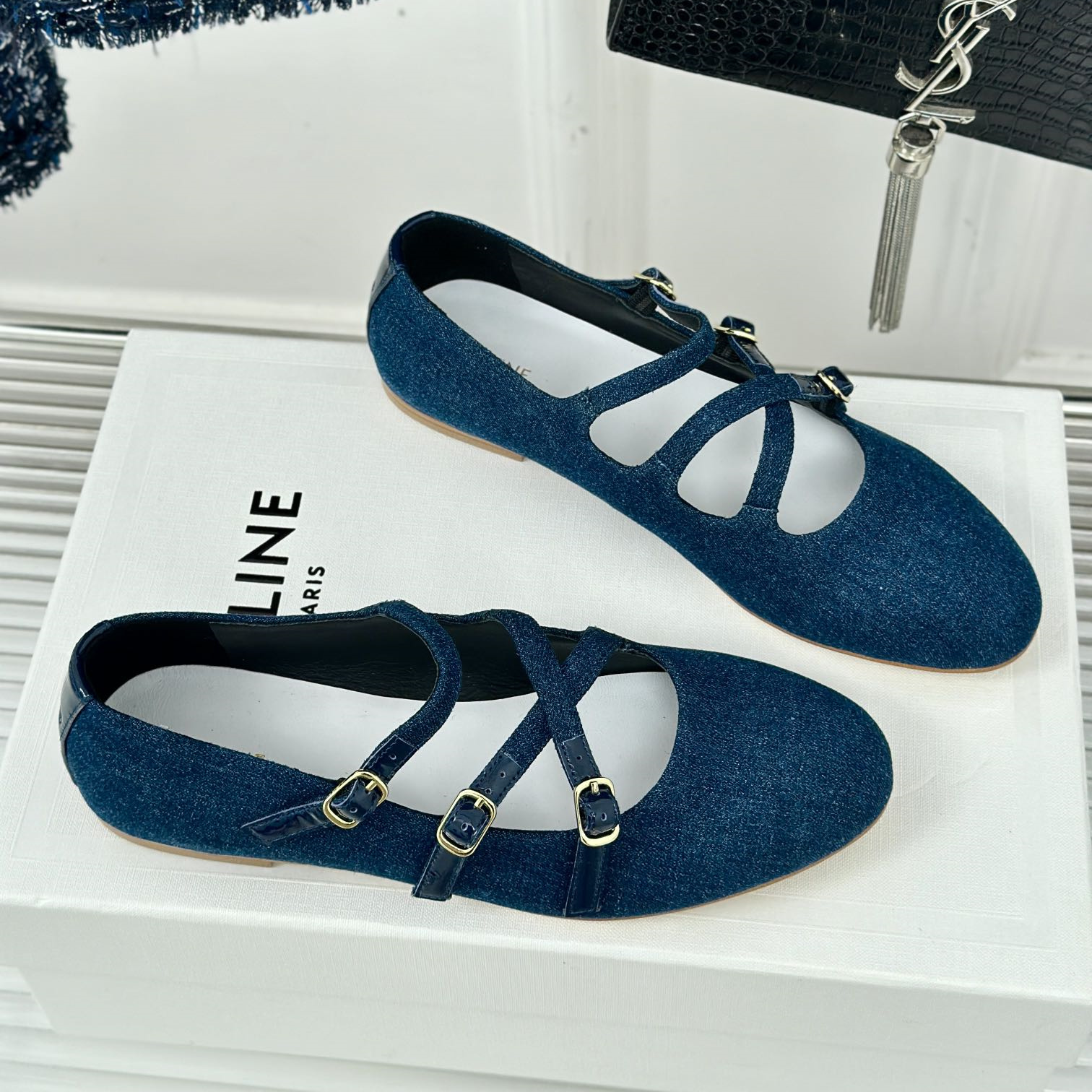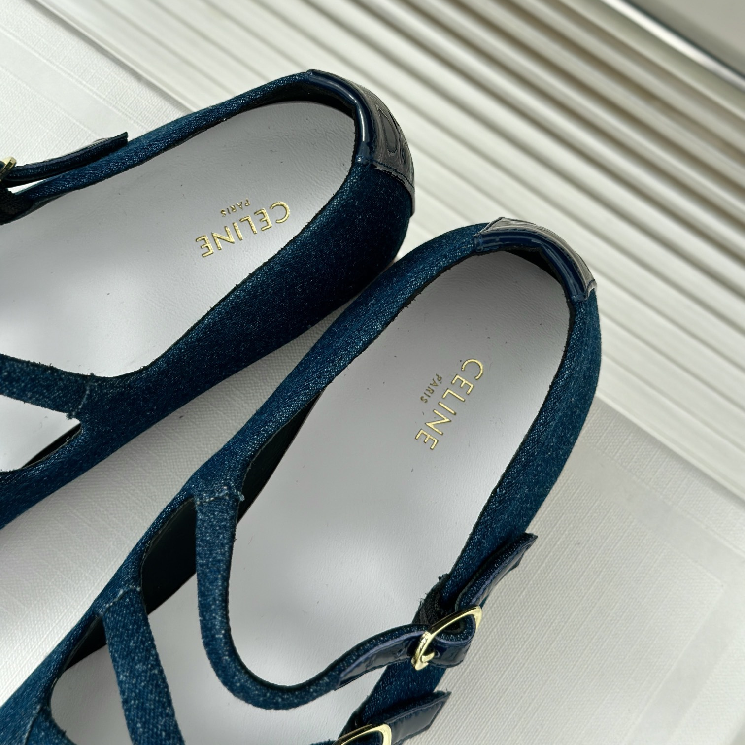 高仿Celine*360194585塔扣瑪麗珍單鞋水洗丹寧免檢版