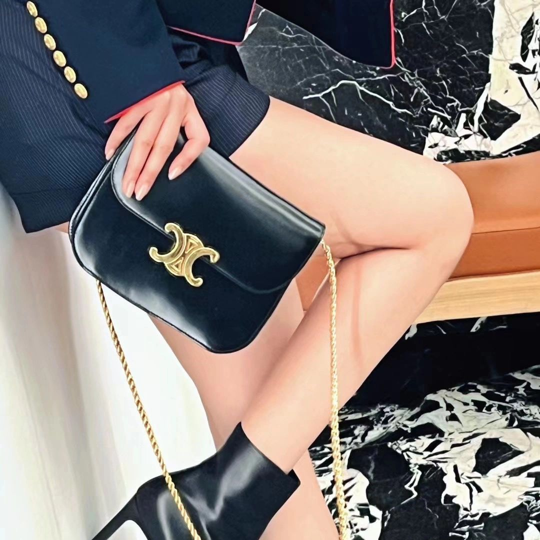 凱旋門真的高貴,經典黑金在原來的鎖扣上添加了 首字母 凱旋門扣.完完全全的巴黎血液註入Triomphe磁扣.外層牛皮革與羊皮革襯裏 .斜挎和肩背 整個包包的感覺很輕盈休閑柔軟舒服.