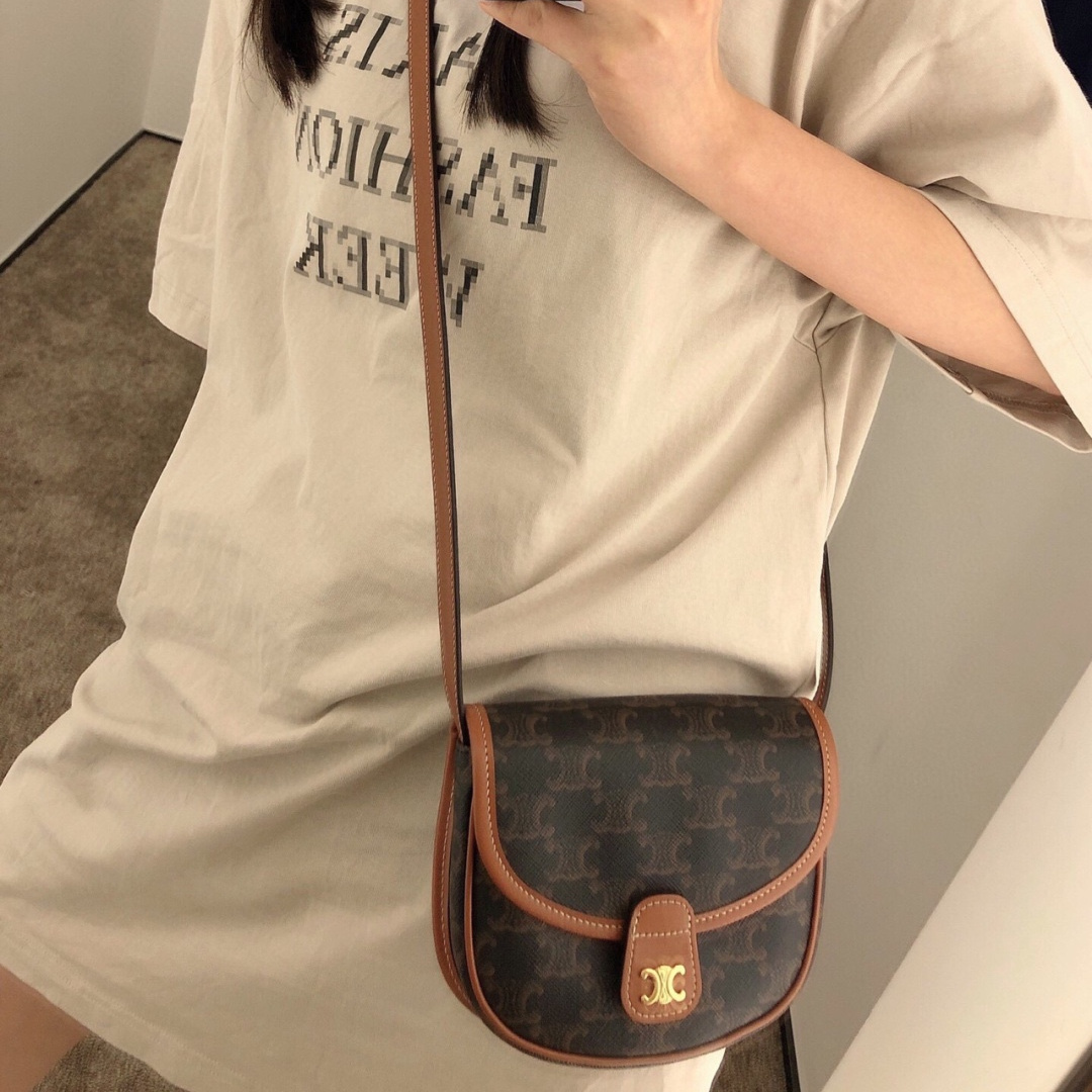 高仿Celine*TriompheCanvas系列Mini袋196702棕免檢版