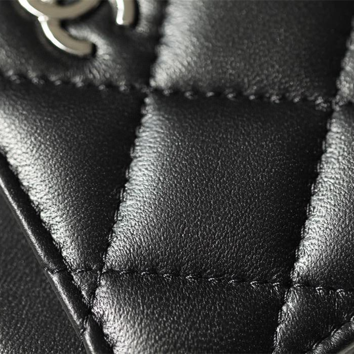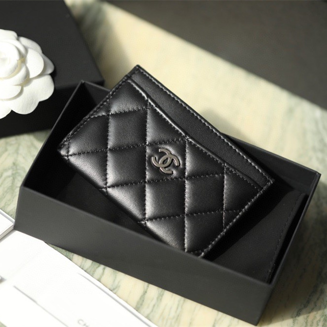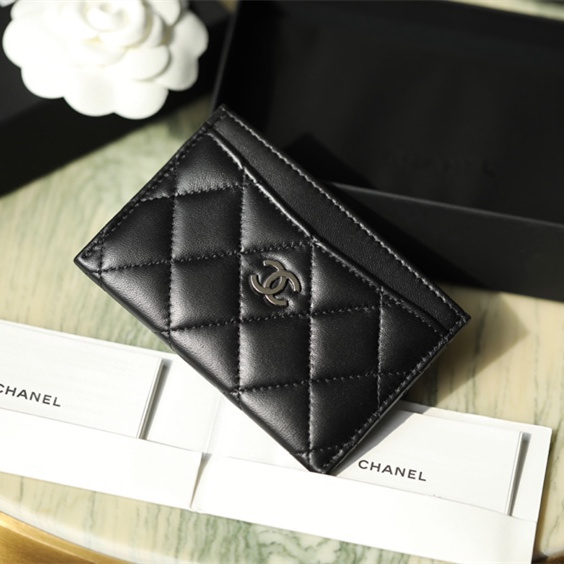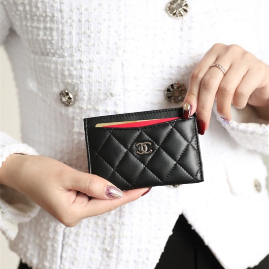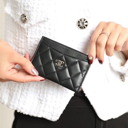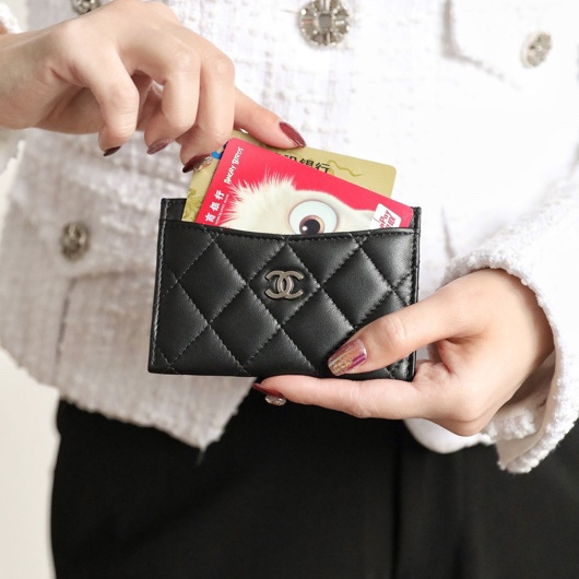 高仿Chanel卡套經典款小羊皮黑銀免檢版