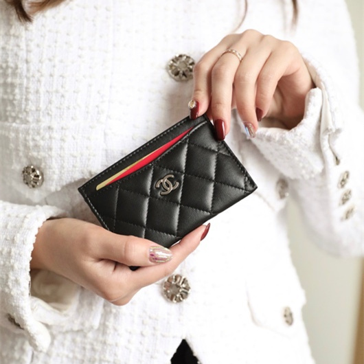 高仿Chanel卡套系列全新推出以小羊皮材質打造,整體包身結構扁形設計,超簡易設計搭配原廠五金銀色扣具,雙C標誌性LOGO,精度打磨拋光,色澤對版,長久使用不掉色不易氧化.精選同步原廠一致的小羊皮覆蓋包身,高仿香奈兒卡夾精益求精確保材質外觀做到百分之99相同.