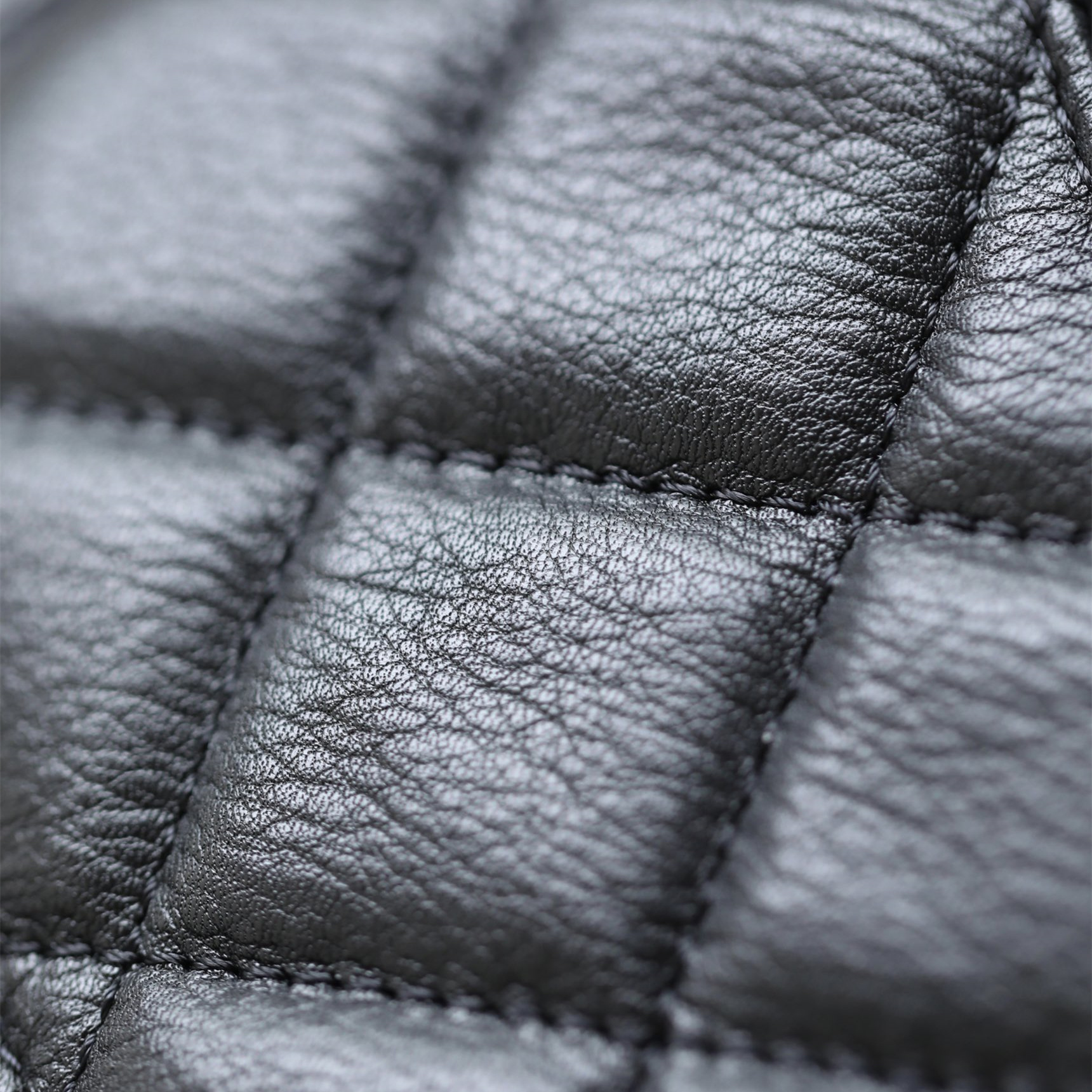 此次原單Chanel雙肩包是沿用到正品獨家渠道購入摔紋小牛皮材質,肉眼可見的手掌紋,紋路錯亂感十足,而且牛皮質的質地手感經過工藝處理後,光澤度呈現啞光,與原版一致完全無誤差.菱格衍縫線的處理標準,每一處菱格小香包包高仿都是通過3D打印還原.