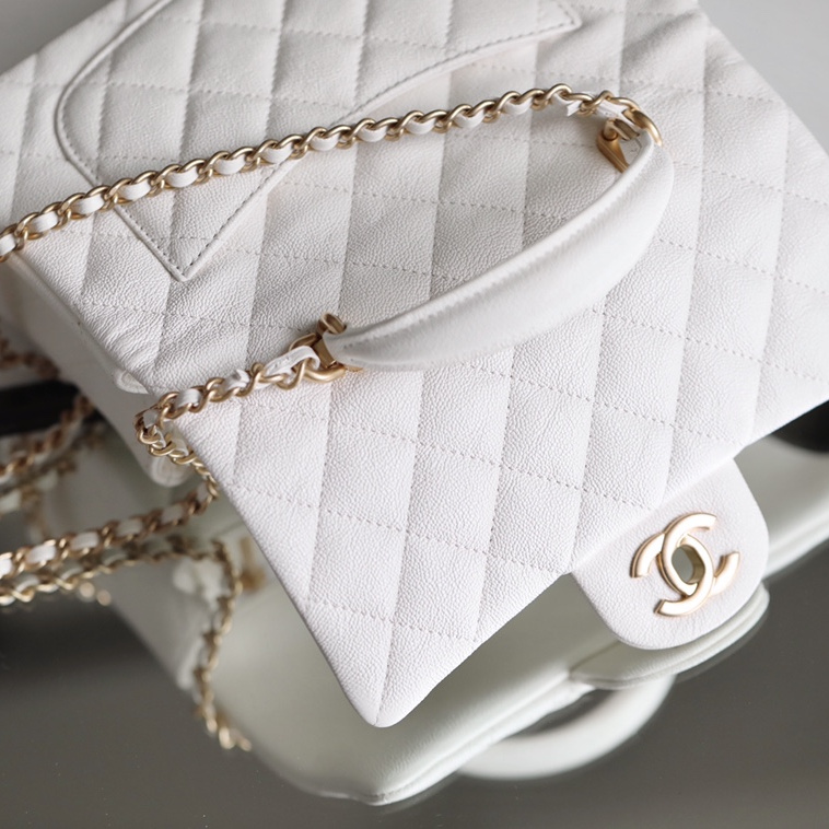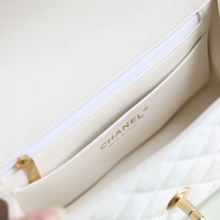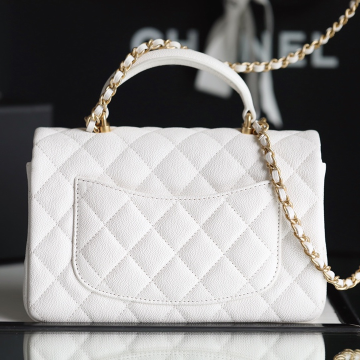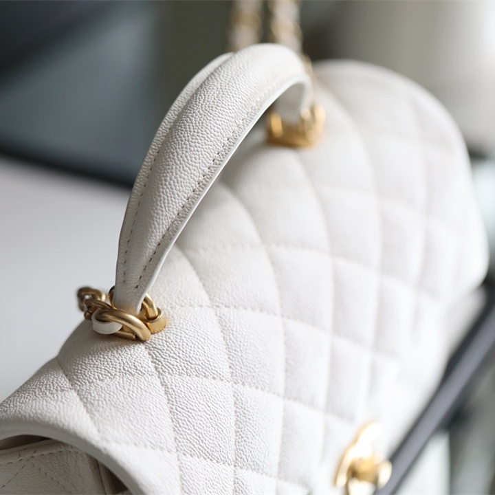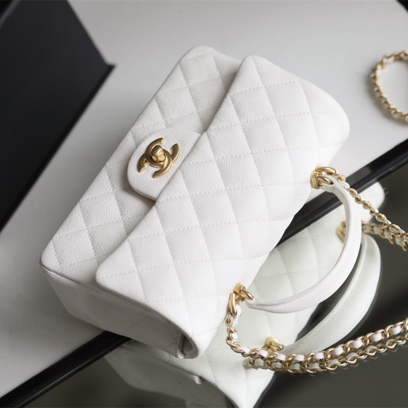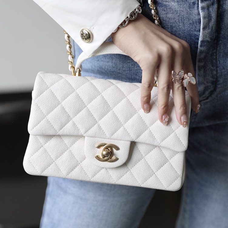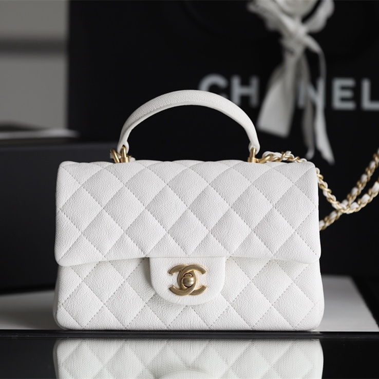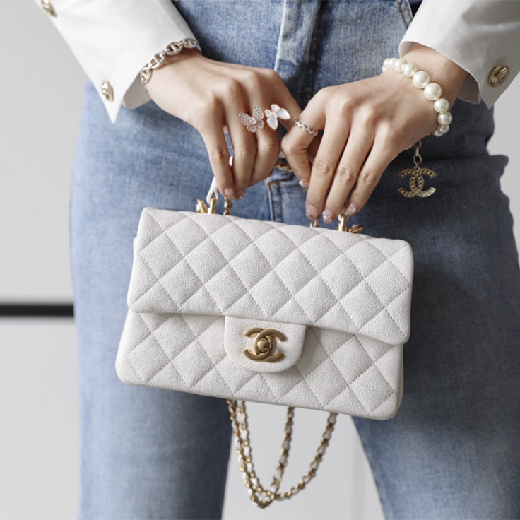 高仿Chanel官網全新回貨了2021年春夏系列款式,這一隻純白色的手柄口蓋包是在眾多經典款式中脫穎而出的包款之一,其中具有亮點的是在口蓋包增加了手柄,在日常穿搭的過程中能夠手提也能夠符合單肩或者斜跨.加上Mini的包身結構輕便輕巧.