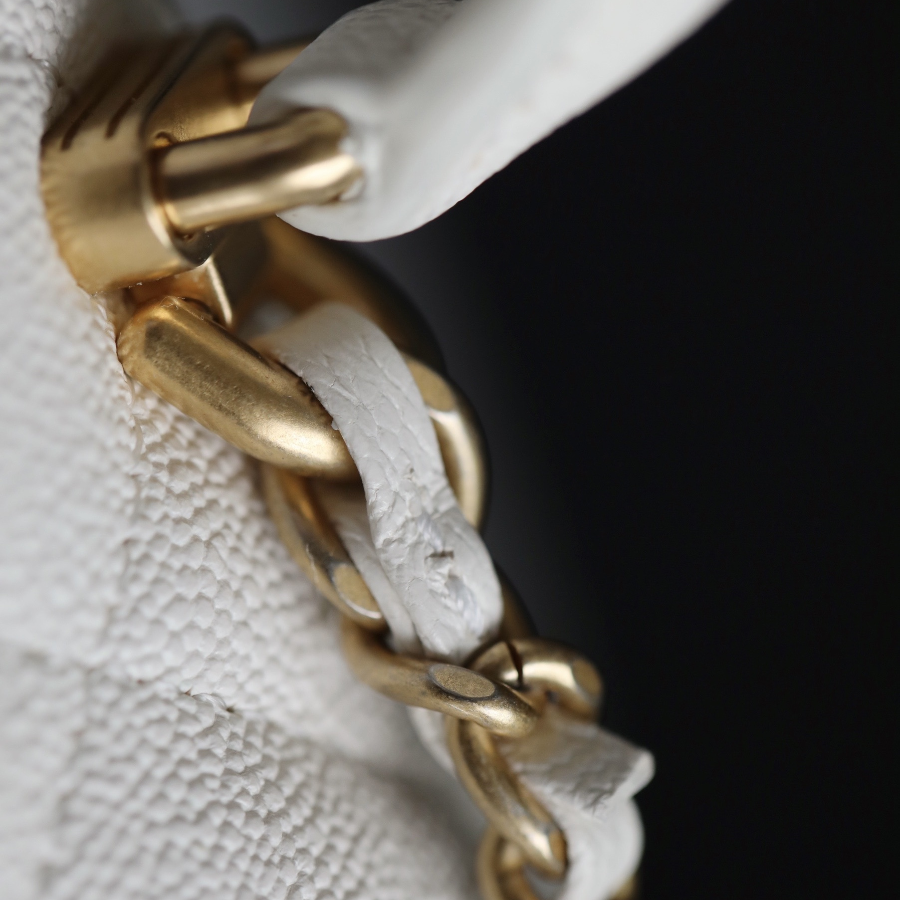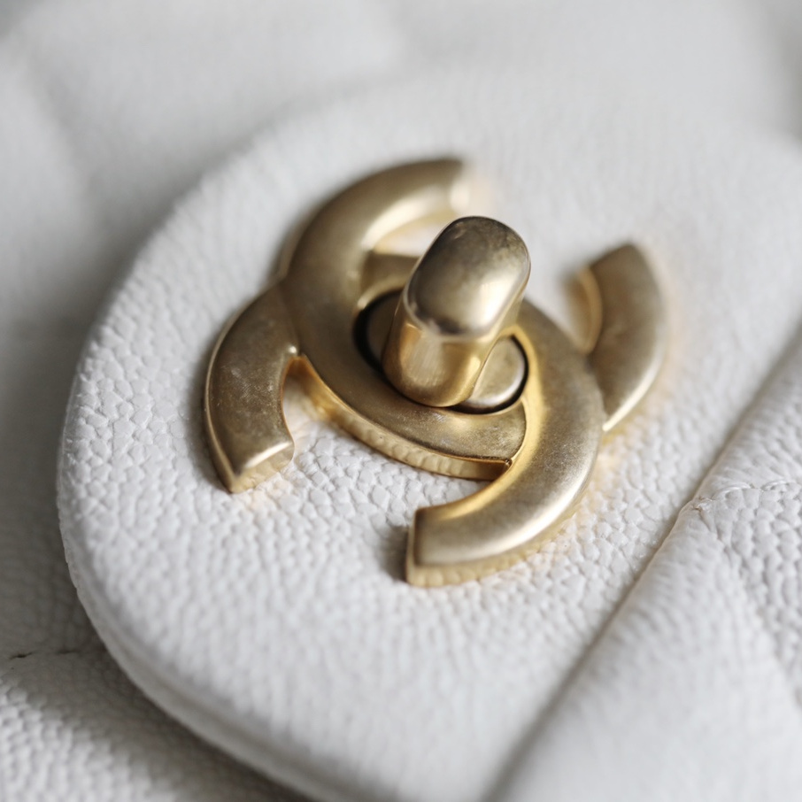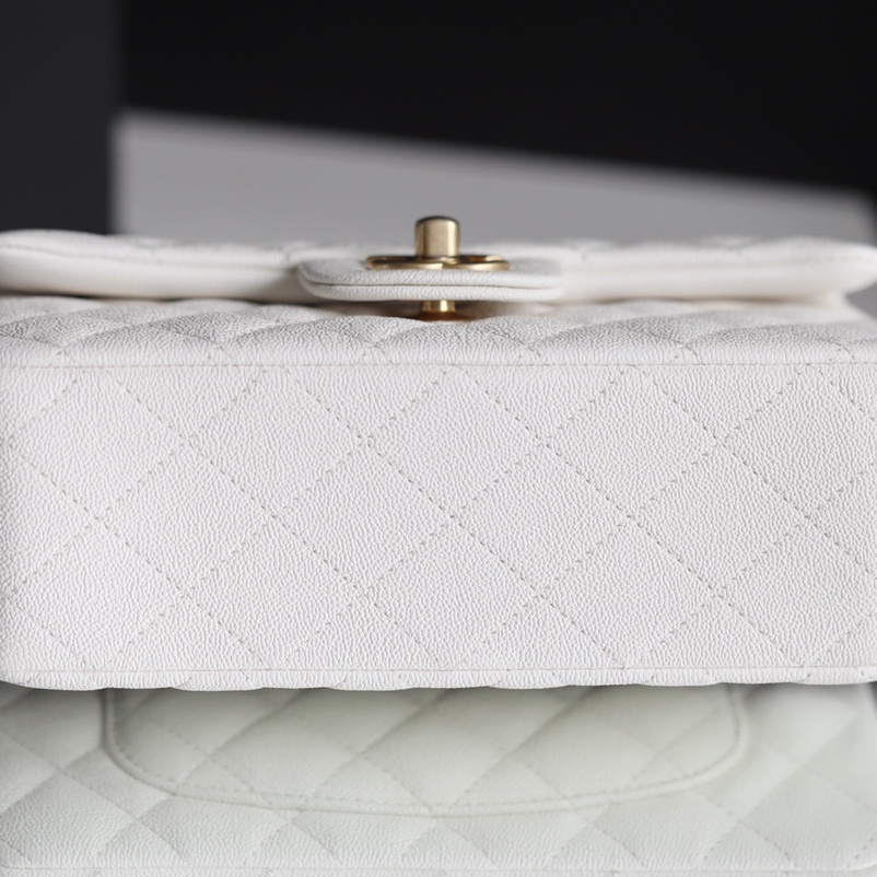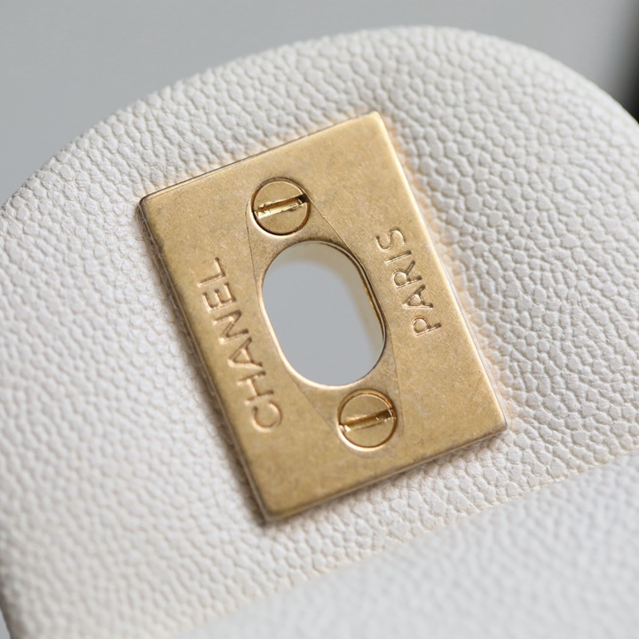 並且針對復原的細節,高仿Chanel包包使用了與原裝正品一致的Incas水洗胎紋小牛皮材質專屬打造的包身結構.其皮革的質感較為硬質,觸摸的手感依舊絲滑流暢.紋路突顯細膩感加上白色的皮革附有明顯的硬朗風格.菱格衍縫線標誌性設計,原單復刻包包全方位對版對位.