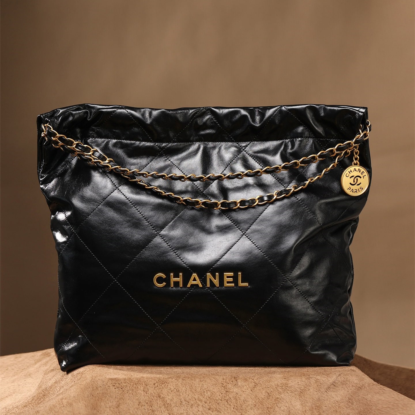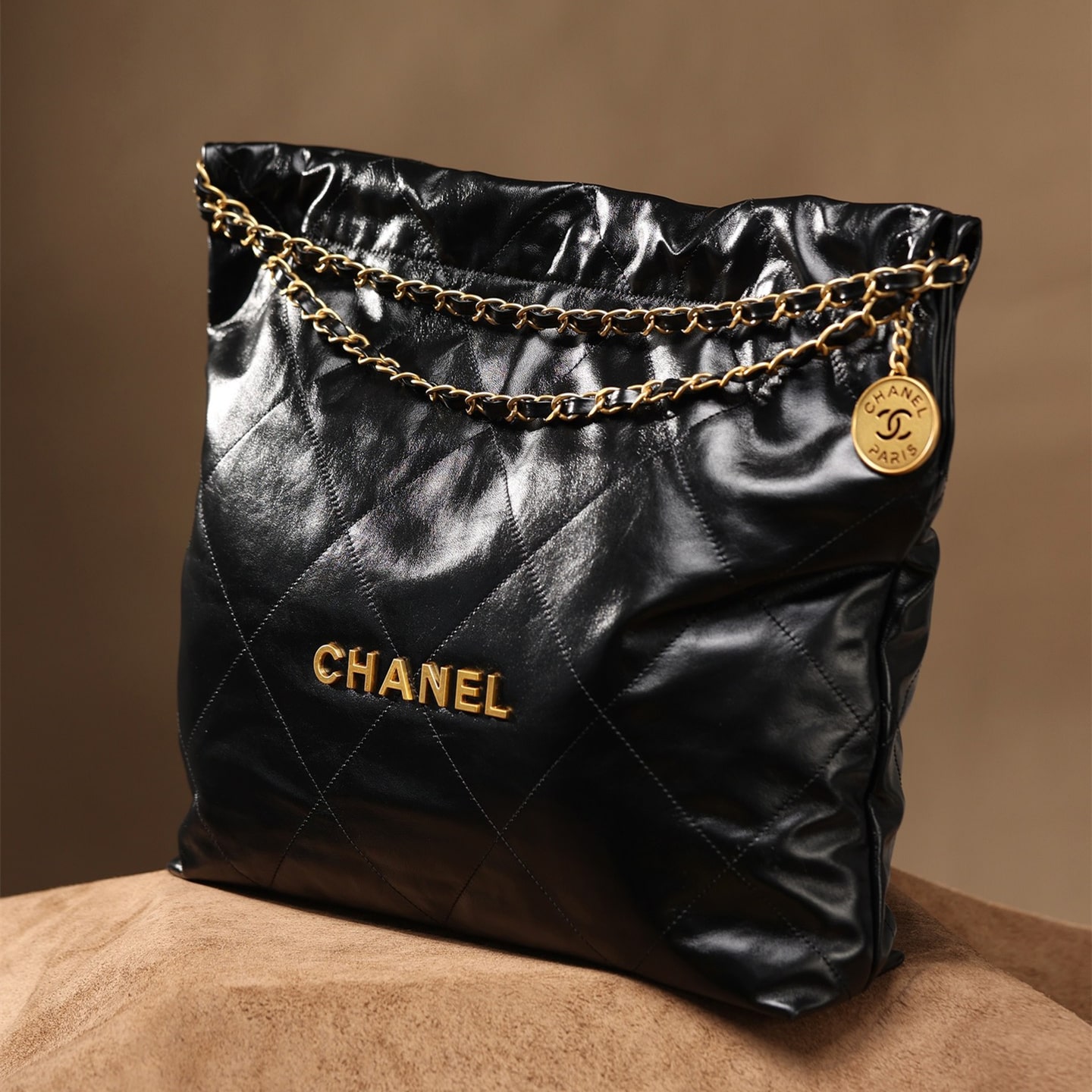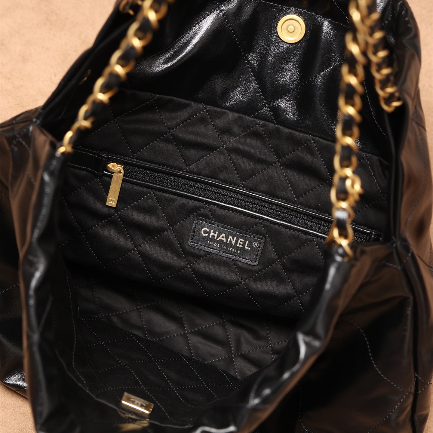 高仿Chanel沙灘袋早春新款黑色/金扣M免檢版