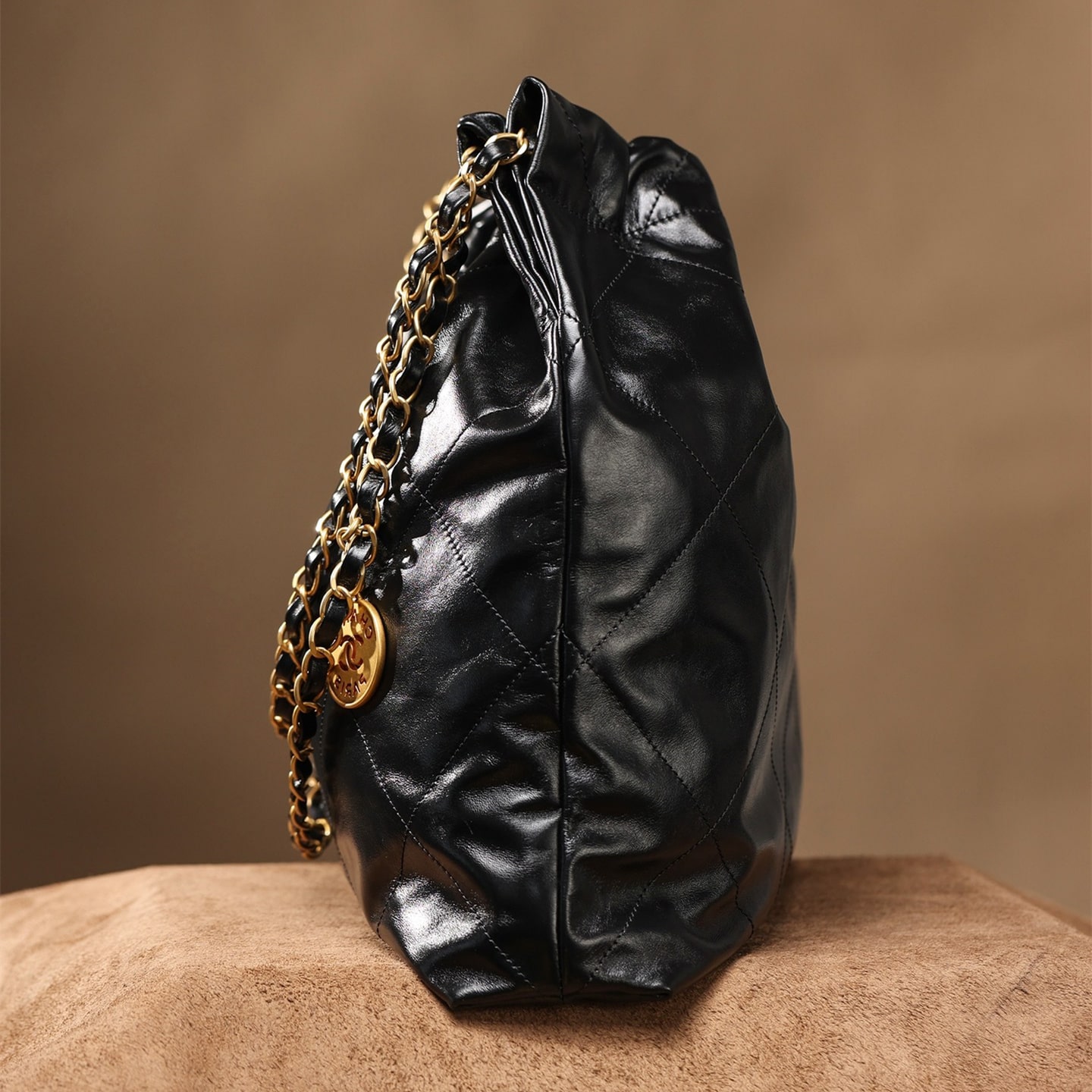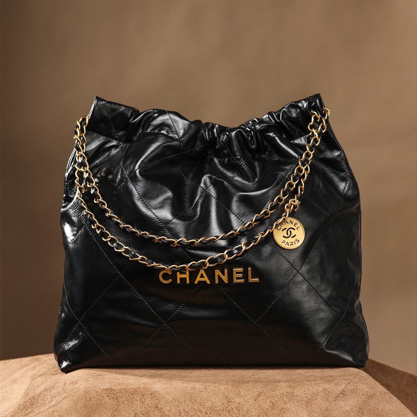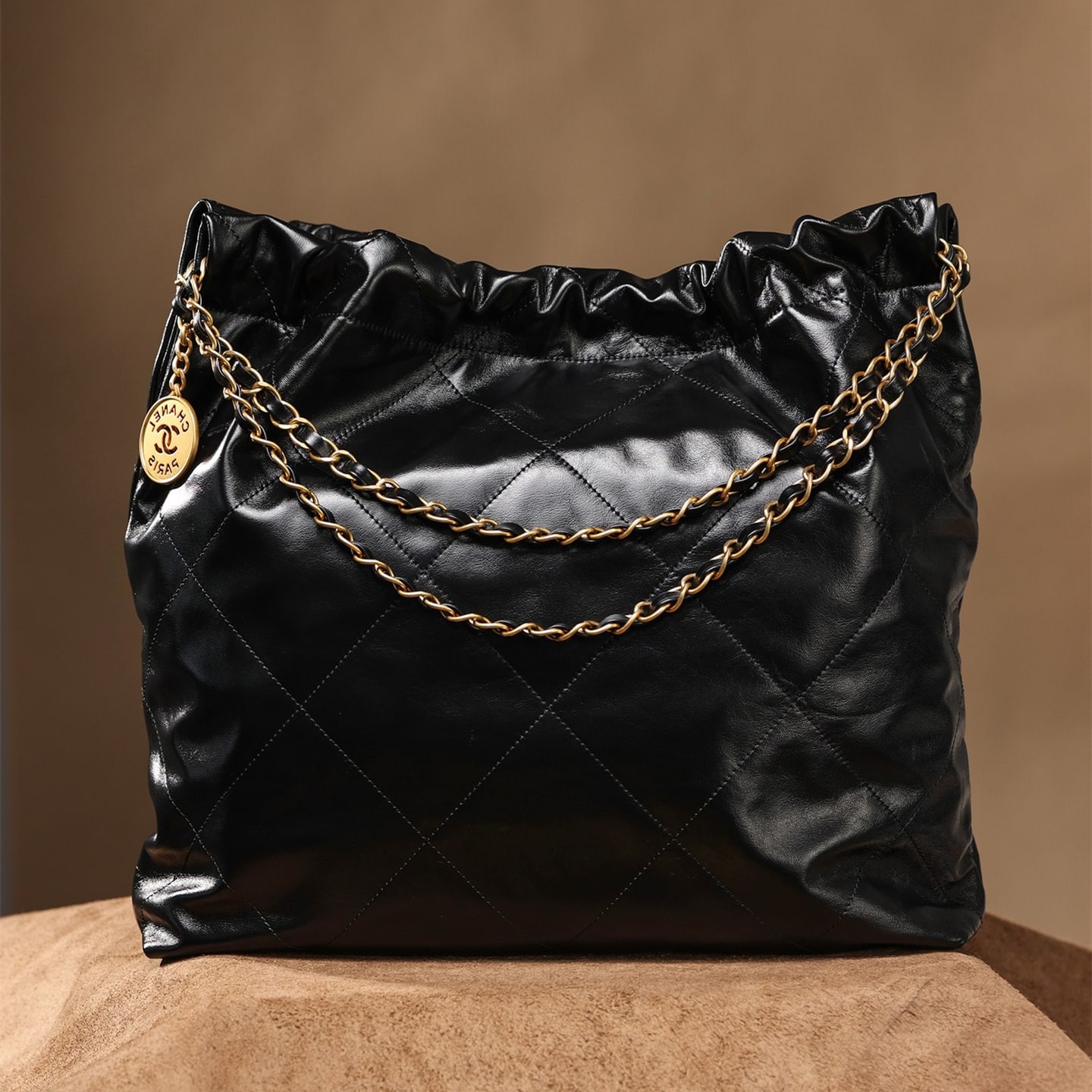 高仿Chanel沙灘袋早春新款黑色/金扣M免檢版