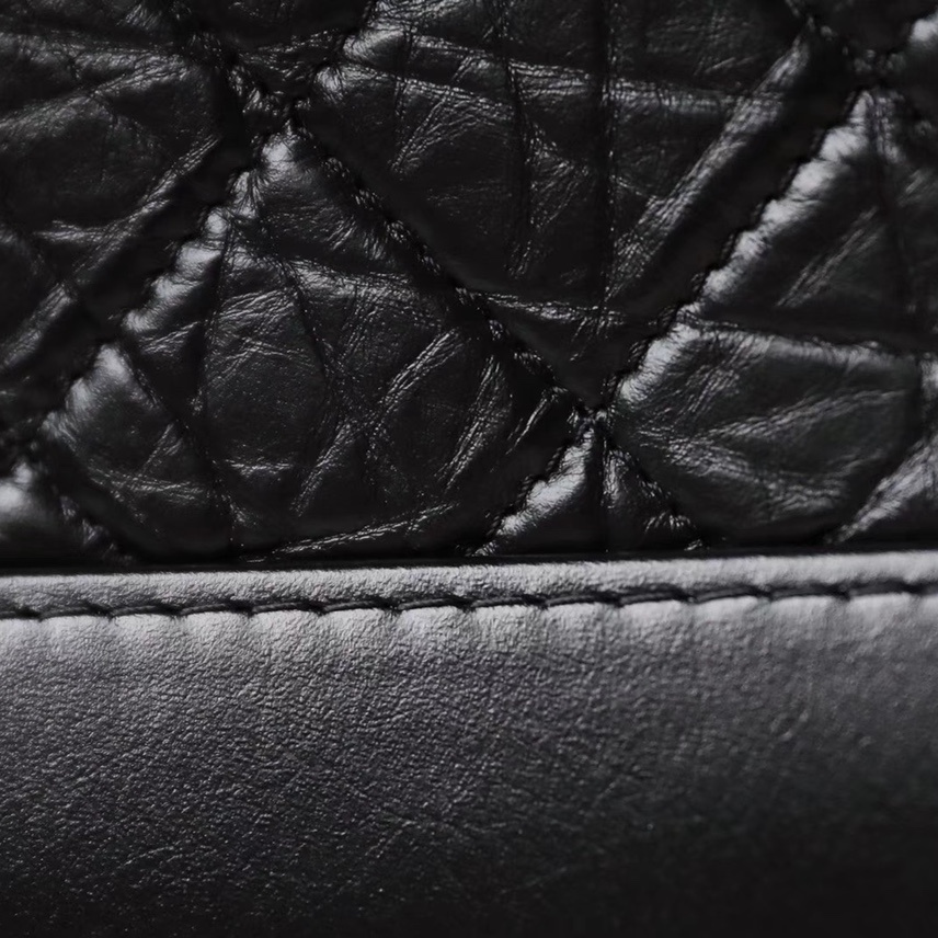 外層黑色的皮質是Gaiera底皮,這種皮革不僅擁有良好的底質手感,耐磨耐剮蹭的質地才是符合原裝正品源材質.菱格衍縫線打造出的方格設計,紋理中呈現出錯亂的視覺感.小香流浪包高仿款式看似較為破裂的質感,但實際上這才是達到正品級別的品質要求.