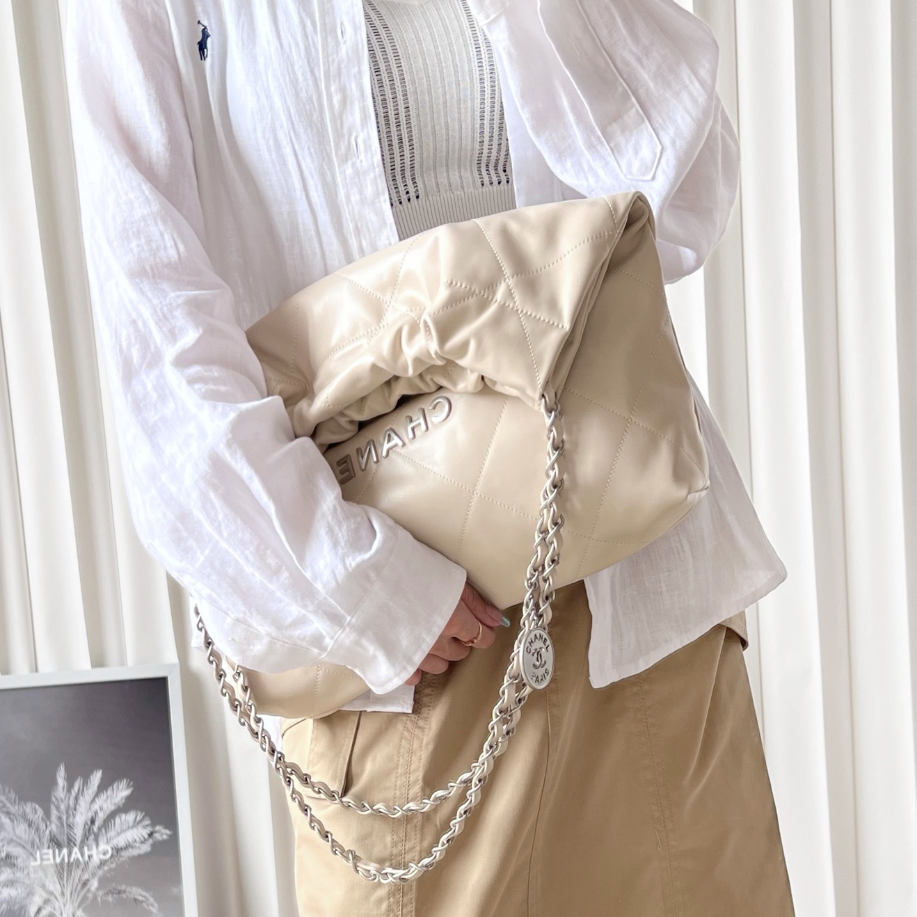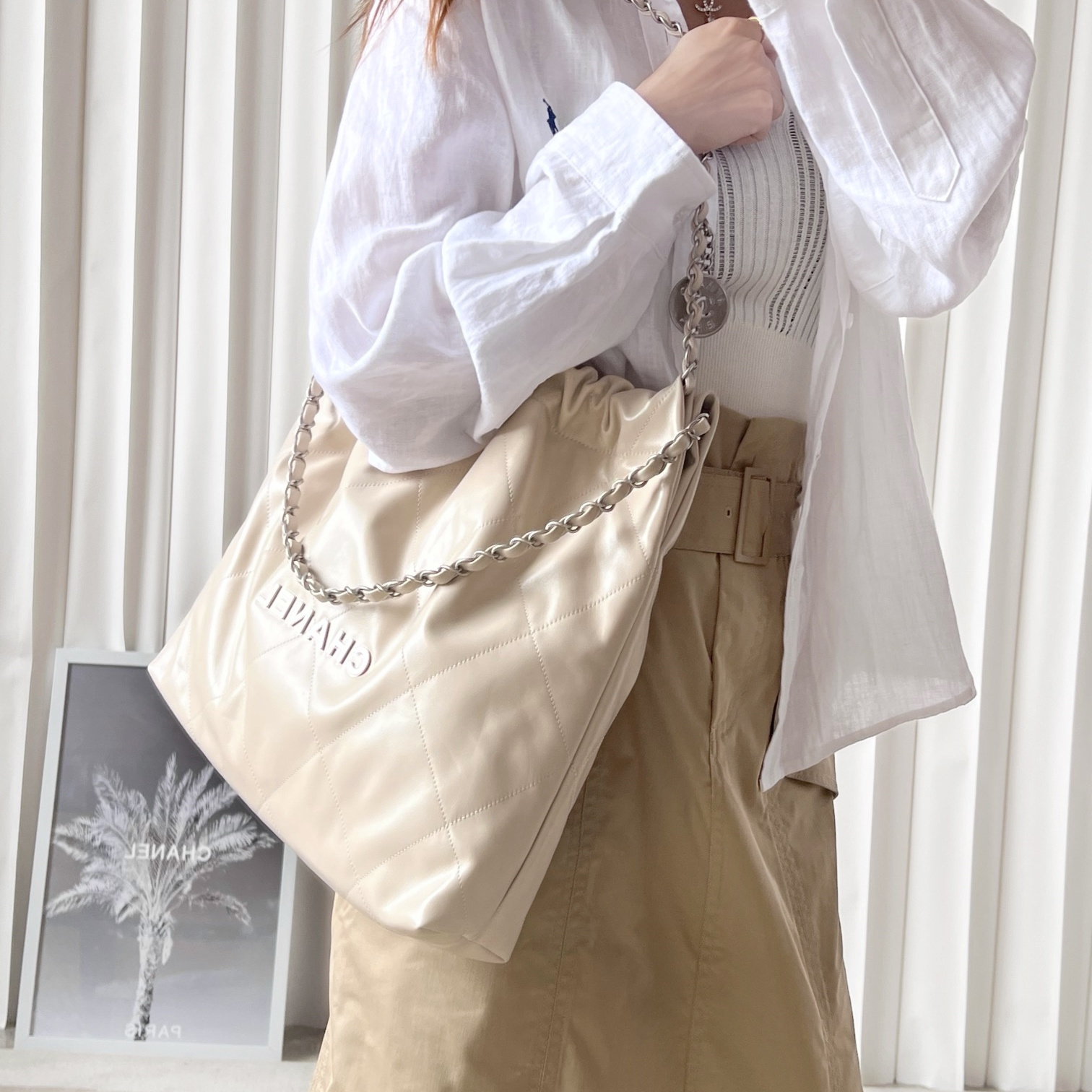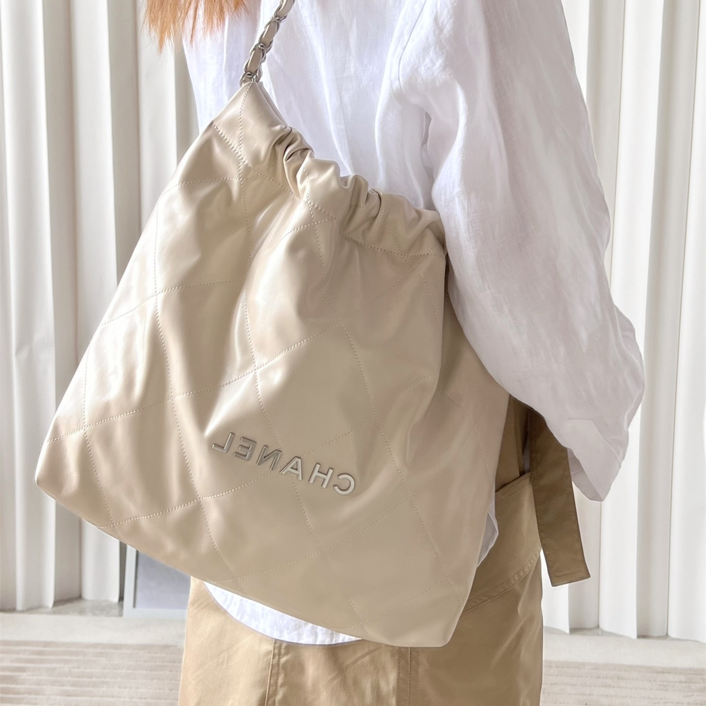 高仿Chanel全新推出熱門款式經典購物袋,傳統的包包配色是以黑金款為主,這一隻奶茶新配色一經推出受到眾多女士的愛戴.整個Chanel復刻包在還原程度上十分完美.擁有無限接近原版的美譽.從品質上的要求到細節部分的處理均為高端工藝製作而成.