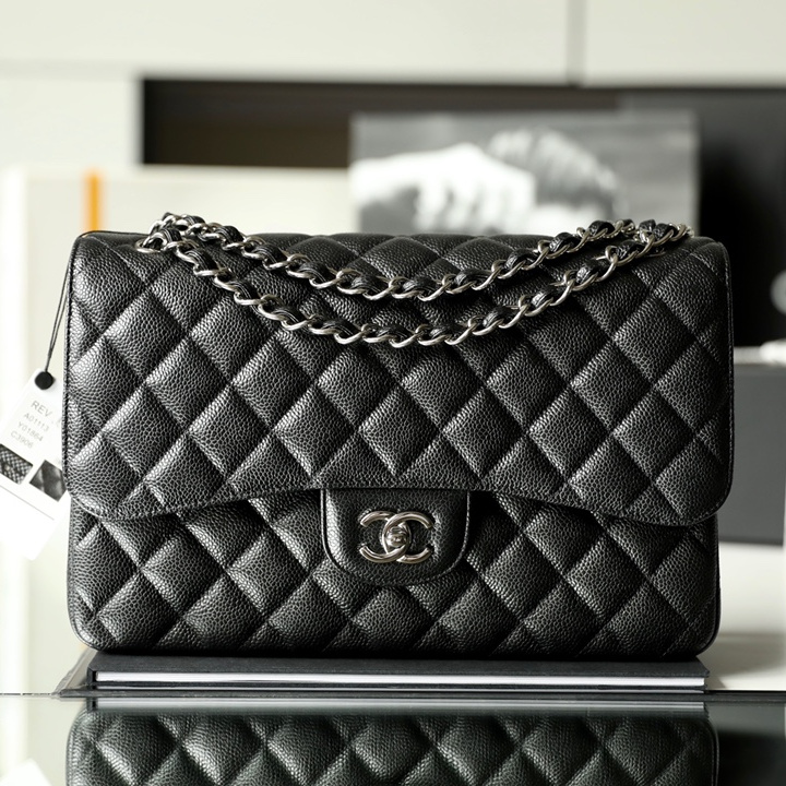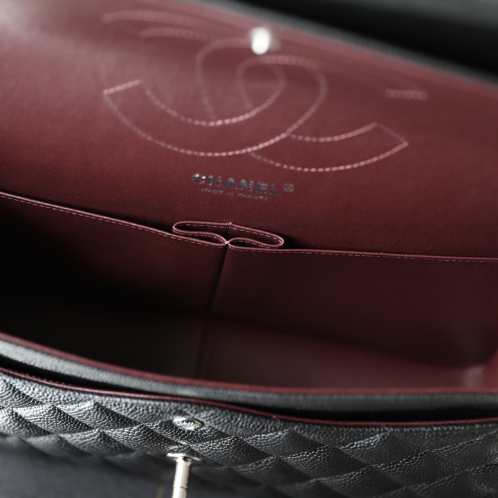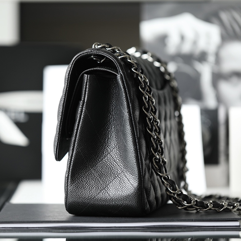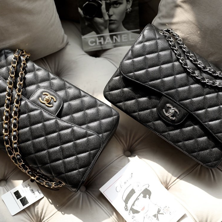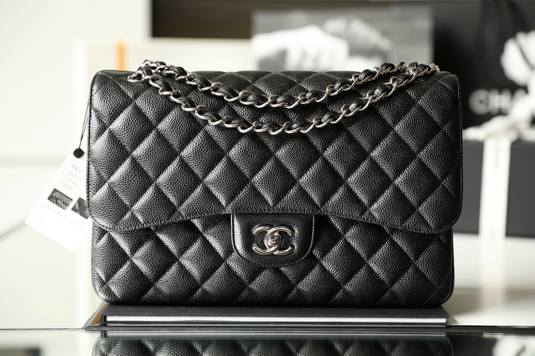 高仿Chanel經典款再次推出ClassicFlap系列大號版本,此前共推出了小號和中號,相對於大尺寸的型號能夠多一種參考,高仿Chanel官網也是根據原裝正品大小尺寸相繼復刻.除了規格的相同,本次對於大家比較期待的魚子醬牛皮革也是同等奉上,百分百使用與原版一致的真皮革材質打造.