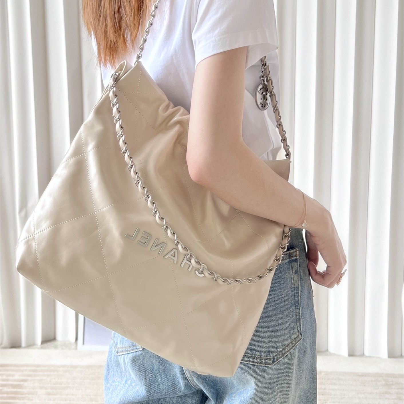 Chanel購物袋高仿免檢版本全新推出新配色,被譽為垃圾袋而著名的購物包是香奈兒官方主打的包款之一,其中在配色上的應用就多達6到7種均可選擇.此次復刻Chanel是通過原裝正品使用到奶茶配色進行1:1打造而成.經典的款式時尚且新穎的配色得到其中.