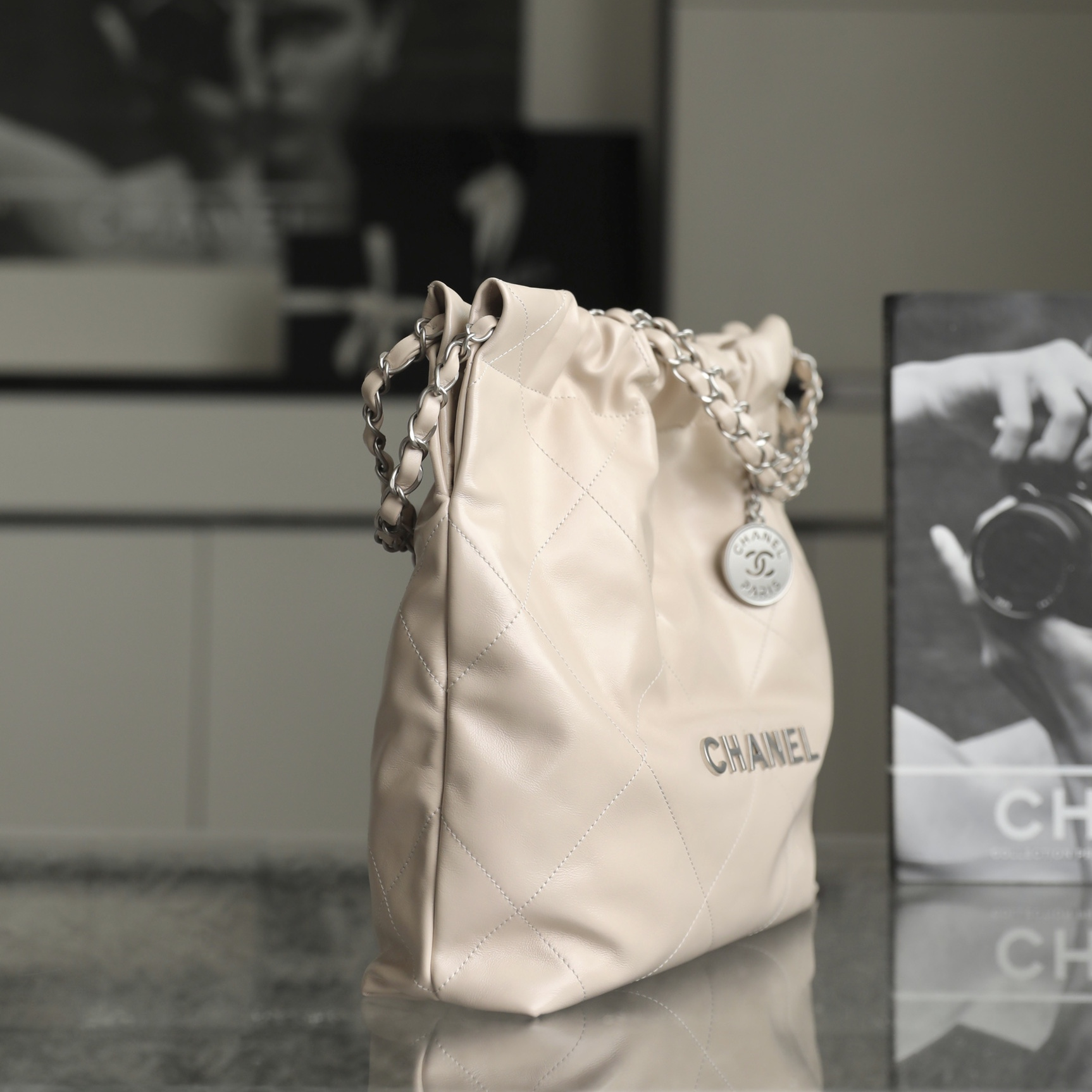 慵懶的包身結構,束口式的設計,搭配可收縮的皮穿鏈搭配起來,垃圾包的名稱就此誕生.正面部分高仿Chanel的實物LOGO英文,則是使用到原廠五金扣具,質感一流.整個包身所有配件百分百同步專櫃毫無任何差異.高仿包包香港獨家私人定製,只做高端版本復刻.