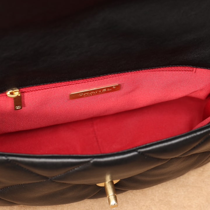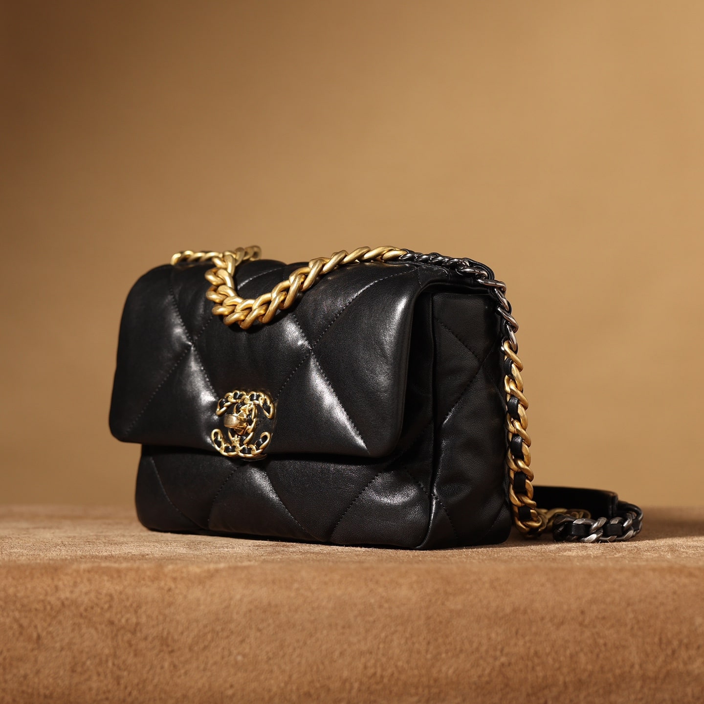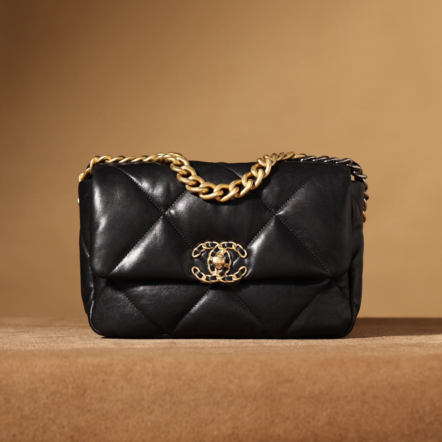 真正的天花闆品質白菜價拿全新無瑕疵品發貨都配全套原盒包裝送禮自用都可以,CHANEL香奈兒19Bag菱格紋鏈條手柄小羊皮口蓋包手提單肩斜挎包中號女款黑色,獨家渠道貨純原進口小羊皮+純銅做舊五金組裝的味道貨,配整套包裝,打開包可聞到小香的專櫃味道.