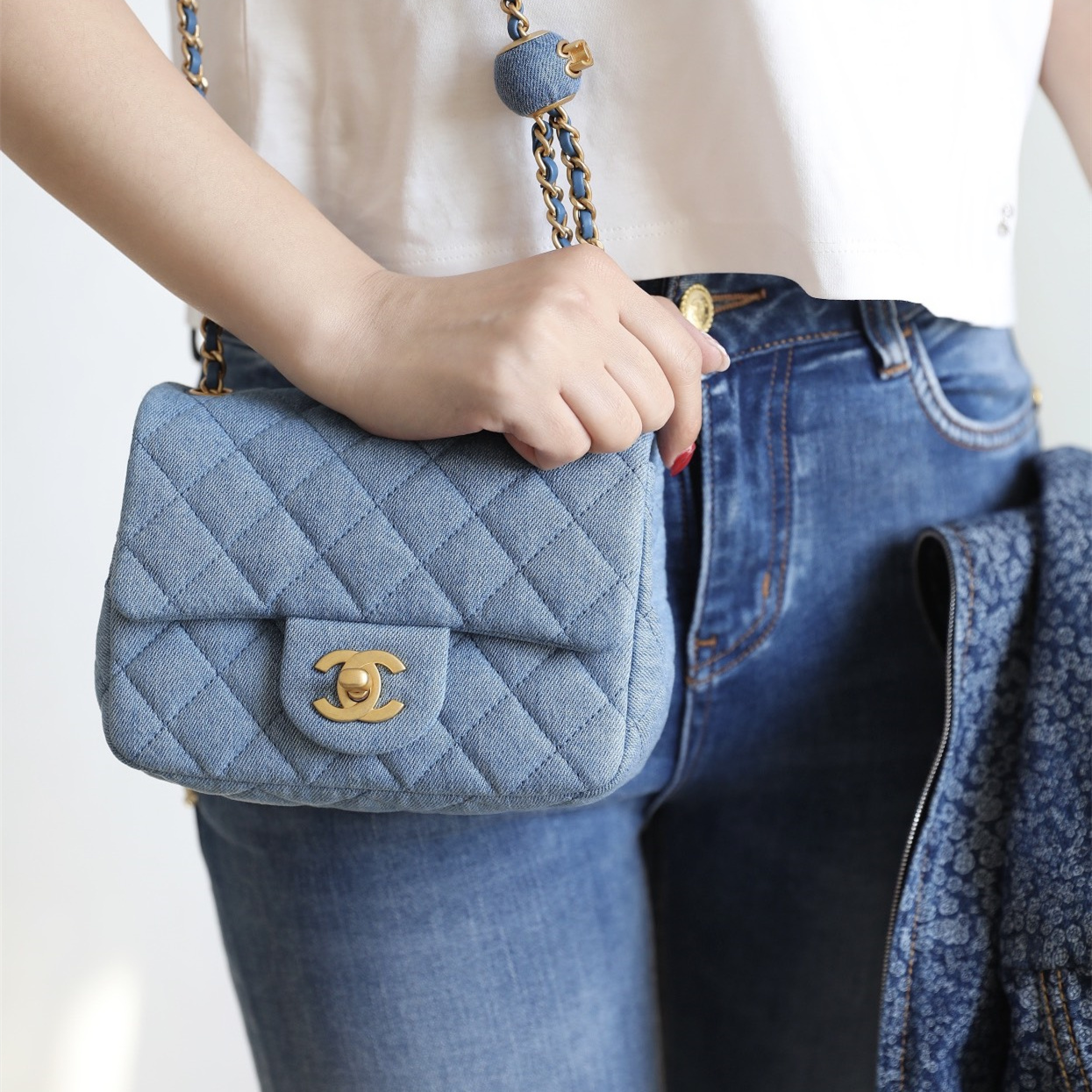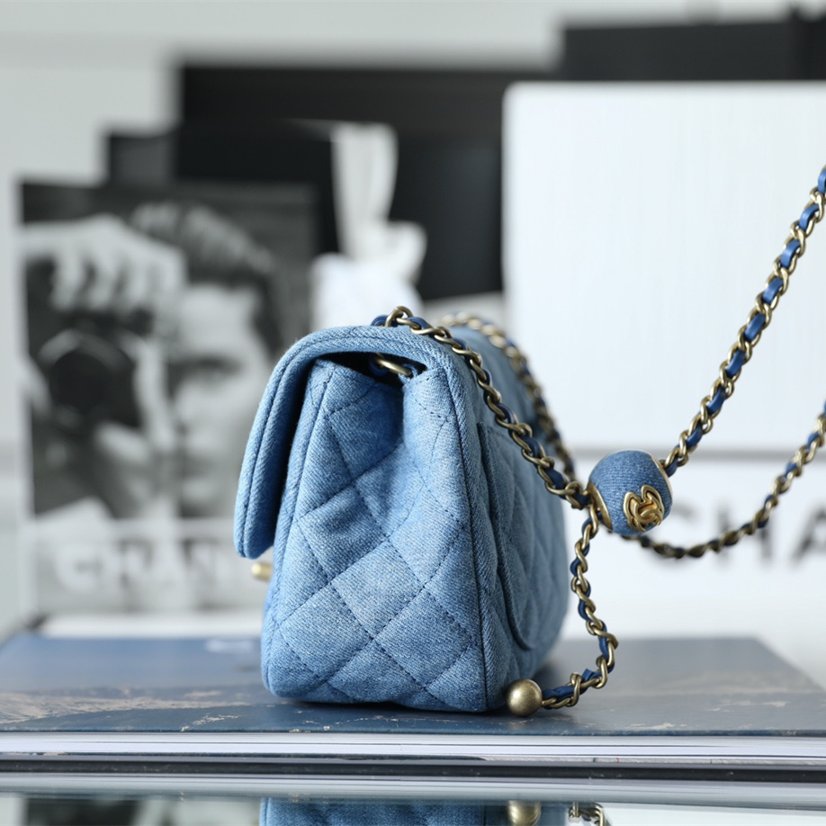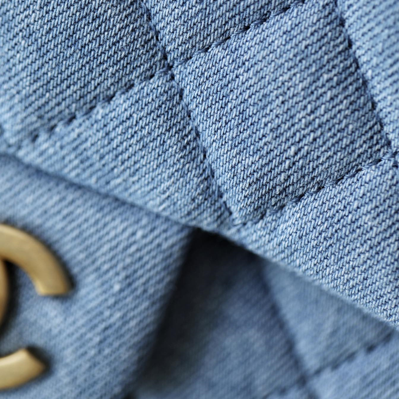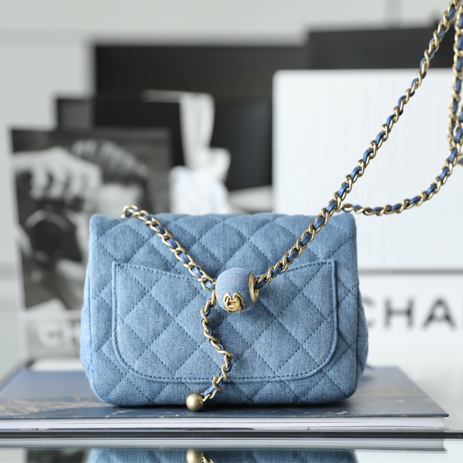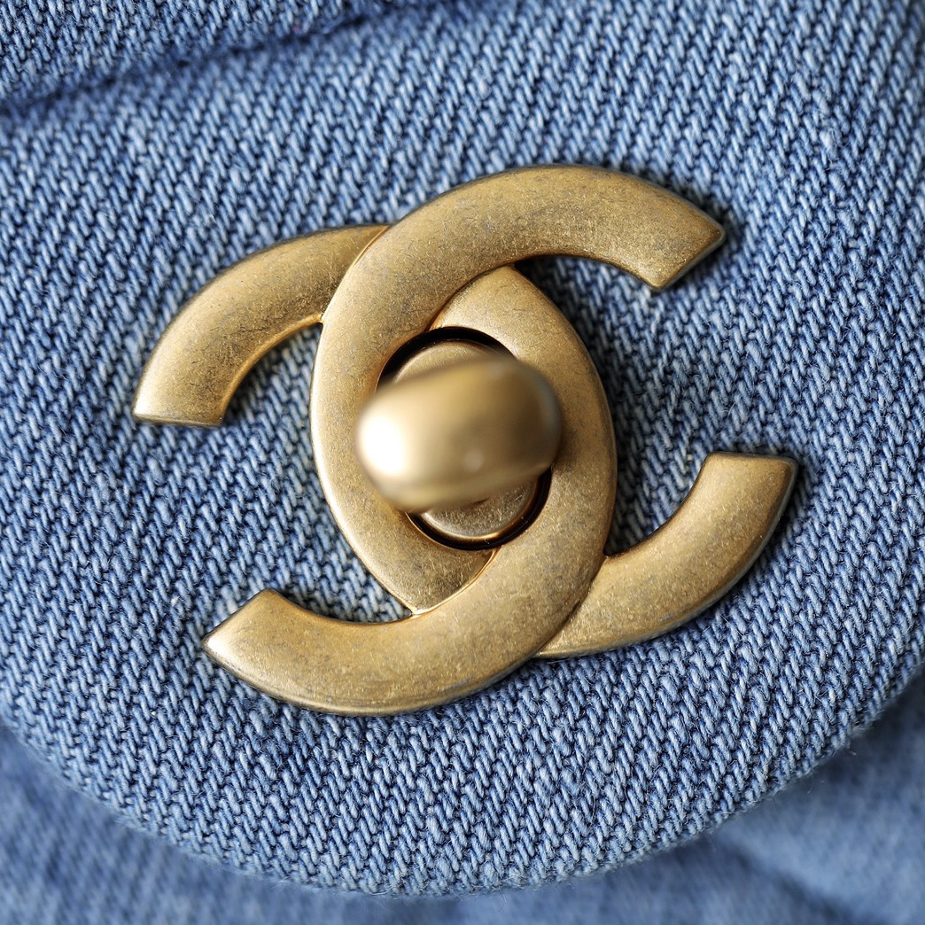 高仿Chanel高品質Denim牛仔金球包,原版開發專屬打造市面上獨家高端復刻,以傳統的口蓋包作為基礎設計,在材質上使用到水洗丹寧牛仔面料覆蓋包身.整個包型結構厚實感與質感同步在線.在手感上按壓包面外觀,立體感十足,邊角封邊無瑕疵,雙層純手法縫製而成可比對專櫃正品.