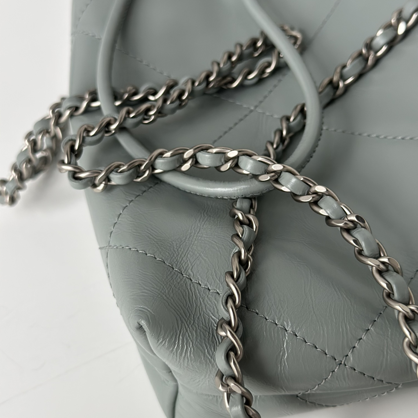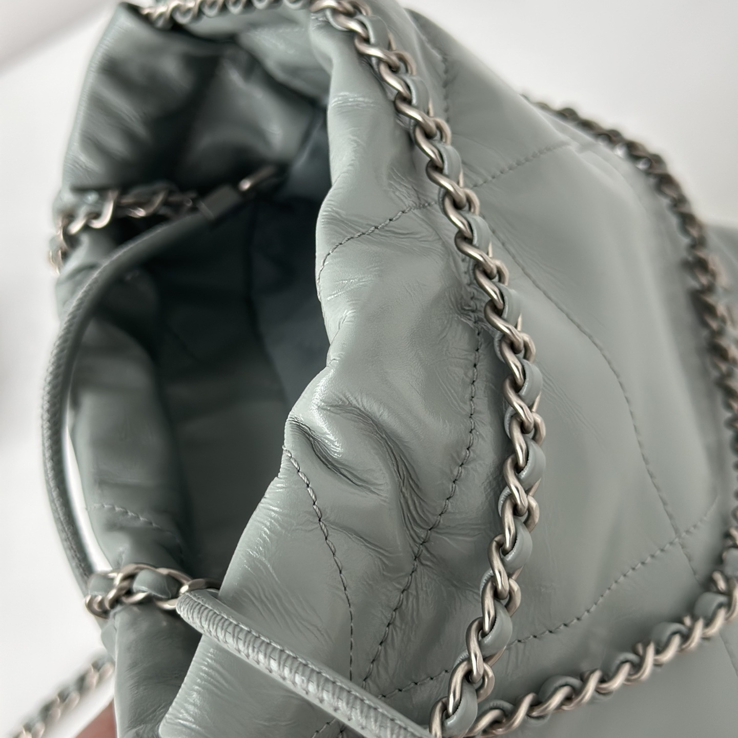 這一隻高仿Chanel迷你包出自23S春夏系列,在官方秀場中突破眾多包款成為秀角.高仿Chanel香港官網從購入原版進行1:1開模而成,看似小型包身結構,實際復刻難度加深.配色成為霧霾藍,簡約的設計理念,繼承了垃圾袋的傳統,收縮包口一往經典重現.