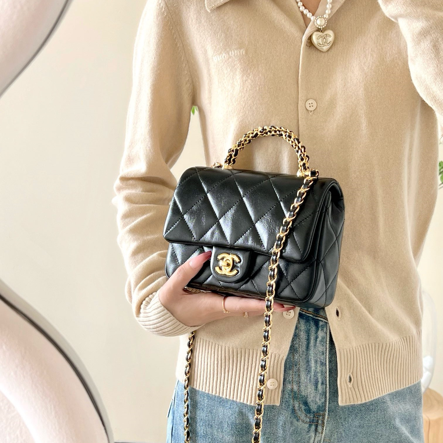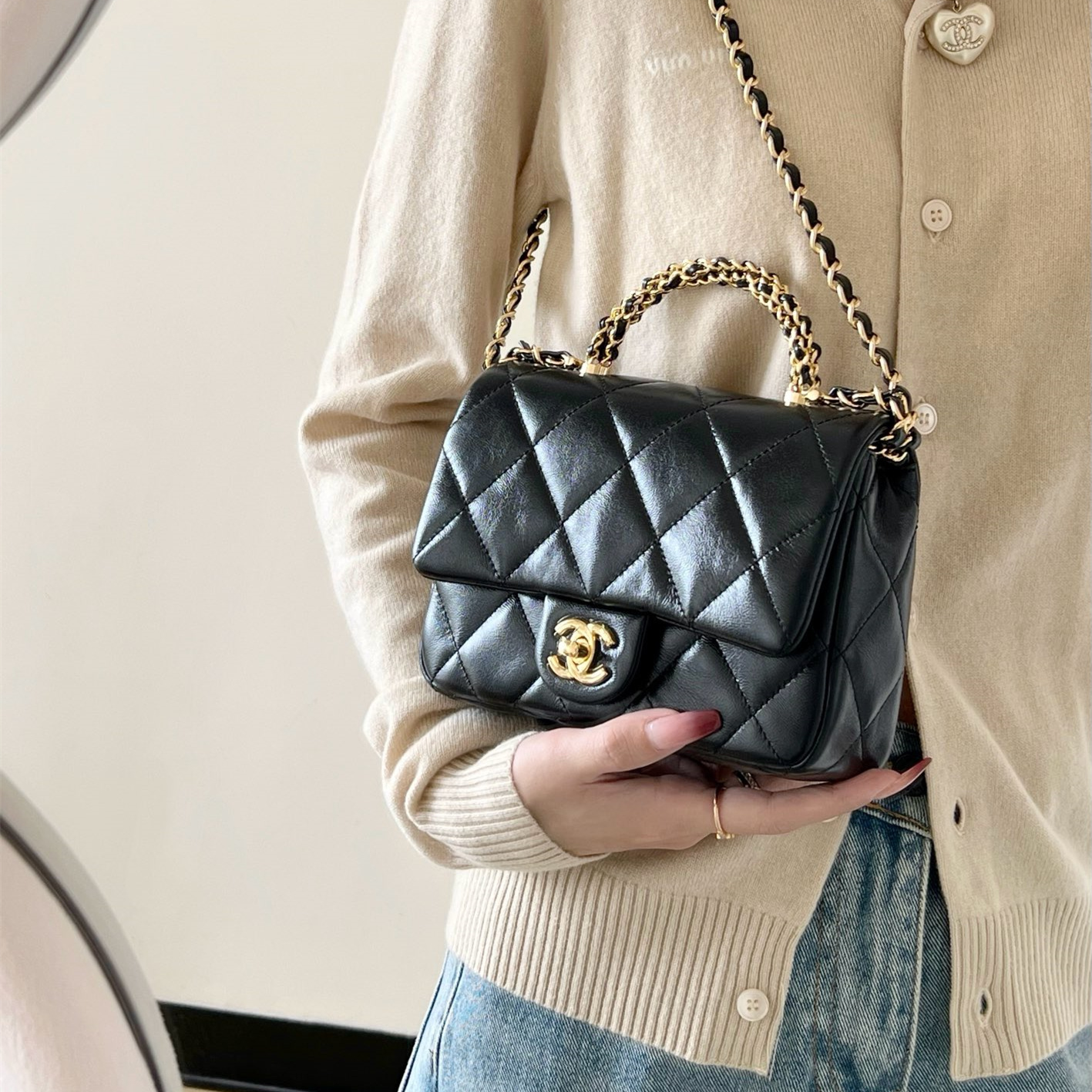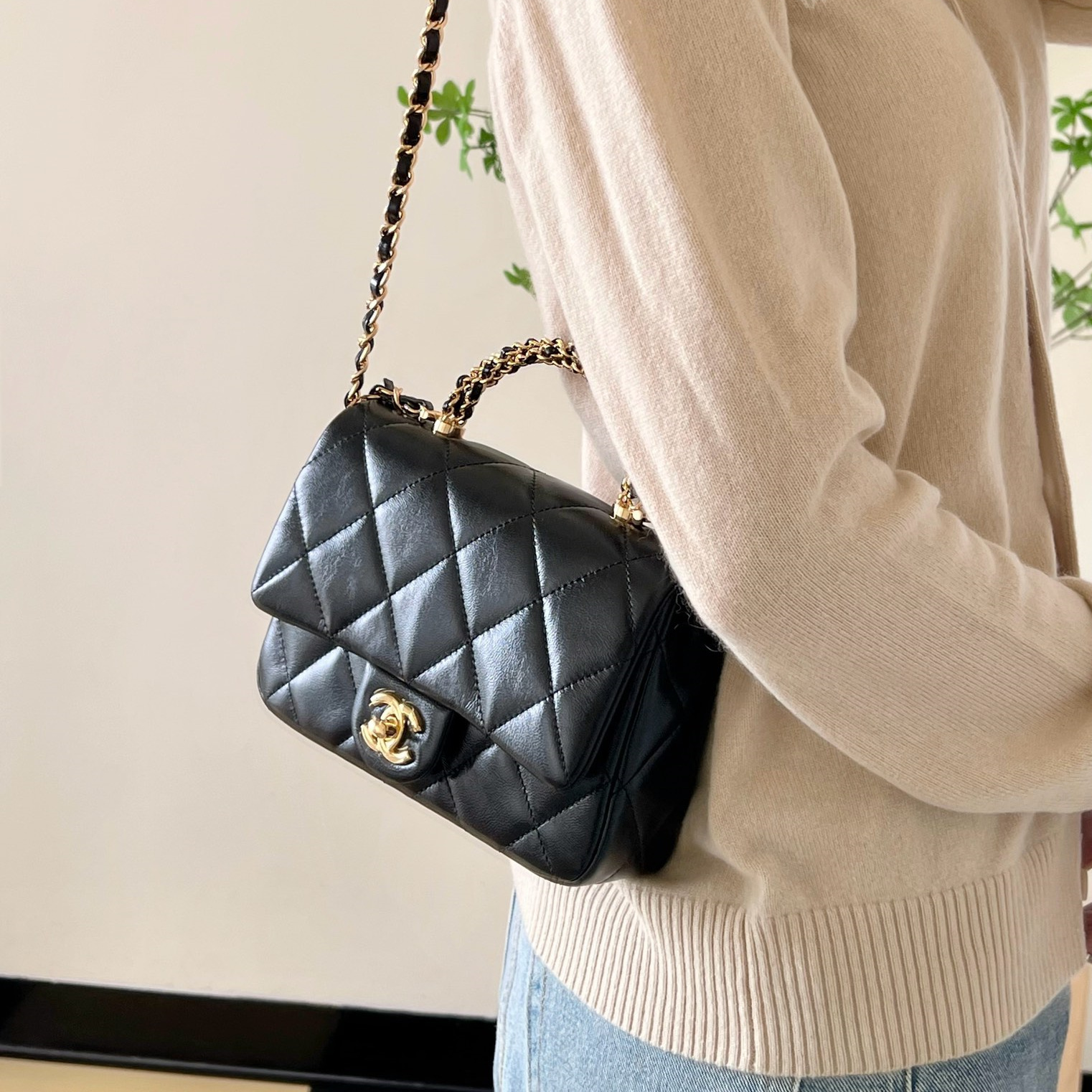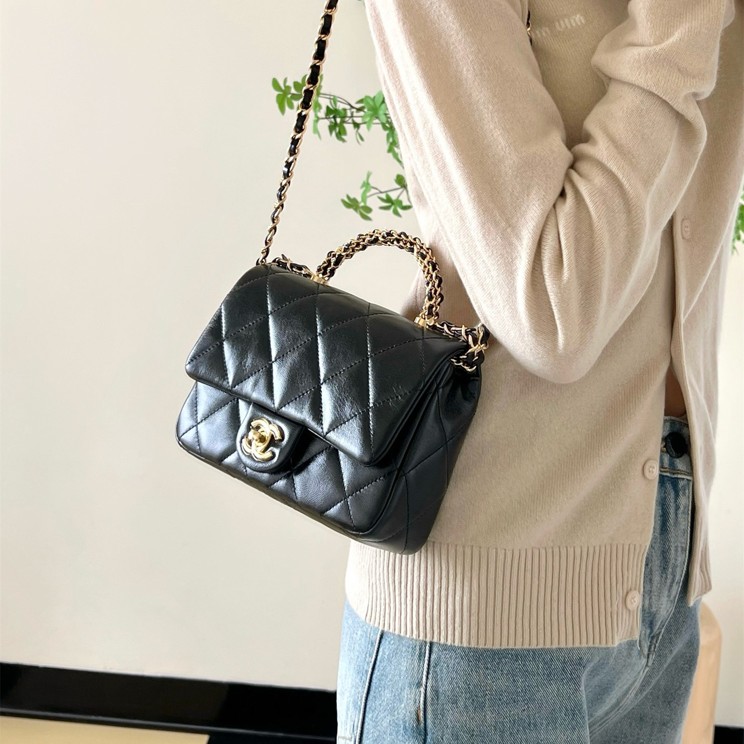 高仿Chanel*24B系列AS5032小羊皮單肩包黑色小號免檢版